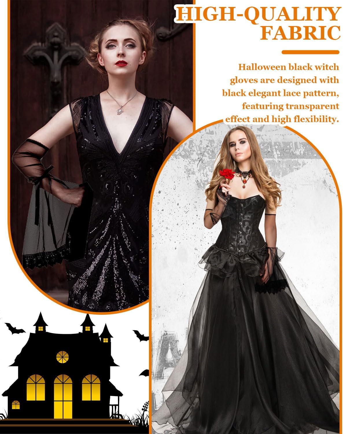 Materiale: realizzato in poliestere. Un tessuto a rete morbido e flessibile, leggero, traspirante e piacevole al tatto, per un comfort ottimale. Taglia: maniche lunghe prospettiche di guanti da rete da pesca, taglia media per la maggior parte delle donne e ragazze. Design: romantici guanti in pizzo gotico di colore nero con morbido tessuto a rete, raffinato motivo in pizzo, polsino in pizzo liscio pieghettato fino alla lunghezza del gomito. Accessori a vento gotico: un'ottima scelta per Halloween o come regalo per una festa. Elegante guanto vittoriano senza dita in rete, perfetto da abbinare a costumi da strega, costume da vampiro, costume da regina cattiva, costumi burlesque, costumi da mago, abiti splendidi, ecc. Occasione applicabile: guanti in rete trasparente per cosplay di Halloween, giochi di ruolo dal vivo, feste di trucco, ballo di trucco, carnevale, Pasqua, carnevale, ballo di fine anno, matrimonio, ecc.