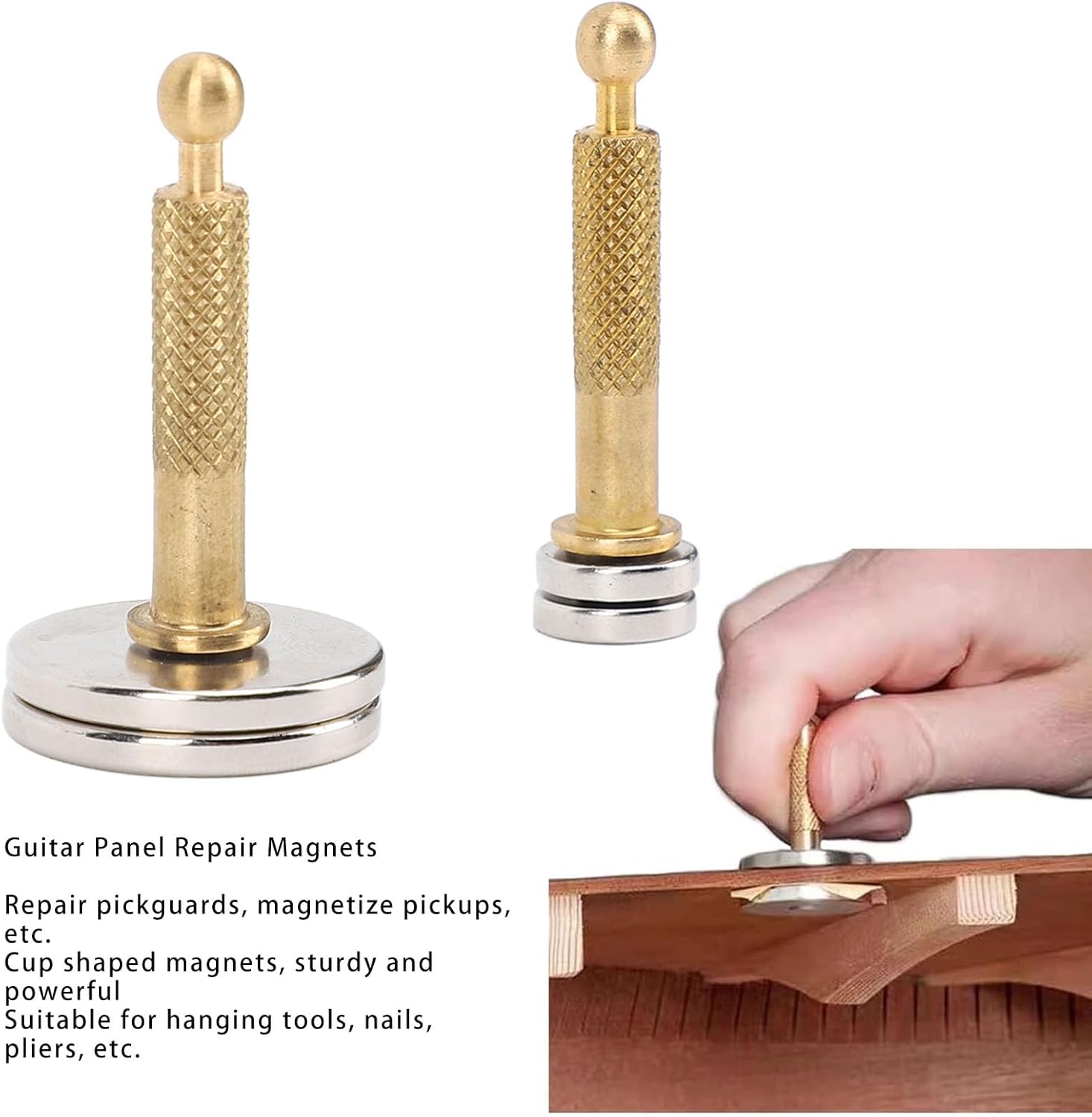 Applicazione: oltre alle riparazioni di chitarre, questi magneti per riparazioni a base rotonda sono perfetti per un'ampia gamma di applicazioni. Appendi facilmente strumenti, chiodi, pinze e altro, mantenendo il tuo spazio di lavoro organizzato e accessibile. Funzione: Fornendo una soluzione affidabile per riparazioni complesse di chitarre, i nostri magneti per la riparazione di pannelli per chitarra semplificano attività come la realizzazione e la riparazione di battipenna, magnetizzazione di pickup e altro ancora, rendendo le riparazioni difficili della chitarra un gioco da ragazzi. Materiali: realizzato con una combinazione di lega di alluminio e potenti magneti, questo strumento di riparazione offre durata e affidabilità. L'aspetto lucido garantisce una presa comoda durante l'uso Strumento per chitarra: ideale per tecnici di chitarra, liutai e appassionati, questo innovativo strumento di riparazione magnetica è un must per chiunque sia interessato alla riparazione e alla personalizzazione precisa della chitarra. Caratteristiche: Vantando una forza impressionante, i nostri magneti per la riparazione di chitarre acustiche sono realizzati con materiali resistenti che garantiscono resistenza e affidabilità, i magneti rotondi placcati tengono saldamente gli strumenti in acciaio senza rompersi, anche con un uso intenso.