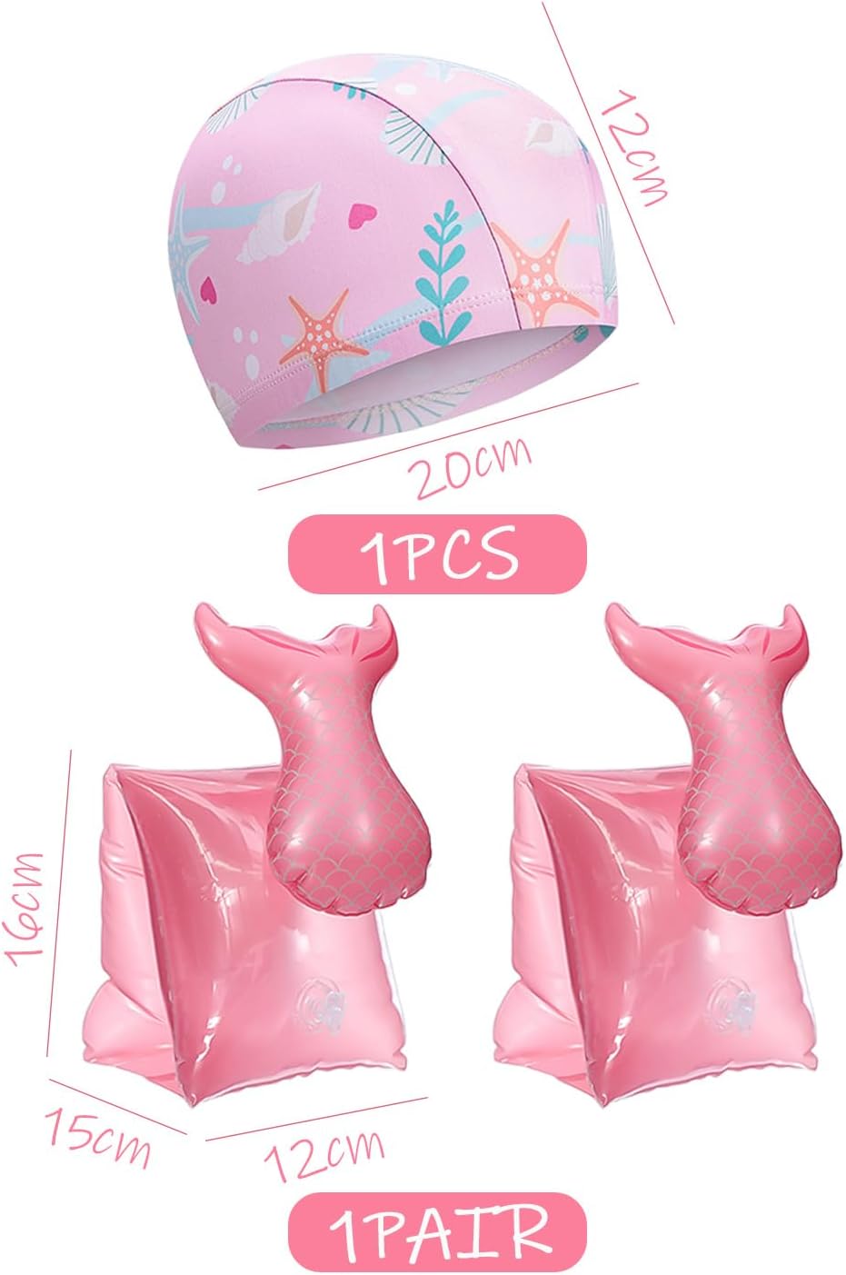 【Contenuto Del Prodotto】 Riceverai 1 Coppia Di Maniche A Braccio Sirena E 1 Cappello. Le Maniche A Braccio Sono Di Colore Rosa, Adatte Per Il Nuoto. Il Cappello È Di Colore Rosa Ed È Adatto Al Nuoto Per Bambini. 【Materiale Del Prodotto】 Le Maniche A Braccio Della Sirena Di Questo Prodotto Sono Realizzate In Materiale In Pvc, Impermeabili E Durevoli E Adatti Ai Bambini. Il Cappuccio Da Nuoto È Realizzato In Poliestere, Morbido E Confortevole, Con Buona Elasticità E Vestibilità. 【Design Creativo】 Questo Prodotto È Progettato In Modo Univoco, Con Le Maniche A Braccio Stampate In Motivi Della Sirena, Che Sono Dai Colori Vivaci E Attirano L'Attenzione Dei Bambini. Il Tappo Di Nuoto È Semplice Nel Design, Che Può Effettivamente Proteggere I Capelli Dei Bambini Dall'Essere Immersi In Acqua E Offre Anche Un'Esperienza Di Usura Comoda. 【Sicurezza Migliorata】 Questo Prodotto Non Solo Fornisce Il Divertimento Del Nuoto, Ma Migliora Anche La Sicurezza Dei Bambini Nell'Acqua. Il Design Della Manica A Braccio Fornisce Galleggiamento Per Aiutare I Bambini Ad Adattarsi Meglio All'Ambiente Idrico, Mentre Il Tappo Di Nuoto Impedisce All'Acqua Di Entrare Nelle Orecchie E Nei Capelli Di Bagnarsi. 【Ampiamente Utilizzato】 Questo Prodotto È Molto Adatto Per Nuoto Familiare, Vacanze In Spiaggia E Attività Idriche. Può Essere Usato Non Solo In Piscina, Ma Anche In Luoghi Come La Spiaggia O Il Lago, Portando Sicurezza E Divertimento Per I Bambini.