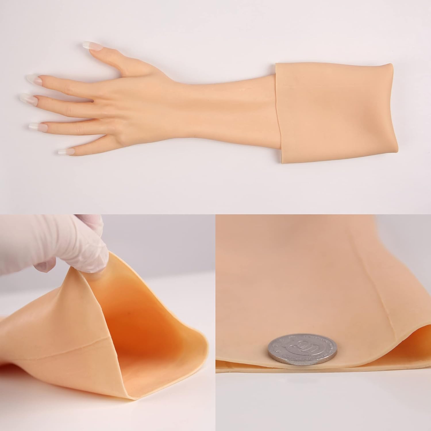 Materiale: i guanti in silicone sono realizzati in silicone medico di alta qualità. Pro-pelle, protezione ambientale, non tossico, nessuna allergia, nessun cattivo odore, umanoide, tocco morbido. Può essere allungato che consente di inserirlo facilmente. È dotato di olio-free per poterlo indossare comodamente tutto il giorno. Lavorazione squisita: il design unico della pelle artificiale della mano femminile, le dita sono ben definite, la pelle è delicata, in modo che si adatta perfettamente, puoi anche applicare il trucco alle tue unghie, e portarti una coppia di mani belle e affascinanti. Persona applicabile: cicatrici che copre il camuffamento, morsi di mano e braccio, cicatrici bruciano, cicatrici da bruciatura, modifica delle arti protesiche, cicatrici che coprono le cicatrici, le ferite delle gambe di puntelli del film. Transgender, maschili o femmina travestiti, costumi, abiti, abiti, spettacoli, fotografia o semplicemente per divertimento. Aspetto ultra realistico: guanto di crossdressing in silicone da donna La trama della parte posteriore della mano è realistica e delicata, il modello di palma è naturale, si adatta alla pelle, le dita e le articolazioni del polso possono essere piegate a volontà e può essere riutilizzato. I guanti in silicone si applicano anche a gioielli, anelli, guanti collocazione o come collezione per collezionisti di arte e feticcio della mano. Imballaggi privati: i nostri prodotti useranno l'imballaggio sulla privacy