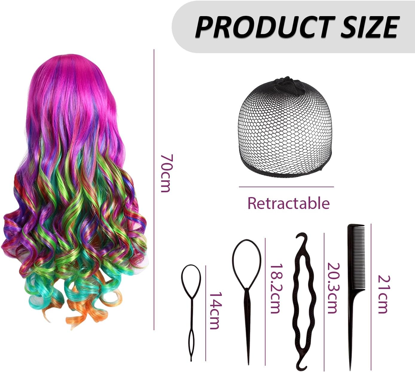 【Contenuto Del Prodotto】 Riceverai 1 Parrucca A Colori, 1 Rete Per Capelli E 4 Vassoi Per Capelli. La Dimensione Della Parrucca È Di Circa 70 Cm E Il Colore È Colorato; La Dimensione Della Rete Dei Capelli È Di Circa 50 Cm E Il Colore È Nero; La Dimensione Della Forcella È Di Circa 15-20 Cm E Il Colore È Nero, Che È Adatto Per Il Gioco Di Ruolo E La Decorazione Delle Feste. 【Materiale Del Prodotto】 Le Parrucche Di Questo Prodotto Sono Realizzate In Fibre Chimiche, Che Sono Leggere E Comode, La Rete Dei Capelli È Realizzata In Tessuto, Con Buona Traspirabilità, E La Forcella È Fatta Di Plastica, Stabile E Resistente, Adatta Per Multipli Usi. 【Design Creativo】 Questo Prodotto È Progettato In Modo Univoco, Con Una Parrucca Colorata, Adatta A Vari Temi Di Gioco Di Ruolo E Di Partito. La Rete Per Capelli E Il Vassoio Per Capelli Sono Progettati Per Essere Pratici, Rendendo Facile Fissare E Organizzare La Tua Acconciatura, Rendendo Il Tuo Aspetto Più Eccezionale. 【Uso Multifunzionale】 Questo Prodotto Non È Solo Adatto Per Il Gioco Di Ruolo E La Decorazione Delle Feste, Ma Utilizzato Anche Per Vari Eventi A Tema E Celebrazioni Del Festival, Soddisfacendo Le Tue Varie Esigenze E Rendendo Il Tuo Aspetto Più Diversificato. 【Facile Da Mantenere】 Questo Prodotto È Facile Da Pulire E Mantenere Dopo L'Uso. La Parrucca Può Essere Mantenuta Ordinata E Pulita Pettinando E Pulizia. La Rete Per Capelli E La Forcine Possono Essere Lavati Direttamente E Asciugati Dopo L'Uso, Rendendo Facile Da Usare La Prossima Volta.