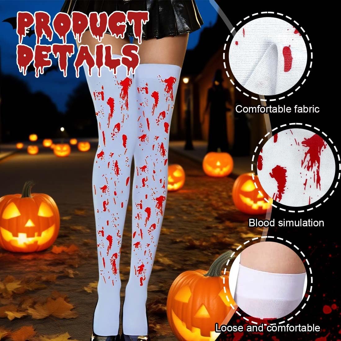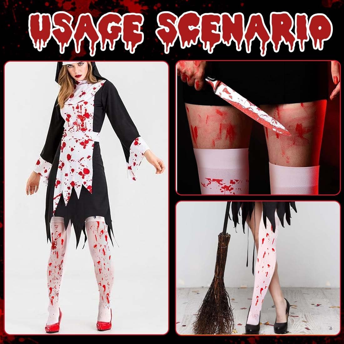 MATERIALE DI QUALITÀ PREMIUM: I nostri calzini di sangue di Halloween sono realizzati principalmente in poliestere, il materiale utilizzato è estremamente comodo da indossare, leggero e traspirante e garantisce una delicata aderenza alla pelle ad ogni utilizzo. FACILE ADATTAMENTO: I nostri calzini di sangue di Halloween si adattano facilmente a una varietà di forme di gambe grazie al loro tessuto elastico ben progettato e alle dimensioni universali, quindi non importa quale sia il tuo tipo di corpo, puoi godere di un'esperienza di indossamento senza restrizioni, perfetta per il gioco di ruolo unico del glamour horror DESIGN ESTERNO: il design a macchie di sangue aggiunge un tocco di orrore e crea facilmente un effetto inquietante. È l'accessorio perfetto per zombie, cadaveri, fantasmi, morti che camminano, assassini e molti altri fantasmi inquietanti. UTILIZZO: Con questi fantastici leggings potrete completare il vostro costume da infermiera sanguinaria, infermiera zombie o cadavere. È l'accessorio ideale per le celebrazioni di Halloween, le feste di compleanno, le feste in costume e le infermiere sanguinarie, perfette per i giochi di ruolo. SERVIZIO DI QUALITÀ: Forniamo ai clienti un servizio soddisfacente. Se si incontrano problemi durante il processo di acquisto, non esitate a contattarci, vi forniremo soluzioni soddisfacenti.