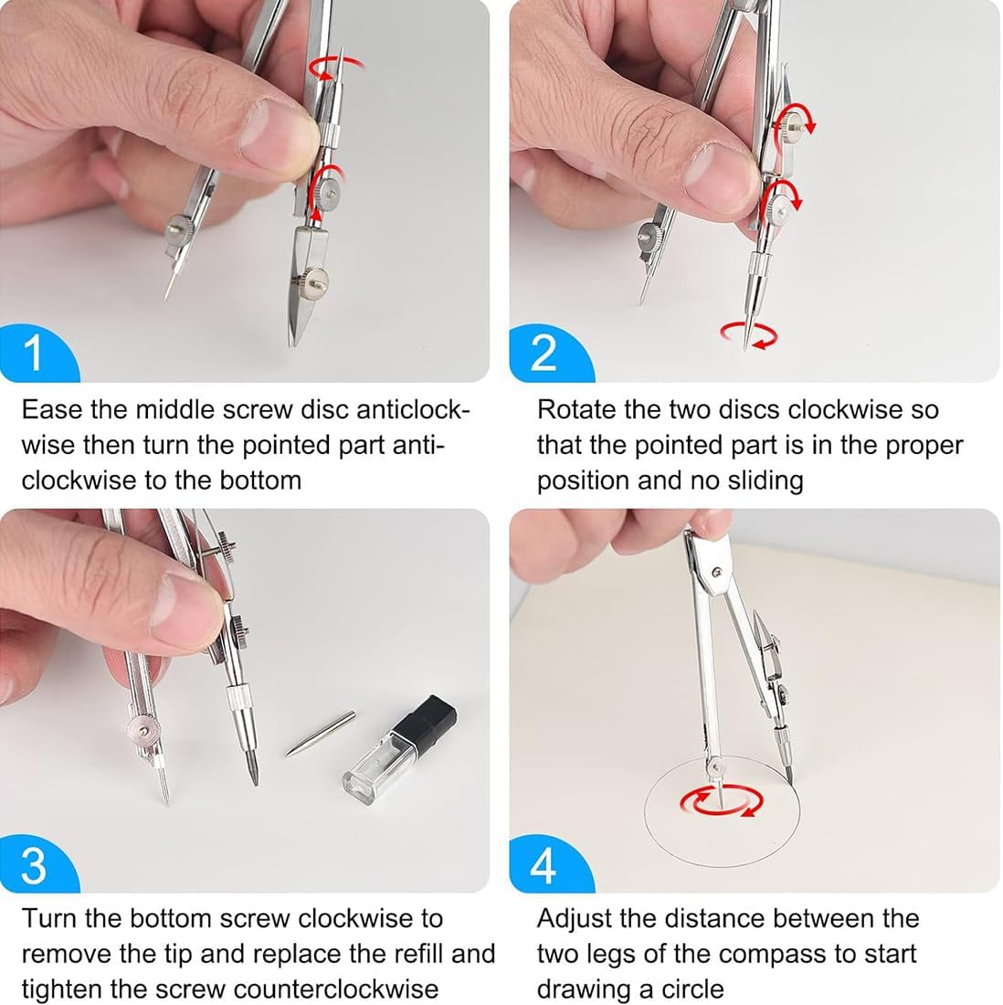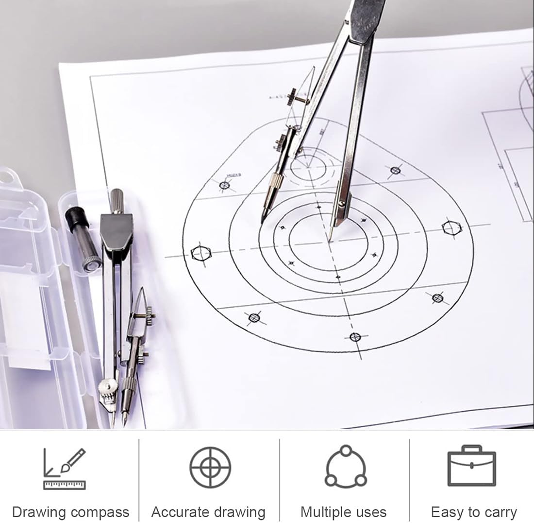 Adatto per L'incisione: Le punte dure e appuntite del compasso da falegname consentono di tracciare linee in modo chiaro e semplice sulla superficie di finta pelle, candele di cera, metallo, legno, plastica e altri pezzi. Le gambe a compasso a sezione quadrata favoriscono la presa e l'equilibrio. I compassi a tracciare vengono utilizzati anche per creare indicatori di distanza per alcuni fori. Ali e Portapenne: La bussola per la lavorazione del legno con ali bloccabili ti consente di ripetere facilmente le misurazioni, disegnare cerchi, disegnare archi senza saltare o sfuggire al tuo controllo. Il compasso fisso con portapenne consente di disegnare facilmente cerchi fino a 24 cm di diametro ed è adatto alla maggior parte dei materiali. Bussola da Carpentiere in Metallo: La bussola geometrica è realizzata in metallo di alta qualità con una lunghezza di 12 cm, resistente, impermeabile, non facile da arrugginire e corrodere, risultati accurati e buona stabilità. Il set viene fornito con 3 cavi di piombo per un uso a lungo termine. La punta in metallo di questa bussola può essere incisa senza scivolare per un uso a lungo termine. Facile da Regolare e Disegnare: La bussola da disegno mette la mina nel portapenne e la fissa, quindi si regola rapidamente all'angolo desiderato attraverso le ali e le gambe della bussola per ottenere un diametro preciso, misurare e disegnare vari archi. Design bloccabile, molto comodo per regolare, disegnare, copiare, misurare la lunghezza, l'arco e il cerchio. Forte praticabilità: i dischi sono ampiamente utilizzati nell'incisione meccanica, nell'artigianato fai-da-te, ecc. Utilizzare come divisori per strumenti per la lavorazione del legno, strumenti per la lavorazione dei metalli e infissi. La punta rotonda per fondamenta è anche un regalo ideale per falegnami, studenti, ingegneri, artisti, designer e artigiani.