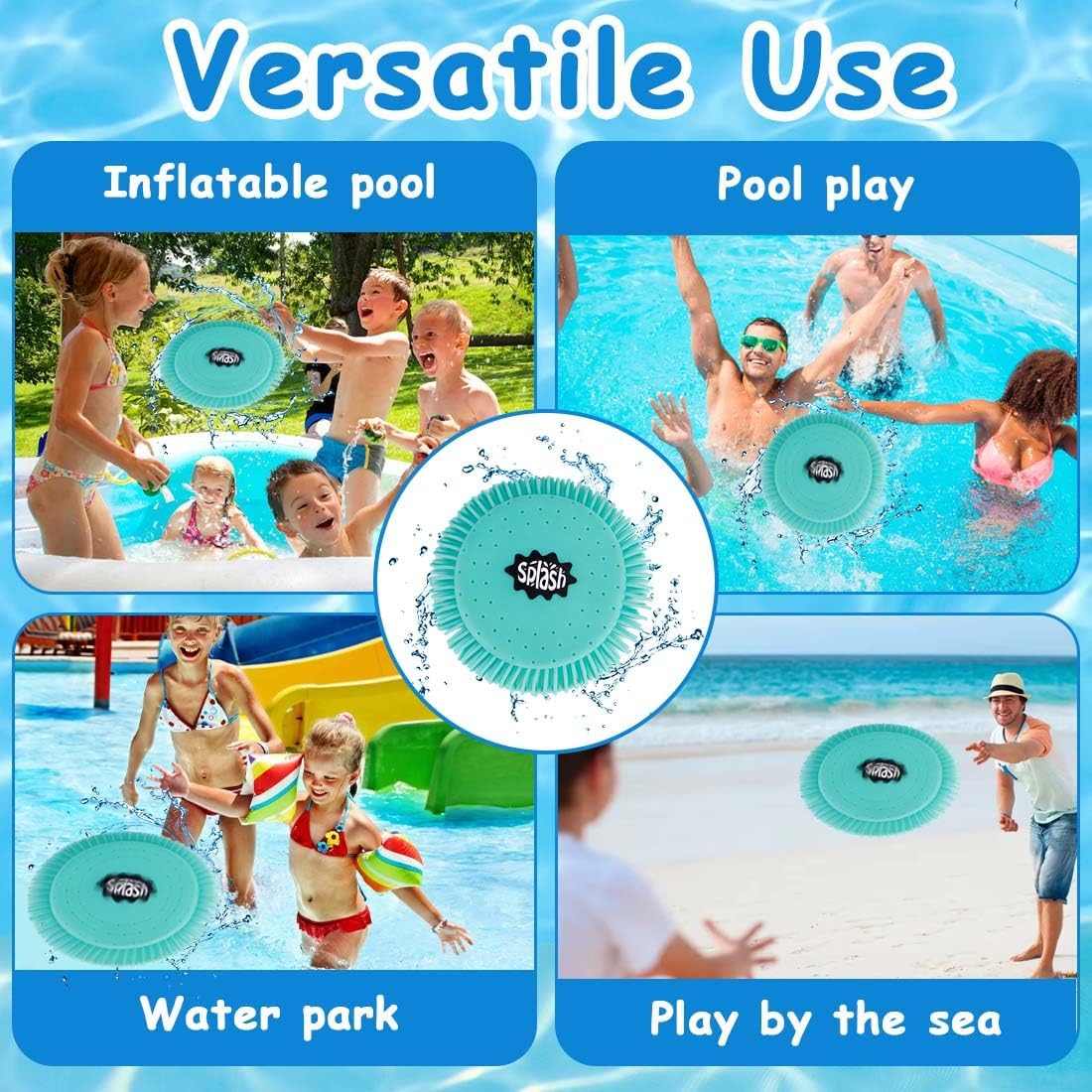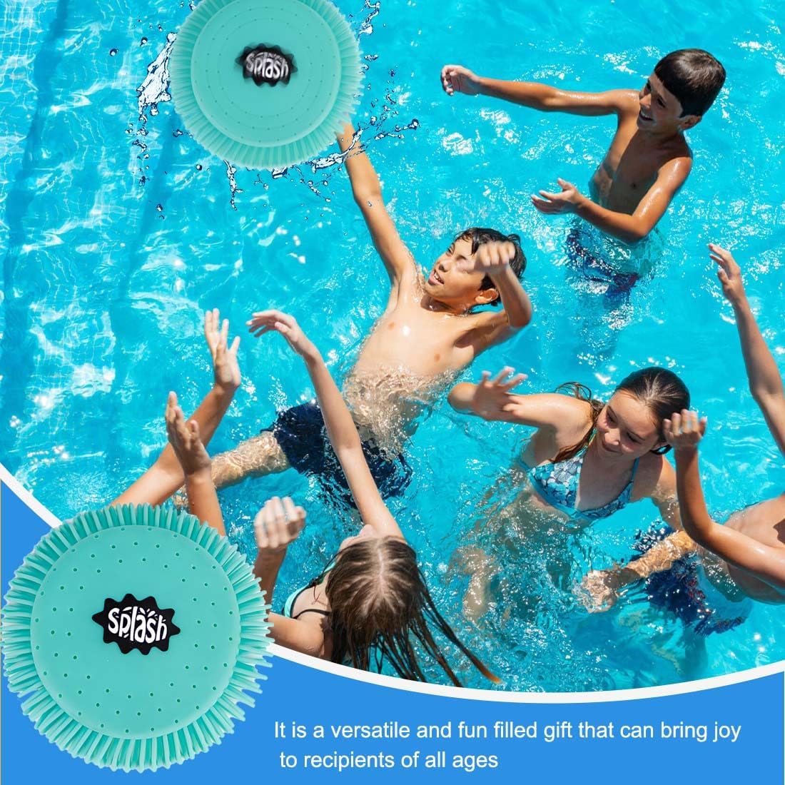 Materiali di alta qualità: il frisbee è realizzato in morbido materiale TPR, perfetto per le mani dei bambini piccoli. Il giocattolo perfetto per la spiaggia o il mare! Frisbee in morbida schiuma per bambini: questo giocattolo d'acqua è il compagno perfetto per una vacanza o una giornata in spiaggia. Il frisbee è molto morbido e può essere utilizzato in luoghi dove c'è acqua. Adatto a grandi e piccini per giocare in acqua! Design rinfrescante: il frisbee ha un diametro di 17 cm e ha un anello di nappe in silicone attorno al perimetro per assorbire e immagazzinare l'umidità attraverso i pori. Quando si lancia, si gioca, si prende la palla, l'acqua fresca schizza felice! DESIGN UNICO: Il frisbee con nappa ha un design fresco e unico che sicuramente risalterà in mare, in piscina o nella piscina all'aperto! Goditi l'estate: il frisbee è così portatile che puoi riporlo facilmente e portarlo ovunque: in piscina, in spiaggia, perfetto per giocare con amici e familiari in vacanza!