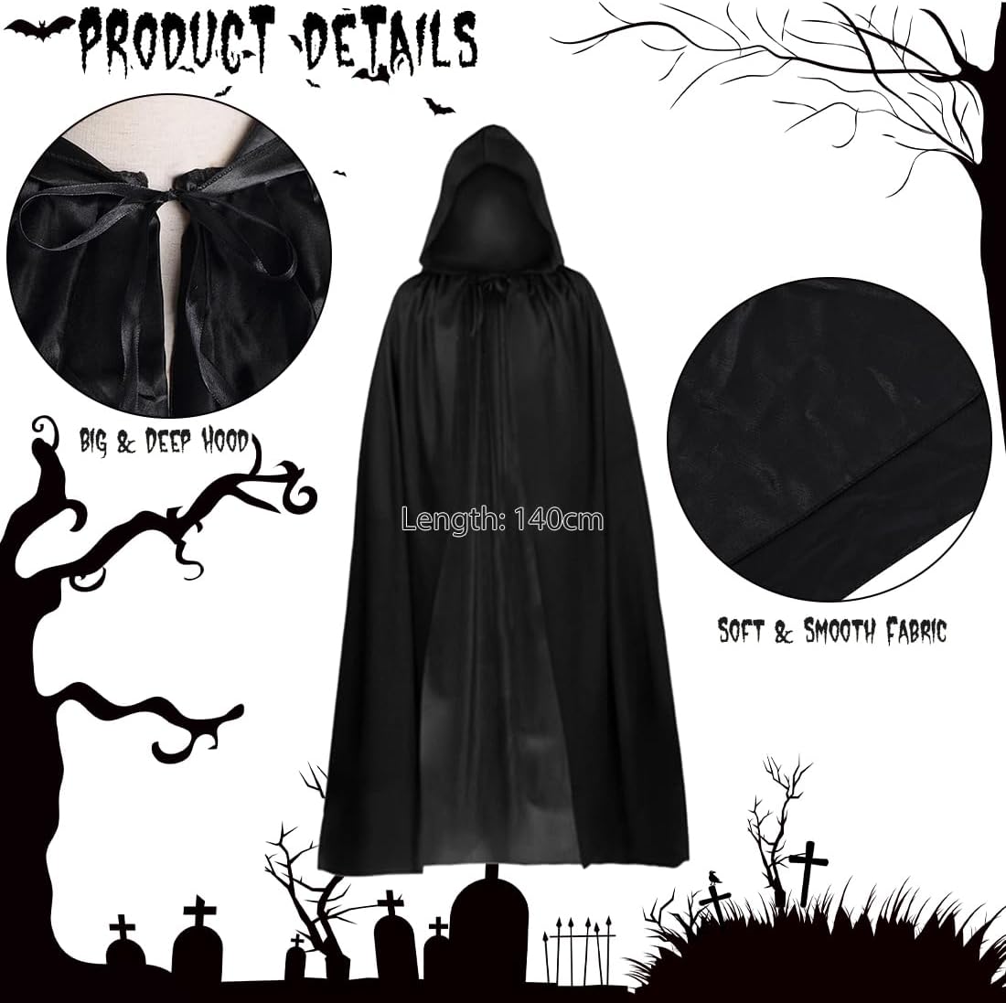 IL PACCHETTO INCLUDE: Il pacchetto include un mantello nero. La dimensione del mantello è di circa 140 cm (55 pollici) di lunghezza. Questo elegante mantello nero con cappuccio è adatto alla maggior parte degli uomini e delle donne, può essere facilmente abbinato agli abiti e lo adorerai! MATERIALE PREMIUM: Classico mantello con cappuccio per accessori per costumi di Halloween. Questo mantello nero con cappuccio è tessuto con materiale in tessuto a maglia di alta qualità, comodo e morbido da indossare, non facile da rompere, delicato sulla pelle, traspirante, caldo ed elastico. FACILITÀ D'USO: Allaccia il mantello, allaccialo semplicemente al collo per fissarlo sulle spalle. Facile da indossare per casa o per tutto il tempo richiesto dal tuo carattere. Ti darà la migliore esperienza confortevole ed è un ottimo modo per rendere la tua festa piena di divertimento e impressionare i tuoi ospiti. IL CAPO ESSENZIALE PER HALLOWEEN: Quando indossi questo mantello nero entrerai rapidamente nel tuo personaggio, questo mantello con cappuccio è un must per occasioni come Halloween, sia che lo indossi sopra i tuoi vestiti normali, vorresti appenderlo come parte delle tue decorazioni di Halloween o indossalo come una dichiarazione di moda. UTILIZZO MULTIPLO: Questo mantello nero è l'ideale per qualsiasi festa gotica, halloween, mascherata, vampiri, streghe, feste in costume, feste a tema horror e altre occasioni. Travestirsi darà vita ai personaggi della tua festa e aggiungerà mistero alla festa. E crea dei ricordi incredibili con la famiglia e gli amici.