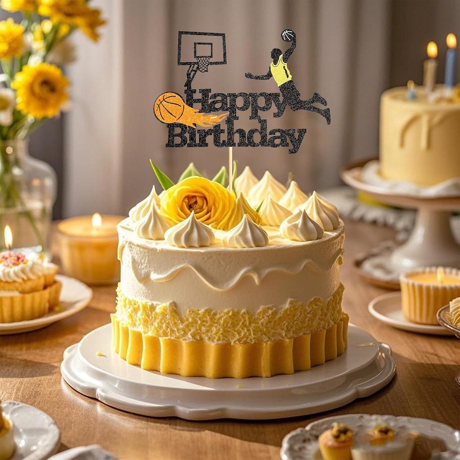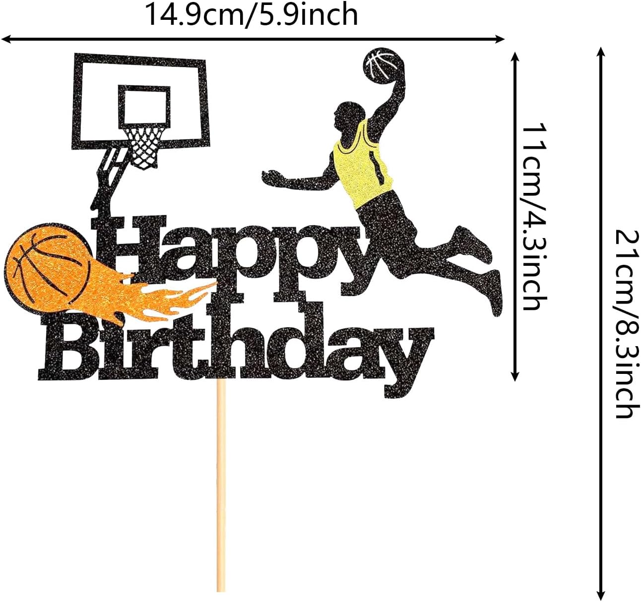 Confezione e dimensioni: 1 pezzo, 14,9 cm x 21 cm / 5,9 pollici x 8,3 pollici (incluso bastoncino) Materiale: Il topper per torta è realizzato in cartoncino glitterato di alta qualità da 300 grammi e bastoncini Perfetto per le celebrazioni del basket: La nostra confezione da 1 pezzo di toppers per cupcake sportivi da basket è appositamente progettato per la decorazione di compleanno di basket Opzioni di decorazione versatili: Questi toppers per cupcake da basket sono ideali per migliorare una varietà di prelibatezze, tra cui cupcake, biscotti, dessert e persino formaggio tavole, rendendole un must per qualsiasi decorazione di una festa di basket. Occasione adatta: i toppers cupcake da basket sono adatti per feste a tema sportivo, baby shower, feste di buon compleanno, decorazioni per torte per feste di anniversario e rendono la tua festa piena di atmosfera a tema sportivo