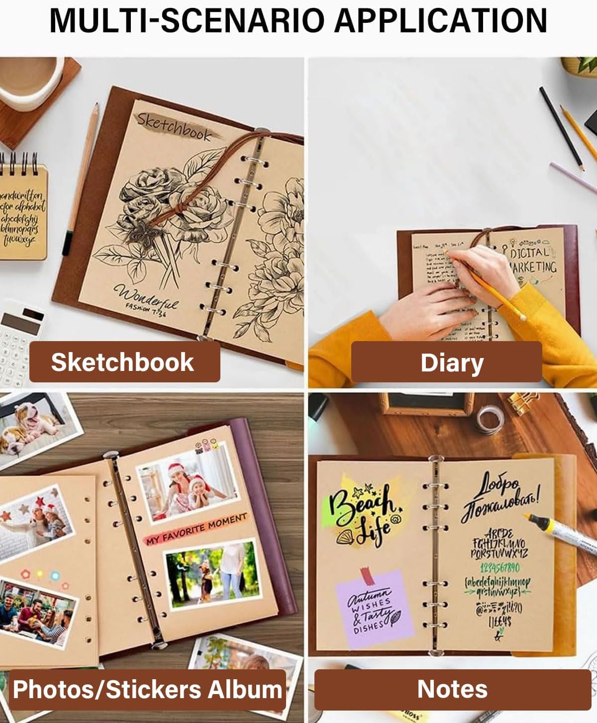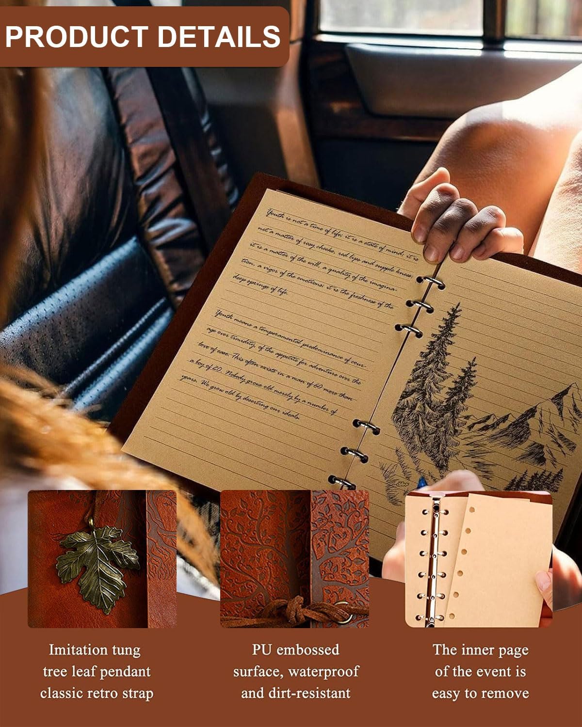 Diario vintage di alta qualità: copertina in pelle PU resistente ed elegante, perfetta per viaggi o avventure all'aria aperta. Questo robusto e durevole quaderno a tema albero dei desideri è un regalo unico per ogni amico speranzoso. Carta spessa e resistenza all'inchiostro: carta A7 ricaricabile (75 fogli) realizzata con carta spessa da 100 g/m². La carta priva di acidi è leggera e resistente all'aria. È perfetto per penne stilografiche, penne unisex, penne a sfera, evidenziatori, matite, ecc. Quaderni vuoti e ricaricabili: nessuna riga, nessun limite! Puoi disegnare mappe mentali, abbozzare idee o prendere appunti su pagine bianche. Grazie agli anelli di rilegatura fissi, le pagine possono essere facilmente rimosse e sostituite con pagine bianche per riempirle di più. Ampio utilizzo: perfetto come quaderno da disegno, quaderno, diario di viaggio, agenda, organizzatore di coupon, libro per collezione di francobolli e album fotografico Ottima scelta regalo: stile senza tempo e semplice versatilità si uniscono in questa scelta popolare per l'uso quotidiano. È il regalo ideale per compleanni, Natale e altre festività memorabili.