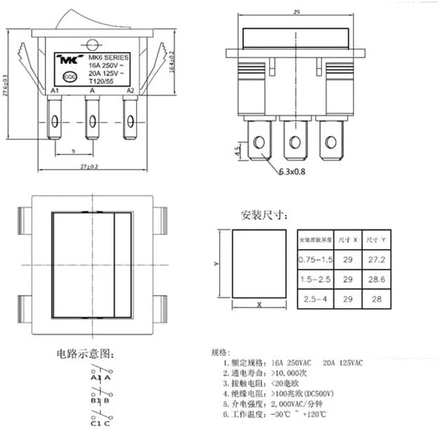 1 pz 6 pin a due velocità RD331C086B interruttore nave deformato SERIE MK6 obliquo 6 pin 16A250V