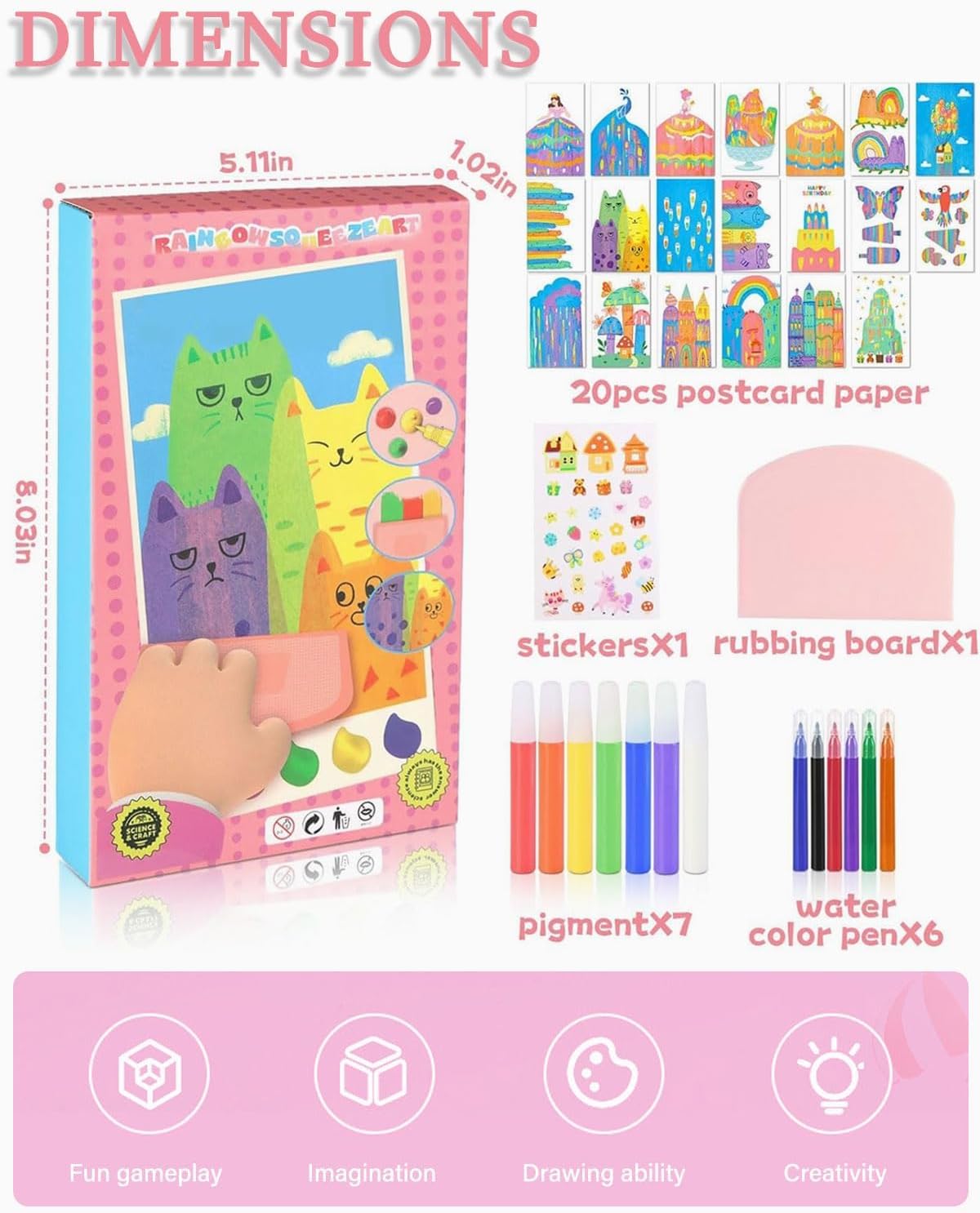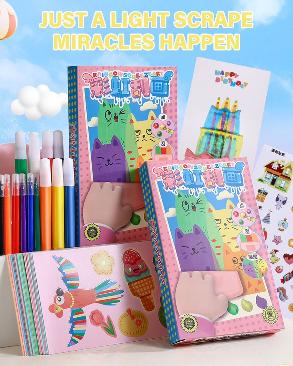 Materiale di alta qualità: realizzato in lega di alta qualità e materiale ABS, è robusto, durevole, resistente alla ruggine, all'usura e altamente sicuro. Lasciate che la vostra immaginazione si scateni: lasciate che la creatività del vostro bambino si scateni con il nostro set di gratta e vinci. Dietro ogni superficie da grattare c'è una dolce sorpresa che trasmette emozioni e storie uniche. Il retro è disegnato come una cartolina che può essere utilizzata anche come tela per le opere d'arte del bambino, in attesa di essere condivise con amici e familiari. Facile da usare: per creare bellissime opere d'arte è sufficiente applicare il colore al pennarello, rimuoverlo con uno strumento e vedere il proprio capolavoro prendere vita con facilità e precisione. “Paradiso della mescolanza dei colori": creare capolavori è un gioco da ragazzi con il nostro set per scratch art per bambini. Il nostro set contiene sette colori vivaci che possono essere mescolati per creare la combinazione di colori perfetta e offrono una varietà di opzioni cromatiche. Create disegni in base al vostro umore e ogni graffio ispirerà la vostra creatività. Regalo divertente: con questo set di carta da disegno, i bambini possono liberare la loro creatività e immaginazione in occasioni speciali come compleanni, Natale, Capodanno, Halloween e Festa dei bambini. È il regalo perfetto per i giovani artisti