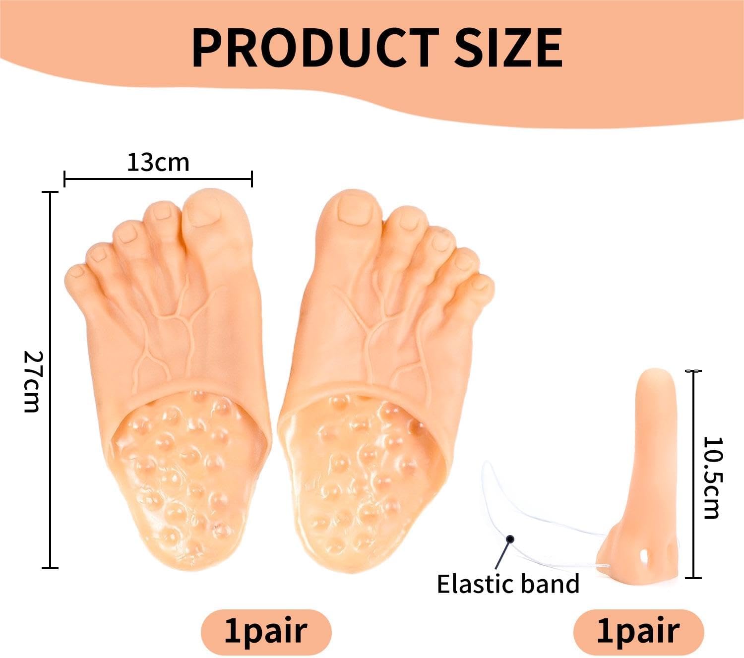 【Contenuto Del Prodotto】 Riceverai 1 Pezzo Di Scarpa Per I Piedi E 1 Pezzo Di Giocattolo Dal Naso Lungo. La Dimensione Delle Scarpe È Di Circa 27 X 13 Cm E Il Colore È Il Tono Della Pelle; La Dimensione Del Giocattolo Dal Naso Lungo È Di Circa 8 * 3 * 3 Cm E Il Colore È Il Colore Della Pelle. È Adatto Per Essere Utilizzato Come Giocattolo Divertente E Gioco Di Ruolo. Gioco Di Oggetti Di Scena. 【Materiale Del Prodotto】 Le Suole Delle Scarpe Sono In Plastica E Il Giocattolo Dal Naso Lungo È In Pvc. Il Materiale Plastico È Leggero E Resistente, Mentre Il Materiale In Pvc È Morbido E Sicuro, Rendendolo Adatto Per Essere Indossato E Giocato A Lungo Termine. 【Design Creativo】 Questo Prodotto Ha Un Design Unico, Le Scarpe Hanno Una Forma Divertente E Il Giocattolo Dal Naso Lungo Aggiunge Ulteriore Divertimento, Rendendolo Molto Adatto Come Oggetto Di Scena Per Giochi Di Ruolo E Feste In Costume. Che Svolga Un Ruolo Divertente O Aggiunga L'Atmosfera Della Festa, È Pratico. 【Uso Multiuso】 Non Adatto Solo Per Feste In Costume E Giochi Di Ruolo, Ma Può Anche Essere Utilizzato Per Feste, Riunioni Di Famiglia E Varie Occasioni Di Intrattenimento. Porta Più Gioia E Creatività Al Tuo Evento. 【Facile Da Pulire】 Questo Prodotto È Facile Da Pulire E Mantenere Dopo L'Uso. I Materiali In Plastica E Pvc Non Lasciano Macchie. Dopo L'Uso, Basta Pulirlo Per Renderlo Nuovamente Pulito.