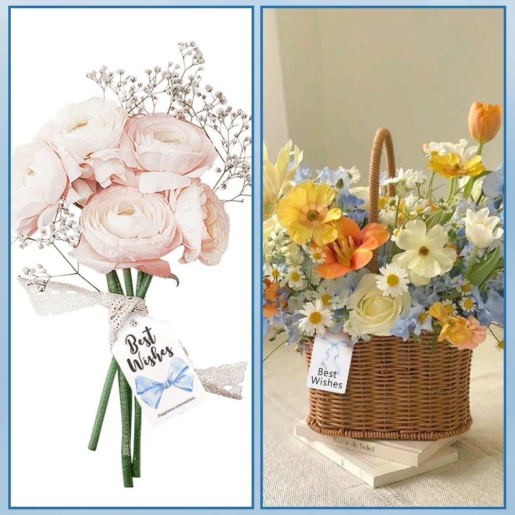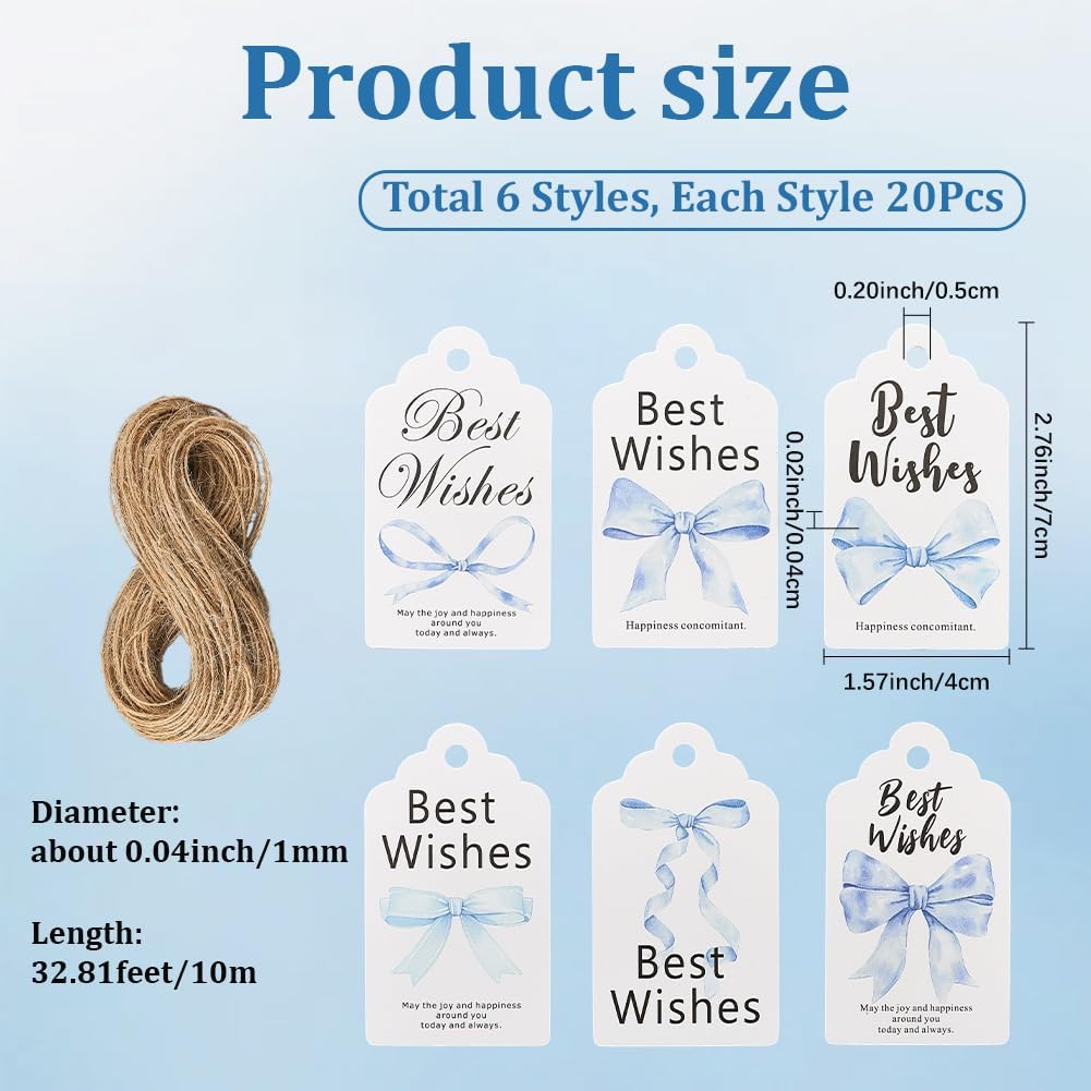 La confezione include:120 etichetta regalo con fiocco blu e auguri in 6 modelli (2.76 x 1.57 pollici/7 x 4cm ), 20pcs / style, con corda di iuta naturale da 32.8 piede/10 m per appenderla e decorarla facilmente 120 pz Etichette per auguri con fiocco blu:eleganti etichette regalo con design a fiocco blu, CHISaramente stampato con la scritta "Che tu possa avere gioia e felicità intorno a te oggi e sempre". Perfetto per esprimere gratitudine e auguri Facile da usare:le etichette regalo con i migliori auguri hanno fori preforati per un'applicazione rapida. Basta infilare la corda e attaccarla alle buste regalo, scatole, barattoli di muratore, o bomboniere Materiale di qualità premium:le etichette regalo con i migliori auguri sono realizzate in cartoncino bianco resistente con bordi lisci, facile da scrivere. La corda inclusa è resistente e abbastanza lunga per molteplici usi Ampia applicazione:i tag di auguri con fiocco blu sono ideali per la festa dellsa mamma, Festa del papà, matrimoni, compleanni, e altro. Perfetto per aggiungere un tocco elegante a qualsiasi regalo o decorazione