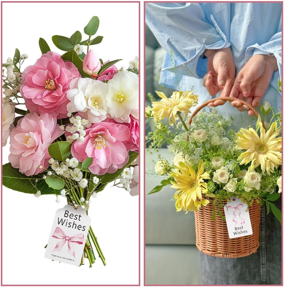 Etichette con i migliori auguri di fiocco rosa:eleganti etichette regalo con design a fiocco rosa, CHISaramente stampato con la scritta "Che tu possa avere gioia e felicità intorno a te oggi e sempre". Perfetto per esprimere gratitudine e auguri La confezione include:120 etichetta regalo con i migliori auguri in 6 modelli (2.76 x 1.57 pollici/7 x 4cm ), 20pcs / style, con corda di iuta naturale da 32.8 piede/10 m per appenderla e decorarla facilmente Qualità premium:le etichette regalo con i migliori auguri sono realizzate in cartoncino bianco resistente con bordi lisci, facile da scrivere. La corda inclusa è resistente e abbastanza lunga per molteplici usi Facile da usare:le etichette regalo con i migliori auguri hanno fori preforati per un'applicazione rapida. Basta infilare la corda e attaccarla alle buste regalo, scatole, barattoli di muratore, o bomboniere Ampia applicazione:i tag con i migliori auguri con fiocco rosa sono ideali per la festa dellsa mamma, Festa del papà, matrimoni, compleanni, e altro. Perfetto per aggiungere un tocco elegante a qualsiasi regalo o decorazione