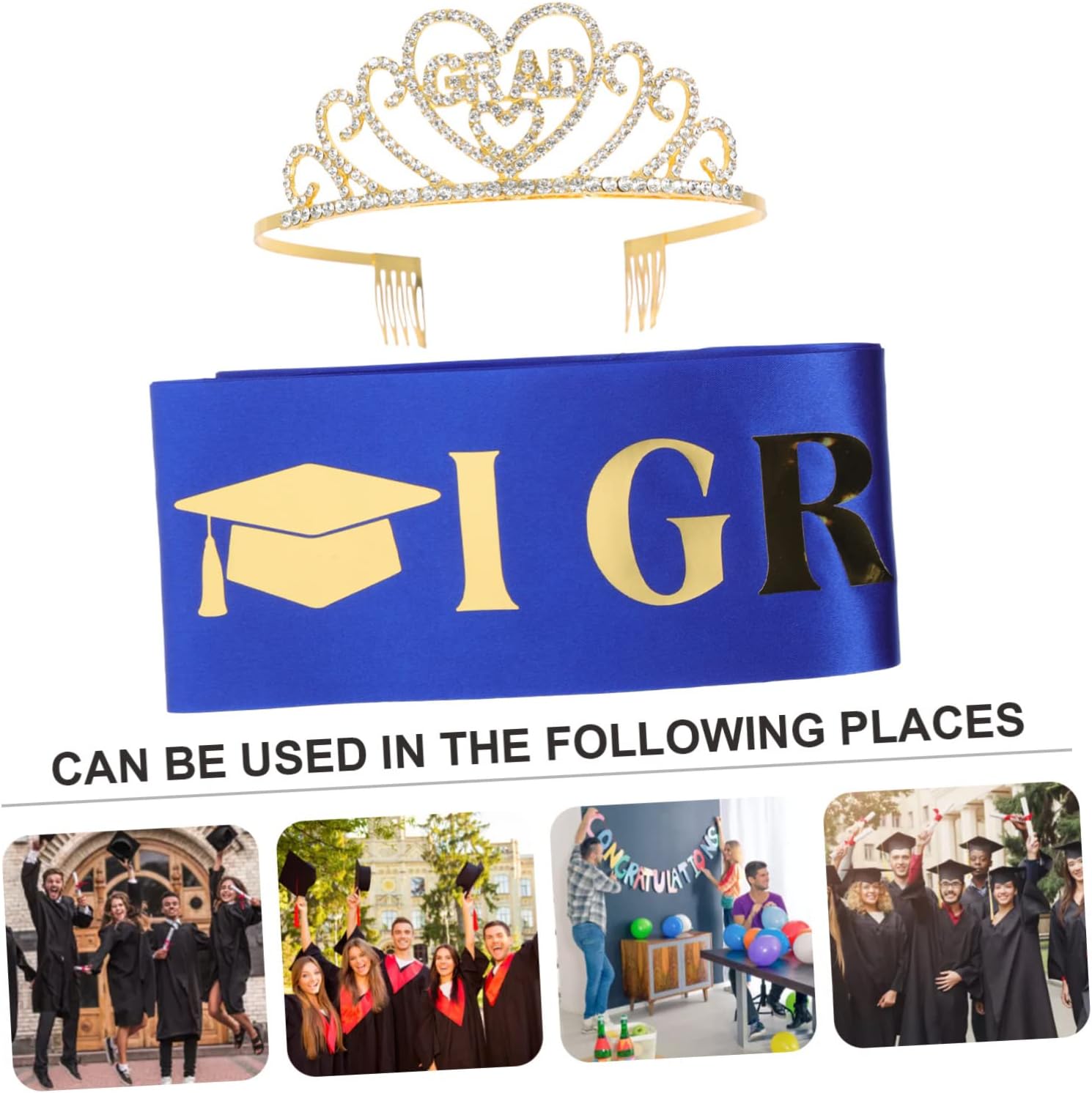 Fascia per la laurea - puoi essere un bambino laureato, compagni di classe, amici, studenti, ecc., Accessorio per costume di laurea 2023 - la corona di laurea e la fascia sono adatte per la maggior parte delle feste di laurea, potrebbero essere oggetti di scena fotografici e creare un'atmosfera allegra, abbigliamento per la laurea della corona della festa di laurea - realizzato con materiali di alta qualità e flessibili, la corona di laurea è facile e comoda da indossare, Forniture per feste di laurea Fascia di laurea per studenti: la fascia e la corona per scattare foto indimenticabili è la scelta per i laureati, fascia per le spalle Fascia per corona kit-a kit fascia e corona è un accessorio di abbigliamento essenziale per la tua festa di laurea, corona di laurea