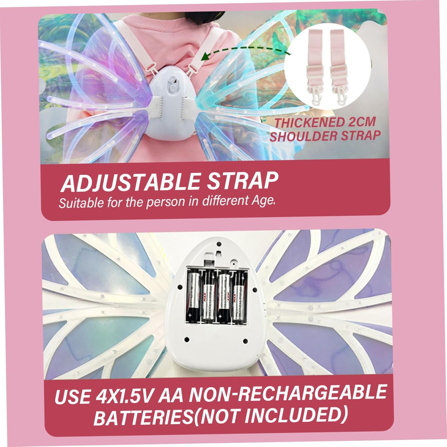 Design a cinghia regolabile: il set di ala farfalla presenta un design della cinghia regolabile che consente una vestibilità confortevole e sicura per i bambini di diverse dimensioni..Le cinghie possono essere facilmente regolate per adattarsi alle spalle del bambino, garantendo che l'ala rimanga sul posto mentre giocano. Facile da installare: il set dell'ala farfalla è facile da installare e viene fornito con tutti i componenti necessari, tra cui zaino, ala, cinghie, luci a LED e istruzioni..L'ala può essere facilmente attaccata allo zaino e le luci a LED possono essere accese con la spinta di un pulsante. Materiali affidabili: il set dell'ala farfalla è realizzato con materiali plastici robusti e di lunga durata..L'ala è realizzata con materiali leggeri che è facile da indossare e muoversi, mentre lo zaino è robusto e può trattenere l'ala saldamente. Luci a LED e musica: il set dell'ala farfalla viene fornito con ala elettrica che si illuminano con luci a LED e suonano musica, rendendolo un'aggiunta perfetta a qualsiasi festa o evento in costume..Le luci e la musica aggiungono un extra di divertimento ed eccitazione in ogni occasione. Perfetto per varie occasioni: il set ala di farfalle è perfetto per varie occasioni come Halloween, San Valentino, Natale, feste di compleanno e altro ancora..È ottimo per i bambini che amano vestirsi e giocare a finta.