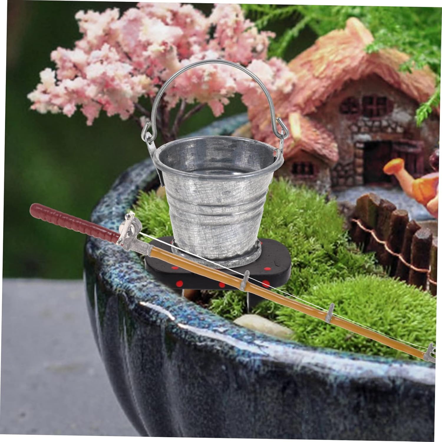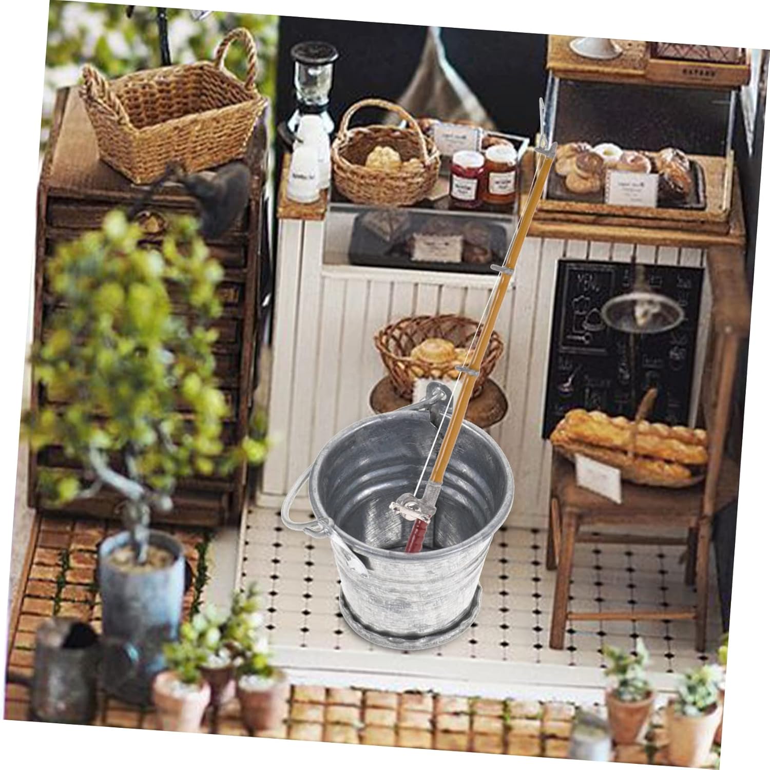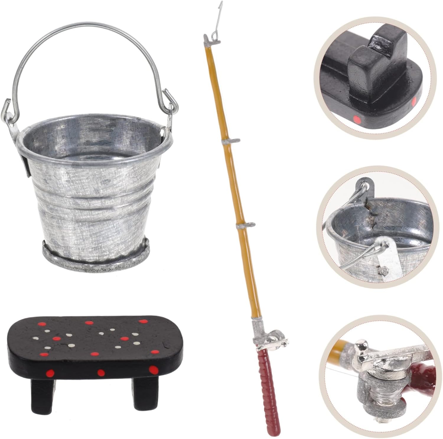 Mini attrezzo ornamentale per la casa: puoi abbinare il set di forniture per la pesca con vari decori in miniatura nella tua casa per completare l'arredamento della micro casa, di mini secchio Canna da pesca per casa delle bambole: l'accessorio perfetto per la casa, per creare una scena completa della camera da letto, mini canna da pesca da tavolo Divertente mini attrezzo per la casa: il mini set di forniture per la pesca può soddisfare le tue diverse esigenze di decorazione per il soggiorno, la sala da pranzo o la camera da letto per la mini casa, mini attrezzo per oggetti di scena per la fotografia Di attrezzo giocattolo: realizzato con materiali di , con dettagli squisiti e lavorazione raffinata, questa canna da pesca in miniatura è un mini accessorio per la casa delle bambole Mini attrezzo per casa giocattolo: questo mini set di forniture per la pesca può essere abbinato bene a mini paesaggi, mini sculture e altre miniature, mini canna da pesca per casa