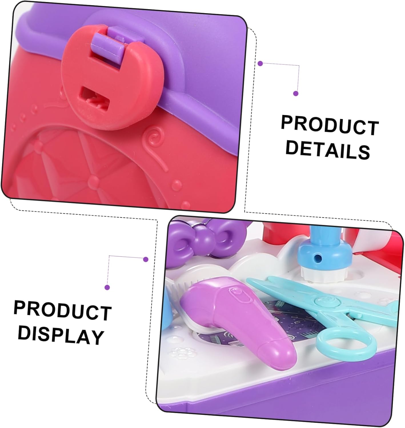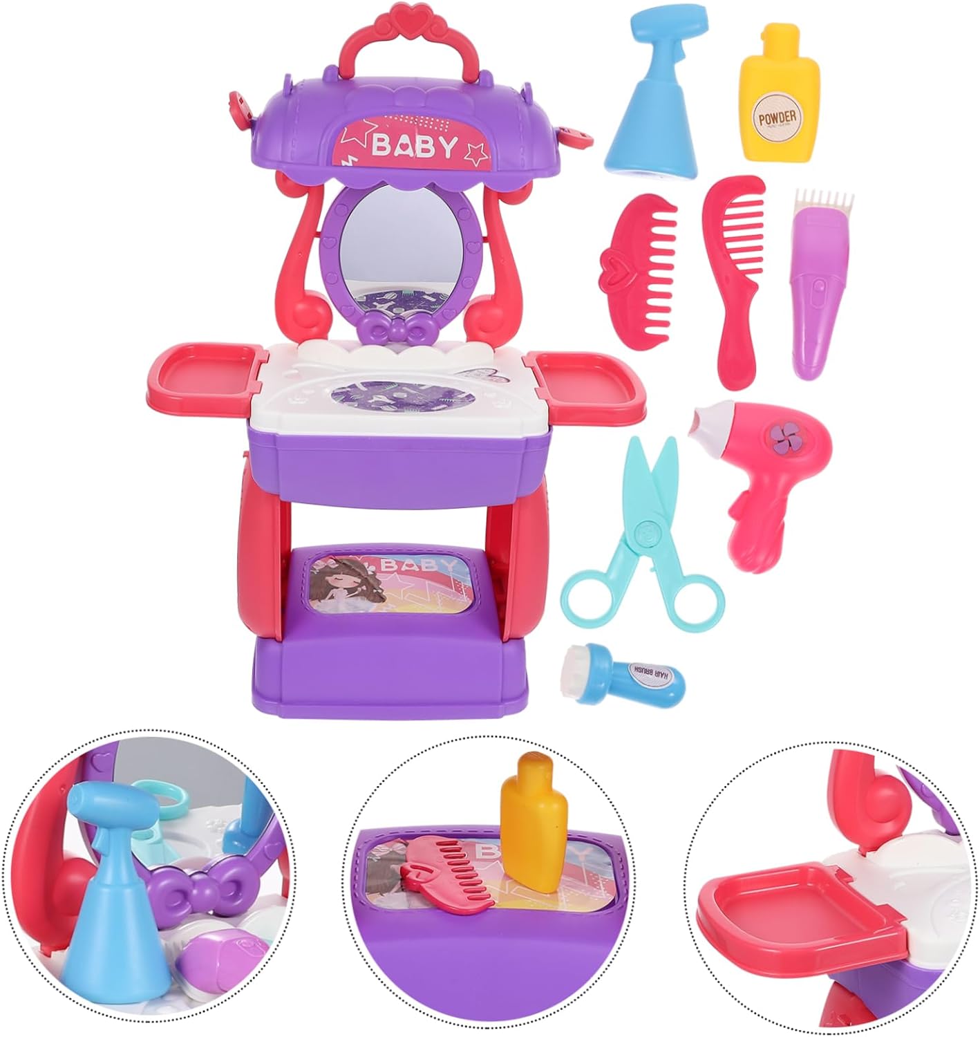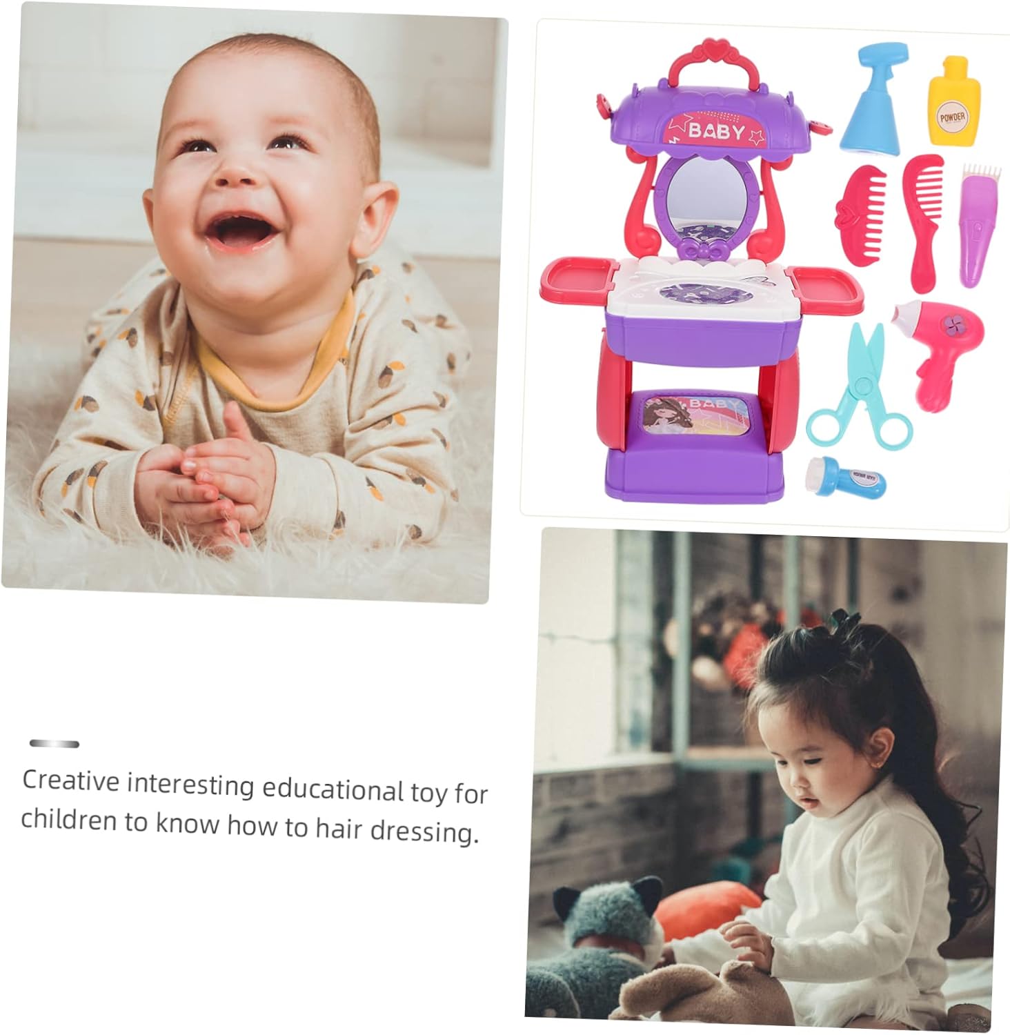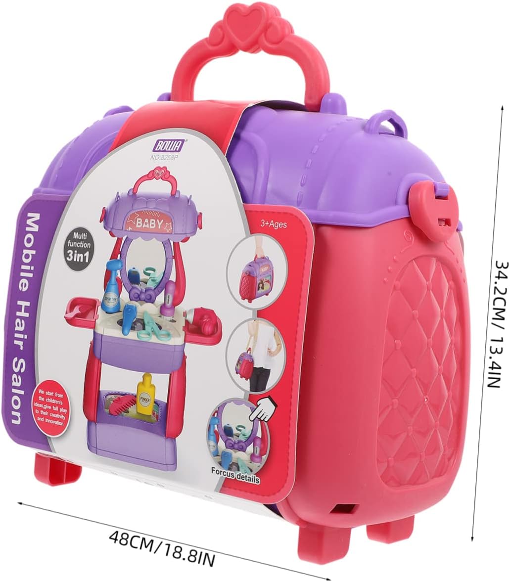 Divertente giocattolo da parrucchiere per: un interessante che regala ai bambini un'infanzia felice, non solo quella con i telefoni cellulari, set da parrucchiere per bambini, simulazione di acconciature: leggero e portatile, facile da riporre e trasportare, adatto a casa, ufficio, ecc., educativo cognitivo: le bambine possono giocare di ruolo, giochi di parrucchiere, giochi di salone di bellezza e travestimenti, stimolando l'immaginazione e la creatività dei bambini. Giocattolo interattivo di bellezza in plastica per capelli: uno per l'interazione genitore-figlio, che promuove la relazione tra genitori e figli. Giocattolo di bellezza per salone di bellezza da parrucchiere: questo set da parrucchiere combina toletta, borsa per il trasporto e borsa a tracolla in un unico set e offre ai tuoi bambini molto comfort quando. gioco di ruolo nel salone