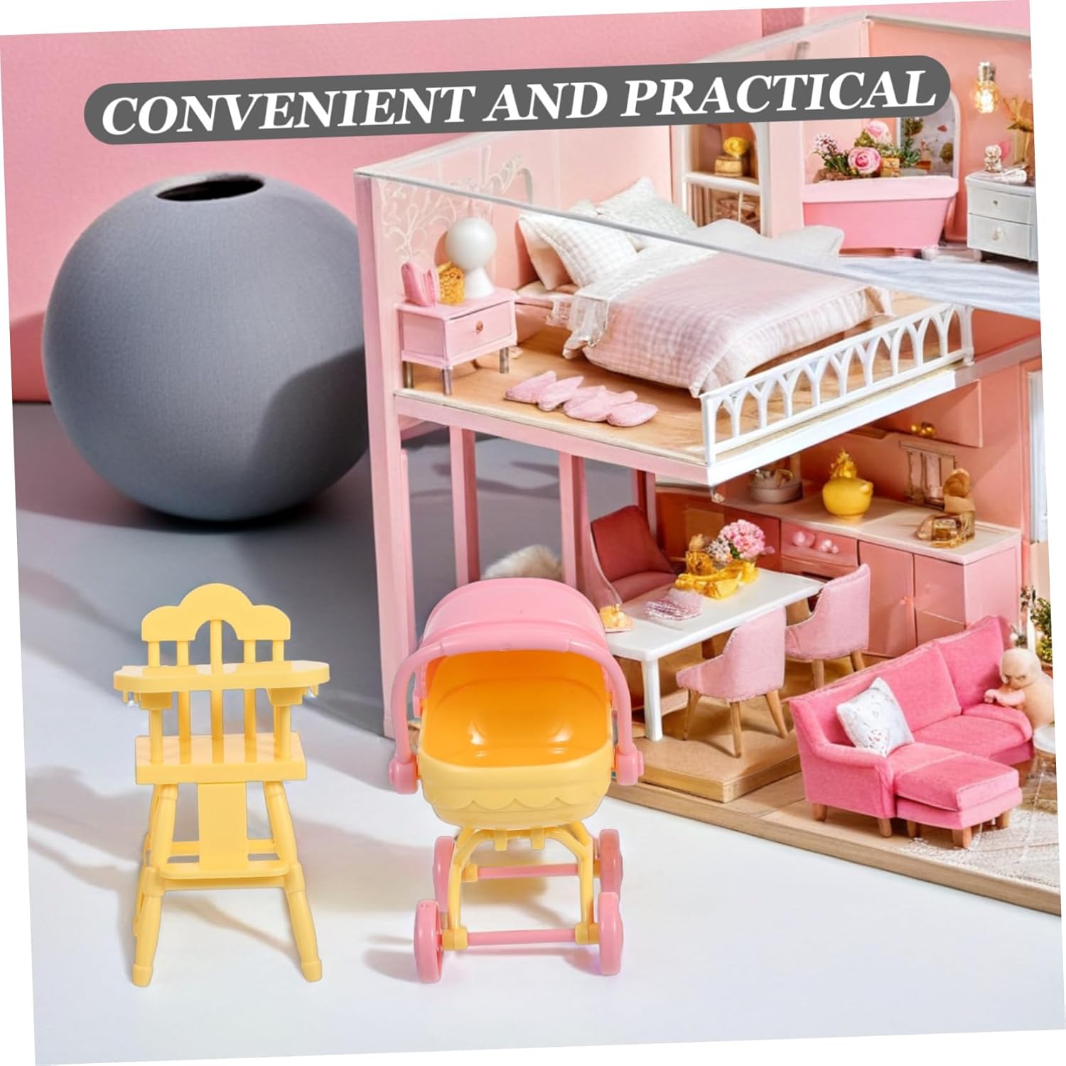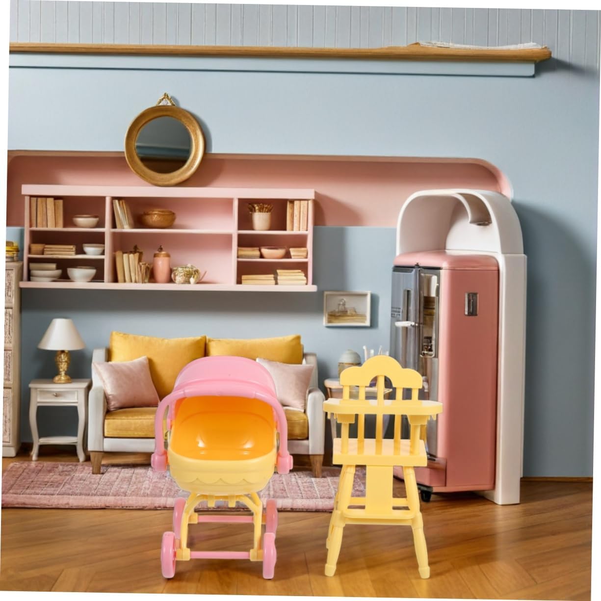 Design versatile: questo set per la cameretta delle bambole è dotato di un grazioso passeggino e di un seggiolone, perfetti per scenari di gioco fantasiosi Materiali sicuri: realizzati in ABS, garantiscono un sicuro per i bambini durante il gioco Ideale per i playdate: questo set per la cameretta dei bambini è un'eccellente aggiunta ai playdate, consentendo ai bambini di impegnarsi insieme nel gioco di ruolo e nella cura dei bambini Perfetto per piccoli spazi: le dimensioni compatte del mini passeggino e del seggiolone li rendono adatti ad aree di gioco limitate, come camere da letto o sale giochi Incoraggia le abilità sociali: interagire con questo set per la cameretta delle bambole aiuta i bambini a sviluppare abilità sociali mentre interagiscono con gli amici e storie
