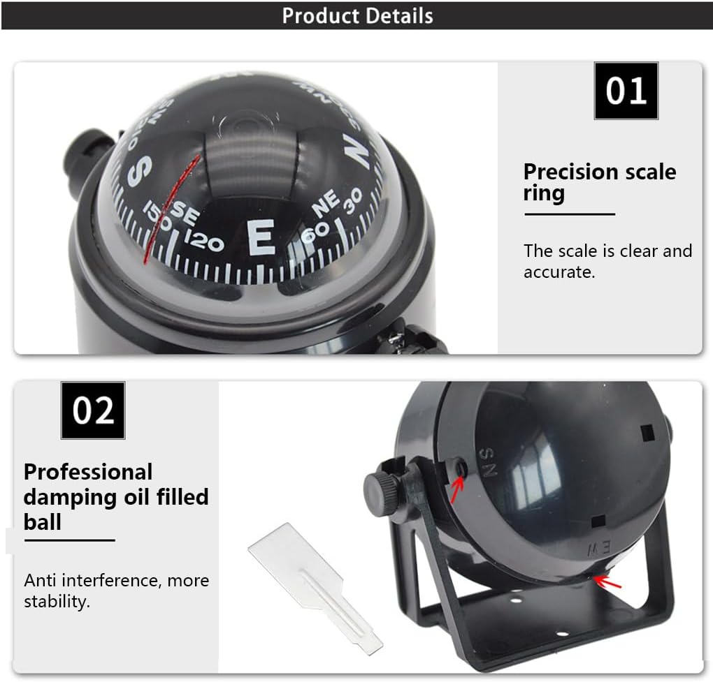 Materiale di classe La bussola è realizzata in materiale di classe, che ha una buona durata e praticità Dimensioni compatte La bussola è progettata con dimensioni compatte, che non occuperanno troppo spazio Scale chiare e precise La bussola presenta scale chiare e precise, che offrono comodità per l'uso e la lettura Ampio utilizzo Come bussola professionale e conveniente, è applicabile per barche, automobili, ecc Base regolabile La bussola è dotata di una base regolabile e puoi trovare l'angolazione più comoda per leggere la bussola