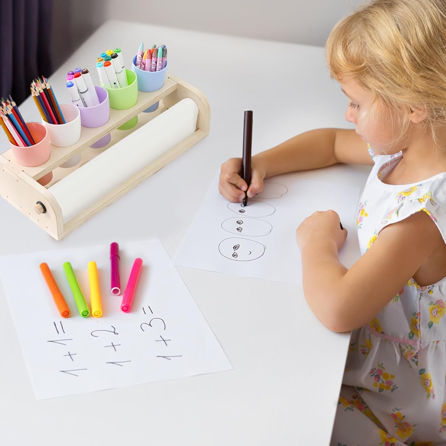 Ottima idea: che sia per un compleanno, una vacanza o semplicemente perché, questo cavalletto in legno è meraviglioso per i bambini..Fornisce ai bambini un modo divertente e coinvolgente di esercitare le proprie abilità di disegno e pittura, il tutto divertendosi. Divertente e funzionale: questo cavalletto è dotato di un distributore di rotoli di carta integrato, che offre una superficie continua per attività creative..Incoraggia i bambini a esprimere liberamente la propria creatività, mentre i 4 bicchieri portapenne inclusi aiutano a mantenere organizzati i materiali artistici. Costruzione in legno: realizzato in legno robusto, questo cavalletto è progettato per resistere all'uso quotidiano da parte di giovani artisti..La struttura in legno garantisce stabilità, rendendolo una scelta affidabile per i bambini che amano creare ed esplorare i propri talenti artistici. Compatto e portatile: misura 13,8x6,7x4,3 pollici, questo cavalletto da tavolo è della dimensione perfetta per consentire ai bambini di divertirsi a disegnare, dipingere e creare..Il suo design compatto consente una facile conservazione e trasportabilità, rendendolo ideale sia per l'uso domestico che in viaggio. Perfetto per i bambini: progettato appositamente per i giovani artisti, questo cavalletto da tavolo è facile da usare e promuove il gioco fantasioso..È un ottimo strumento per sviluppare le capacità motorie, la creatività e la risoluzione dei problemi, intrattenendo i bambini per ore.