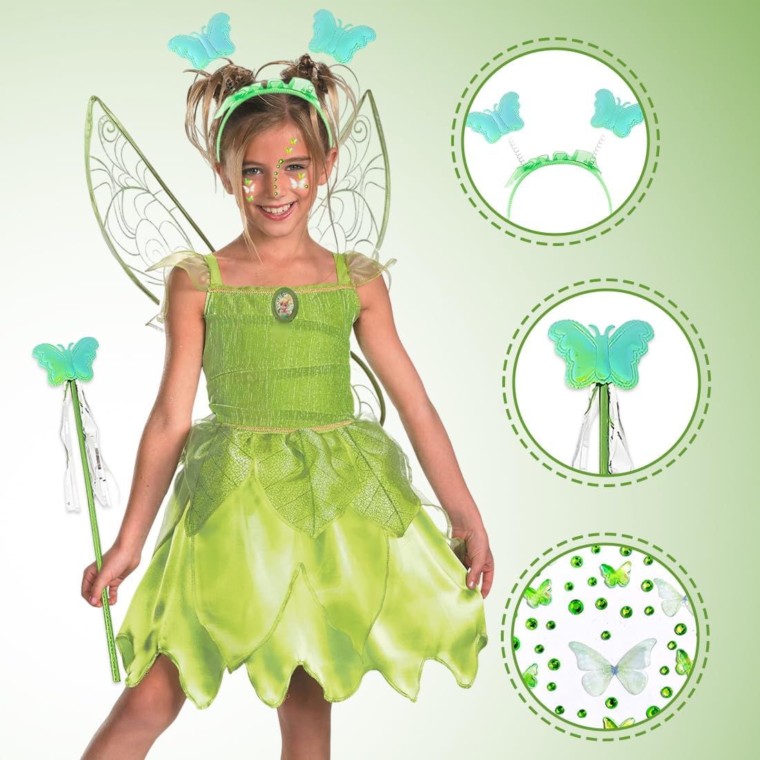 Dimensioni del prodotto: Lunghezza del cerchietto 20 cm, diametro 11 cm. La bacchetta magica ha una lunghezza totale di circa 34 cm, leggera e facile da maneggiare, perfetta per le mani dei bambini Contenuto della confezione: Include 1 cerchietto da fata, 1 bacchetta magica e adesivi per il viso. Trasforma la tua bambina nella sua principessa preferita con questi accessori magici e divertenti Materiali di alta qualità: Realizzati con materiali tessili di qualità, i nostri accessori sono leggeri, resistenti, mantengono la forma e i colori nel tempo, garantendo sicurezza per i bambini Regalo perfetto per bambini: Ogni angelo o fata merita una bacchetta magica! Questo modello con stelle scintillanti è un'opzione incantevole per far brillare l'immaginazione dei più piccoli Versatilità d'uso: Ideale per spettacoli di magia, Natale, giochi di ruolo, feste in maschera, compleanni, baby shower, matrimoni, feste di addio al nubilato e molte altre occasioni speciali
