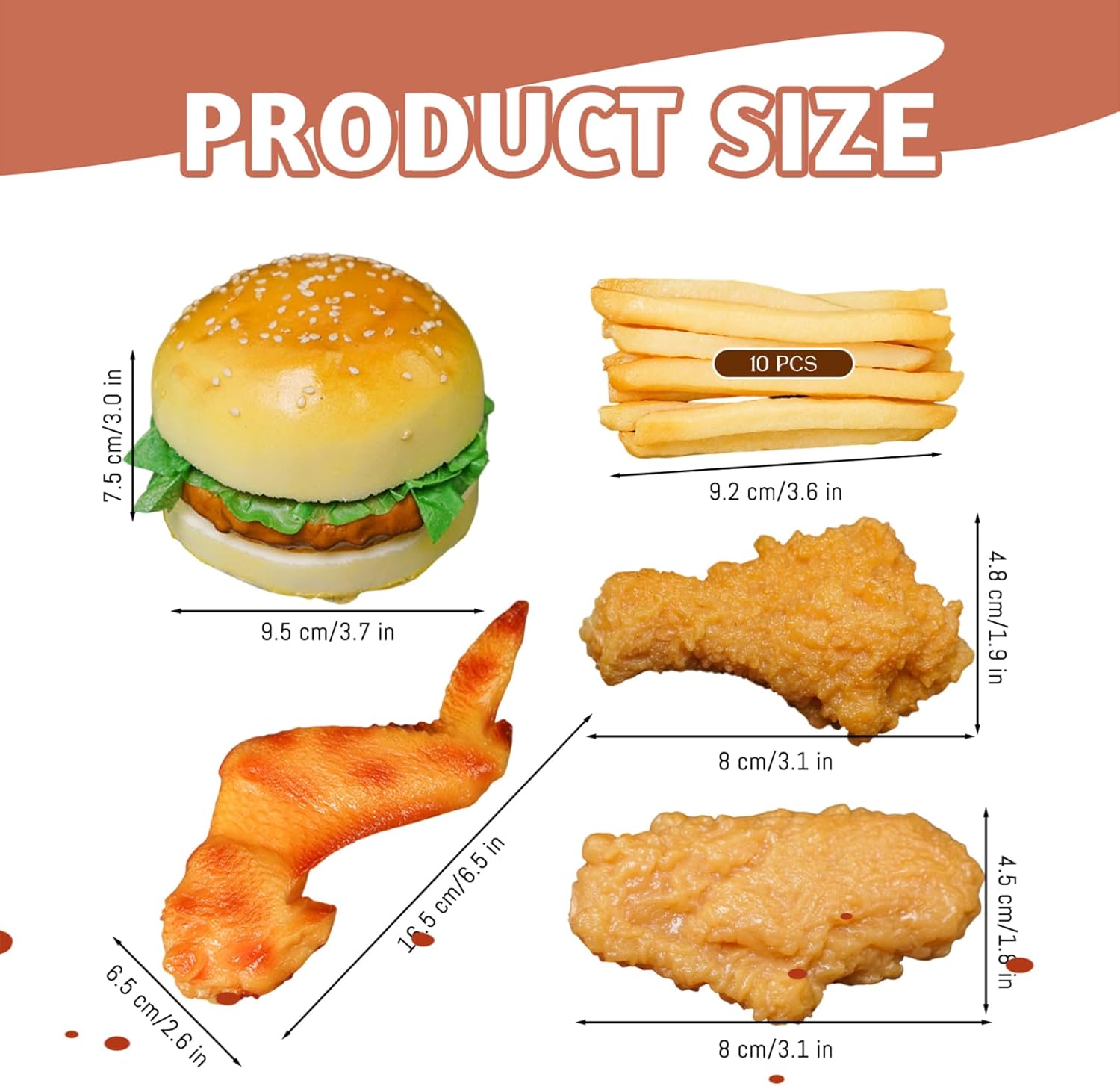 Food di gioco realistico: realizzato con trame dettagliate e colori vibranti, questo set di cibo in plastica artificiale sembra proprio come la cosa reale, migliorando il gioco immaginativo e rendendo le decorazioni di Halloween più vivaci. Facile da pulire e archiviare: le superfici lisce consentono una pulizia rapida dopo il gioco e le dimensioni compatte garantiscono una comoda conservazione, rendendo questo impostato senza problemi per i genitori e ideale per l'uso quotidiano. Materiali affidabili: realizzato in plastica di alta qualità e non tossica che è sicura per i bambini e costruita per resistere all'uso ripetuto senza sbiadire o rompere, garantendo un divertimento duraturo. Opzioni di utilizzo versatili: perfetto per cucine da gioco, giocattoli alimentari, decorazioni per feste o oggetti di scena, offrendo valore multifunzionale per il gioco creativo dei bambini e le configurazioni festive. Set di pasti completo: include favoriti popolari come hamburger, pollo fritto e patatine fritte, aiutando i bambini a conoscere le categorie di cibo incoraggiando il gioco di ruolo e l'interazione sociale.