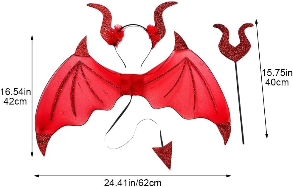 Perfetto per una festa di Halloween, una festa in costume, una festa a tema diavolo, una festa notturna spettrale, una festa di cosplay, una recita scolastica o uno spettacolo teatrale. Distinguiti in ogni occasione. Fai girare la testa quando esci per Halloween con questo costume da diavolo rosso. Realizzato con materiali di alta qualità, leggero e resistente. Liscio e morbido al tatto, comodo da indossare. Aiuta a trasformarti rapidamente in un simpatico diavolo e creare un'atmosfera da festival. Il corno del diavolo, la forchetta del diavolo e l'ala del diavolo aggiuntiva trasformano il tuo look e trasformano il tuo costume in un costume da diavolo completo.