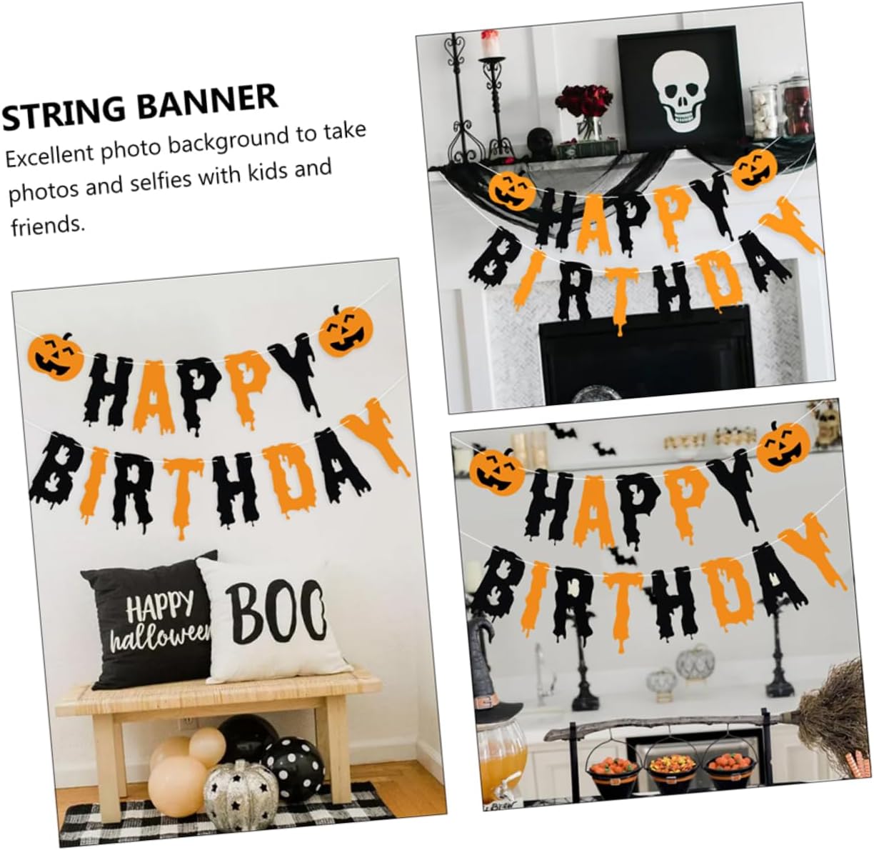 Decorazione di buon compleanno - Comodo da usare, facile da usare, questo set di decorazioni per feste ha un design semplice, decorazioni per feste. Ghirlanda: squisita stampa con motivo a zucca, così i bambini lo adoreranno, striscione sospeso di Halloween. Banner di Halloween: i colori vivaci creano un'atmosfera vivace, rendono qualsiasi luogo pieno di atmosfera di festa, decorazioni di Halloween all'aperto. Banner Happy Halloween - Il design in stile cartone animato che porta molta gioia alla festa di compleanno, decorazioni di buon compleanno. Ornamenti di Halloween - Processo preciso e di taglio per una pratica decorazione della festa di compleanno, felice segno di Halloween.