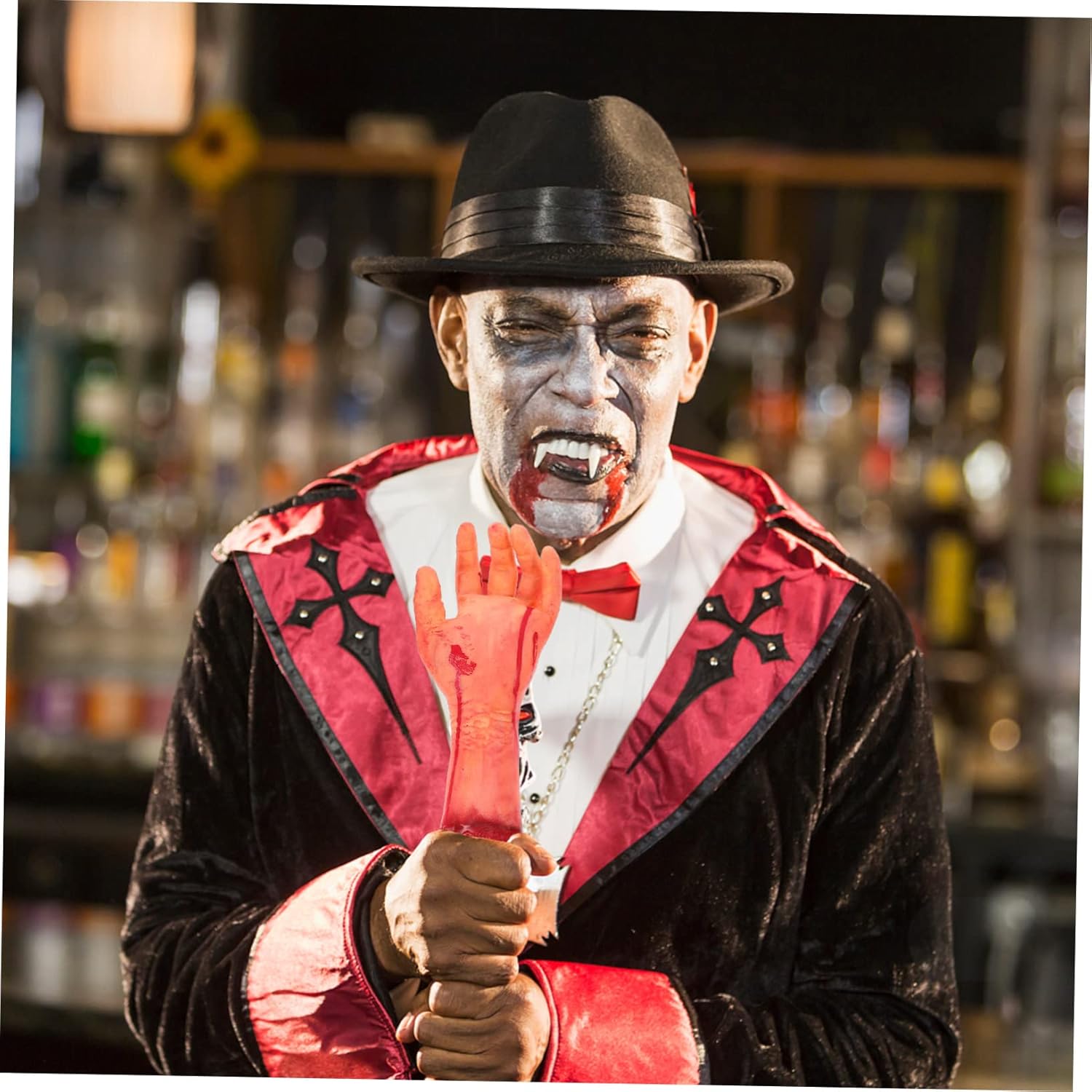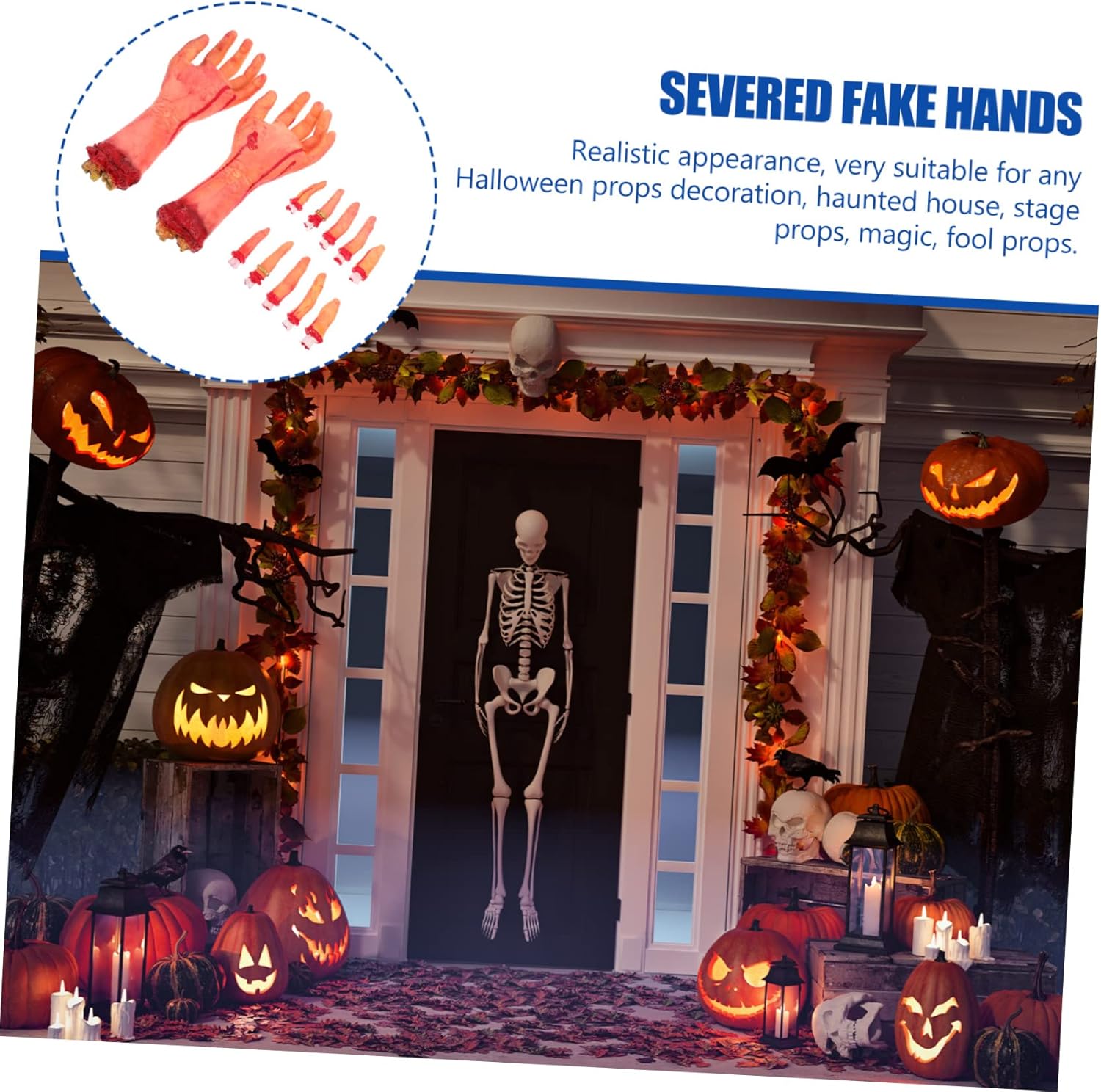 Mani artificiali mozzate: ossa, vene e carne esposte viste su mani umane artificiali. Puoi aggiungere un po' di sangue finto per rendere l'oggetto artificiale della mano umana più spaventoso e una decorazione di Halloween. Oggetti di scena per scherzi di Halloween: possono essere utilizzati anche come oggetti di scena di Halloween in cucina, bagno, cortile, portico, porta, ecc., per parti del corpo rotte. Decorazione della casa stregata: roba spaventosa da lontano, anche quando si afferrano parti del corpo insanguinate, poiché le mani in lattice danno una sensazione di compressione flessibile, adatta anche per decorare barattoli di vetro, parti del corpo finte. Oggetti di scena horror spaventosi: ottima decorazione per Halloween, camera segreta, casa stregata, bar, scherzi ecc., oggetti di scena sanguinosi di Halloween. Accessorio per feste in maschera: durevole, consente di risparmiare denaro, puntello per dita insanguinate.