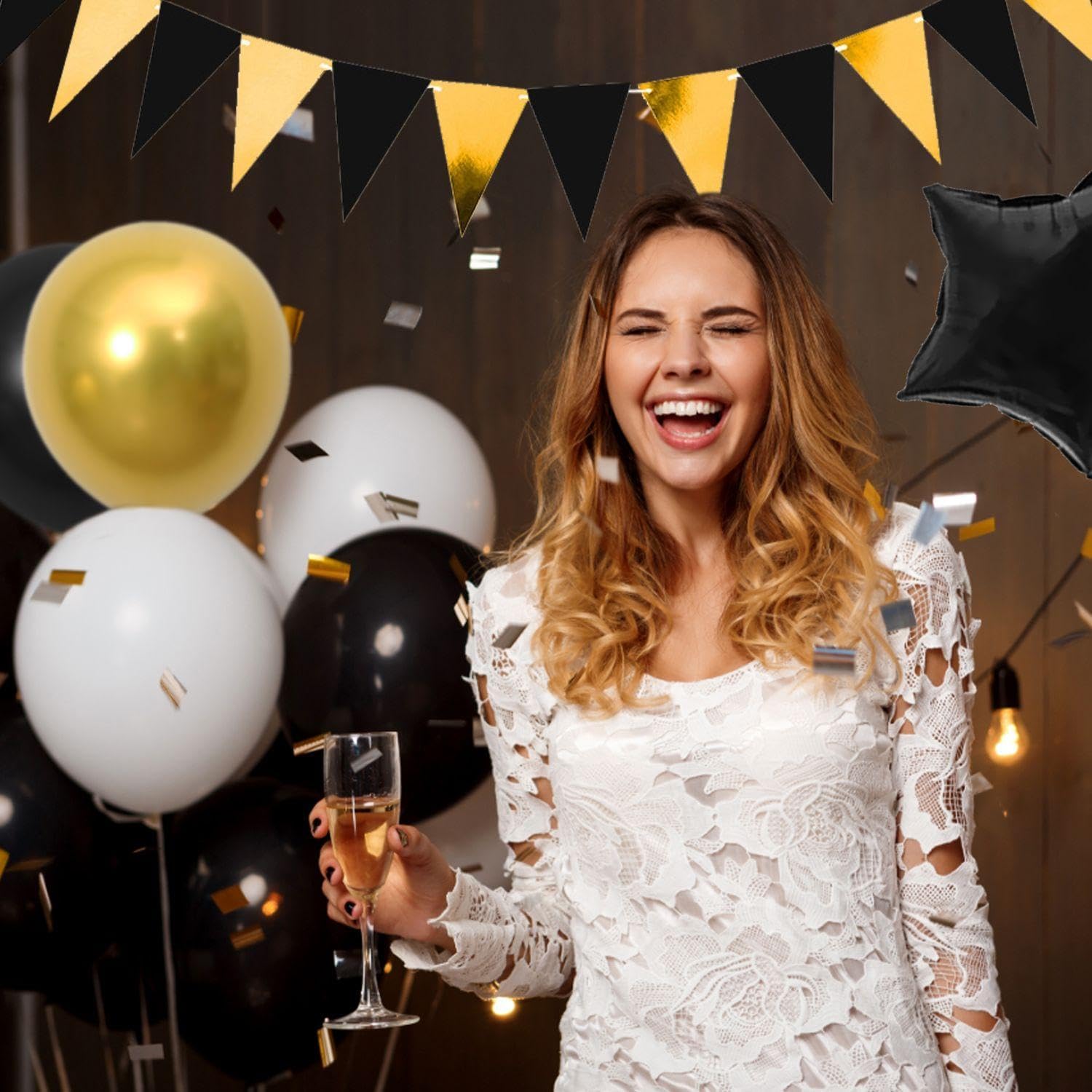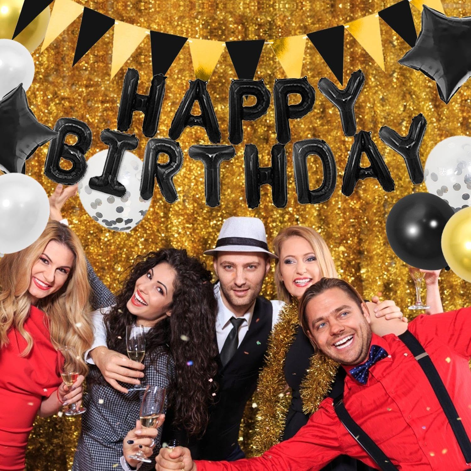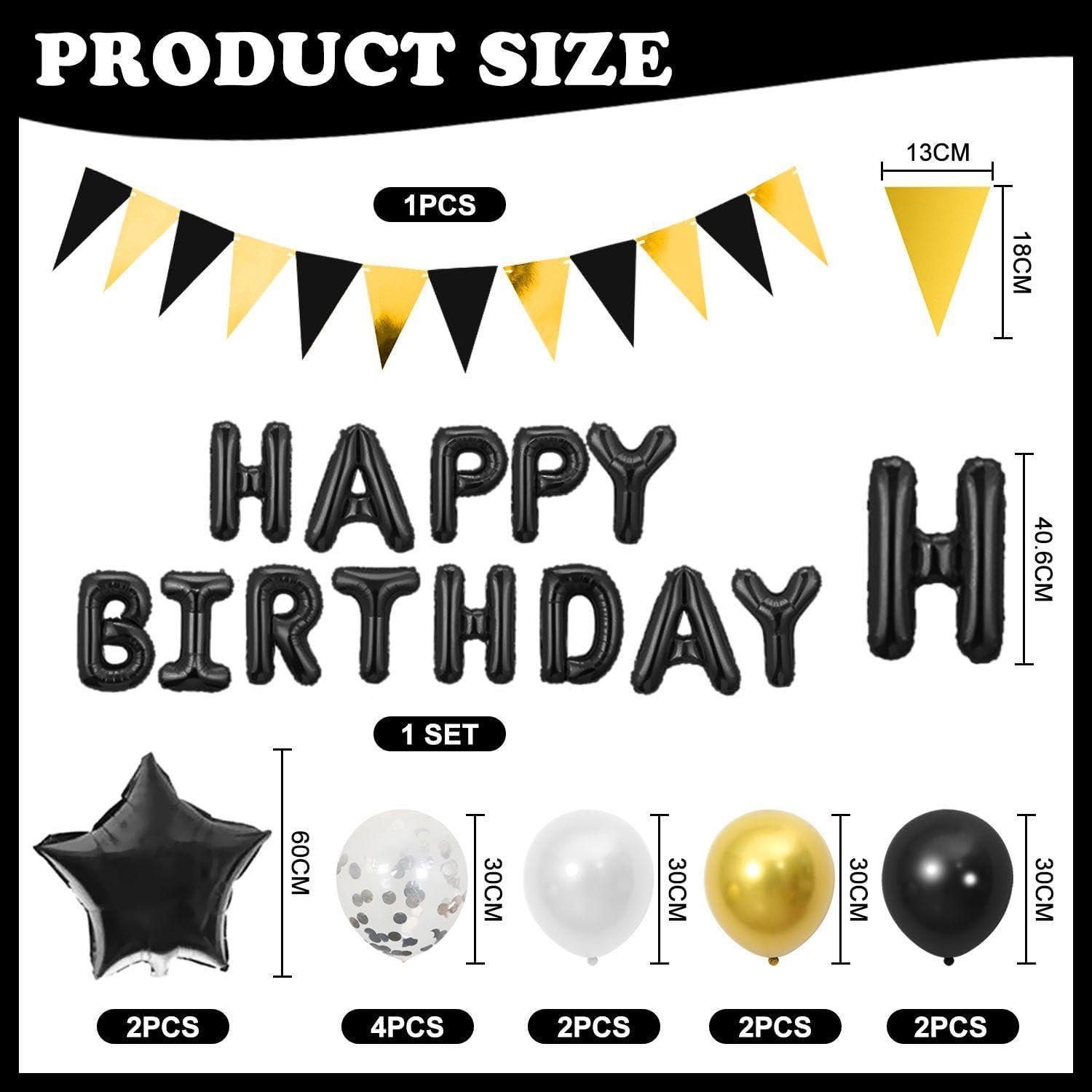 【Contenuto Del Prodotto】 Riceverai 1 Set Di Palloncini Di Compleanno E 1 Bandiera Pull. La Dimensione Del Palloncino È Di Circa 12-20 Cm E Il Colore È Nero E Oro; La Dimensione Della Bandiera È Di Circa 30-50 Cm E Il Colore È Nero E Oro, Che È Adatto Alla Decorazione Di Feste Di Compleanno. 【Materiale Del Prodotto】 I Palloncini Sono Realizzati In Pellicola In Alluminio/Foglio Di Alluminio E La Bandiera È Realizzata In Carta, Garantendo La Loro Sicurezza E Durata Durante L'Uso, Fornendo Al Contempo Un Buon Effetto Decorativo. 【Design Creativo】 Questo Set È Unico Nel Design, Con Elei Colori Nero E Oro, E I Paillettes Sul Palloncino E La Bandiera Aggiungono All'Atmosfera Gioiosa Della Festa, Che È Molto Adatto Alle Celebrazioni Di Compleanno. 【Facile Da Installare】 Queste Decorazioni Sono Facili Da Usare, I Palloncini Possono Essere Appesi Solo Se Gonfiabili E Le Bandiere Possono Essere Tagliate E Disposte A Piacimento Secondo Necessità, Rendendo La Disposizione Del Tuo Partito Più Flessibile E Diversificata. 【Ampiamente Usato】 Non È Solo Adatto Per Feste Di Compleanno, Ma Anche Per Varie Celebrazioni, Come Celebrazioni Per L'Anniversario, Cerimonie Di Laurea, Ecc., Per Migliorare L'Atmosfera Festosa Dell'Evento.