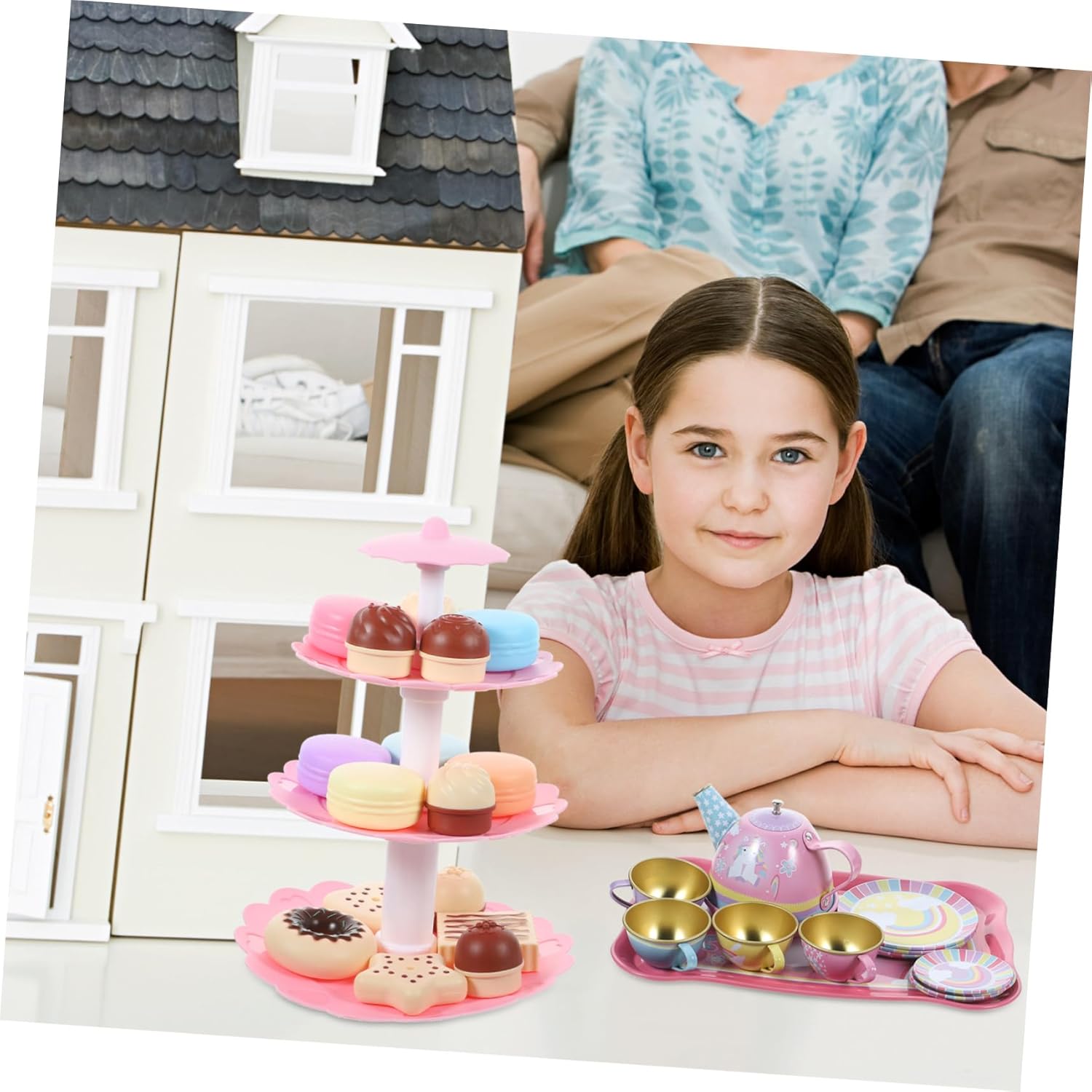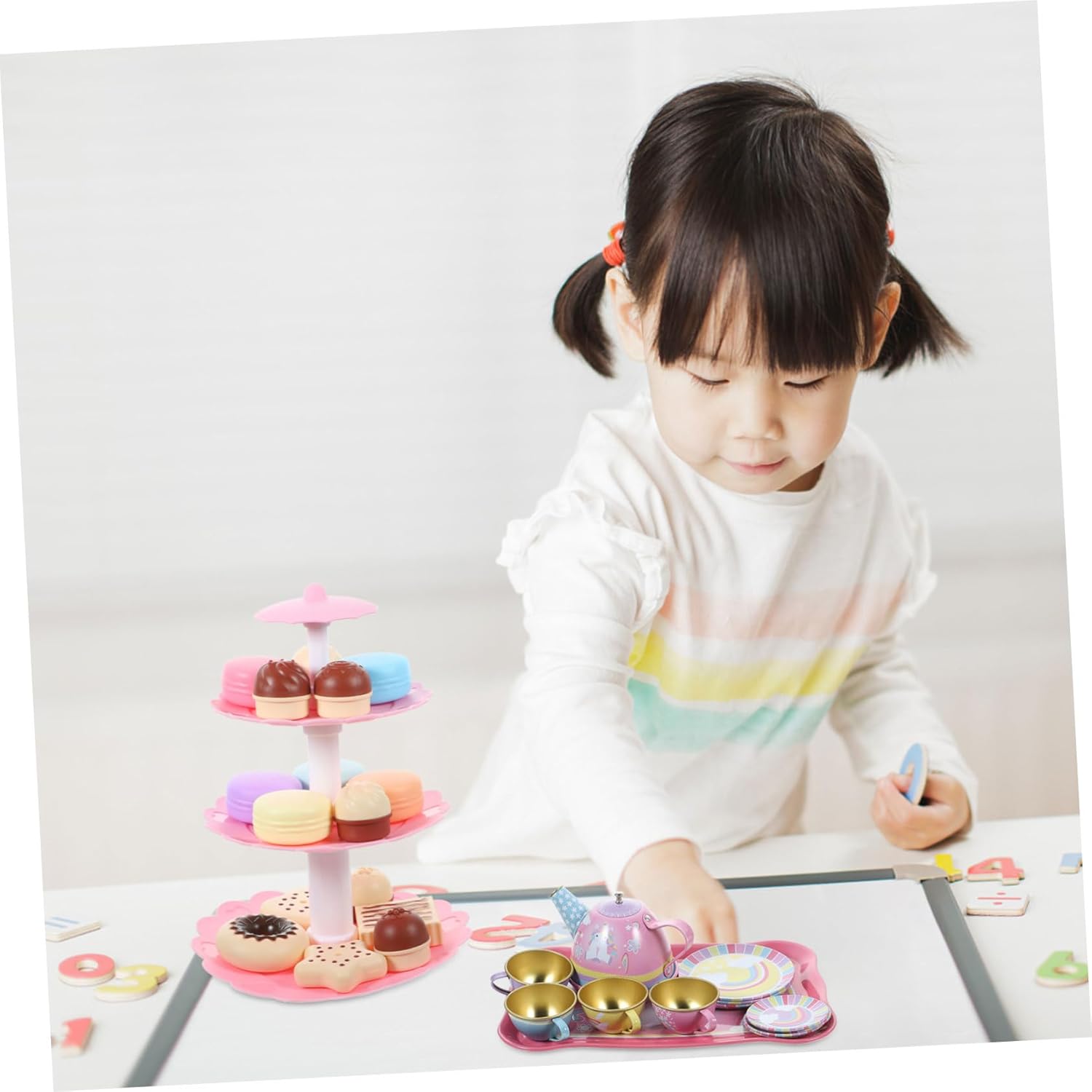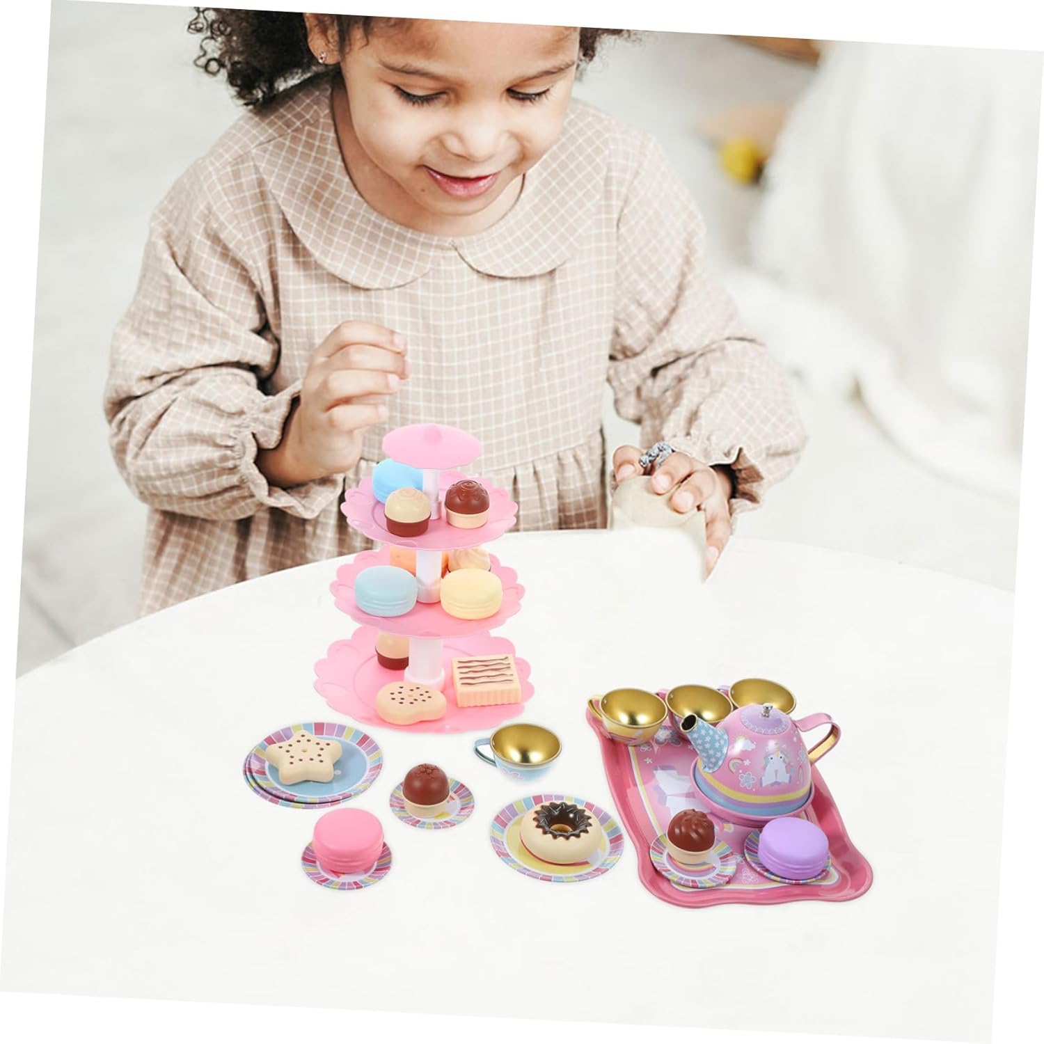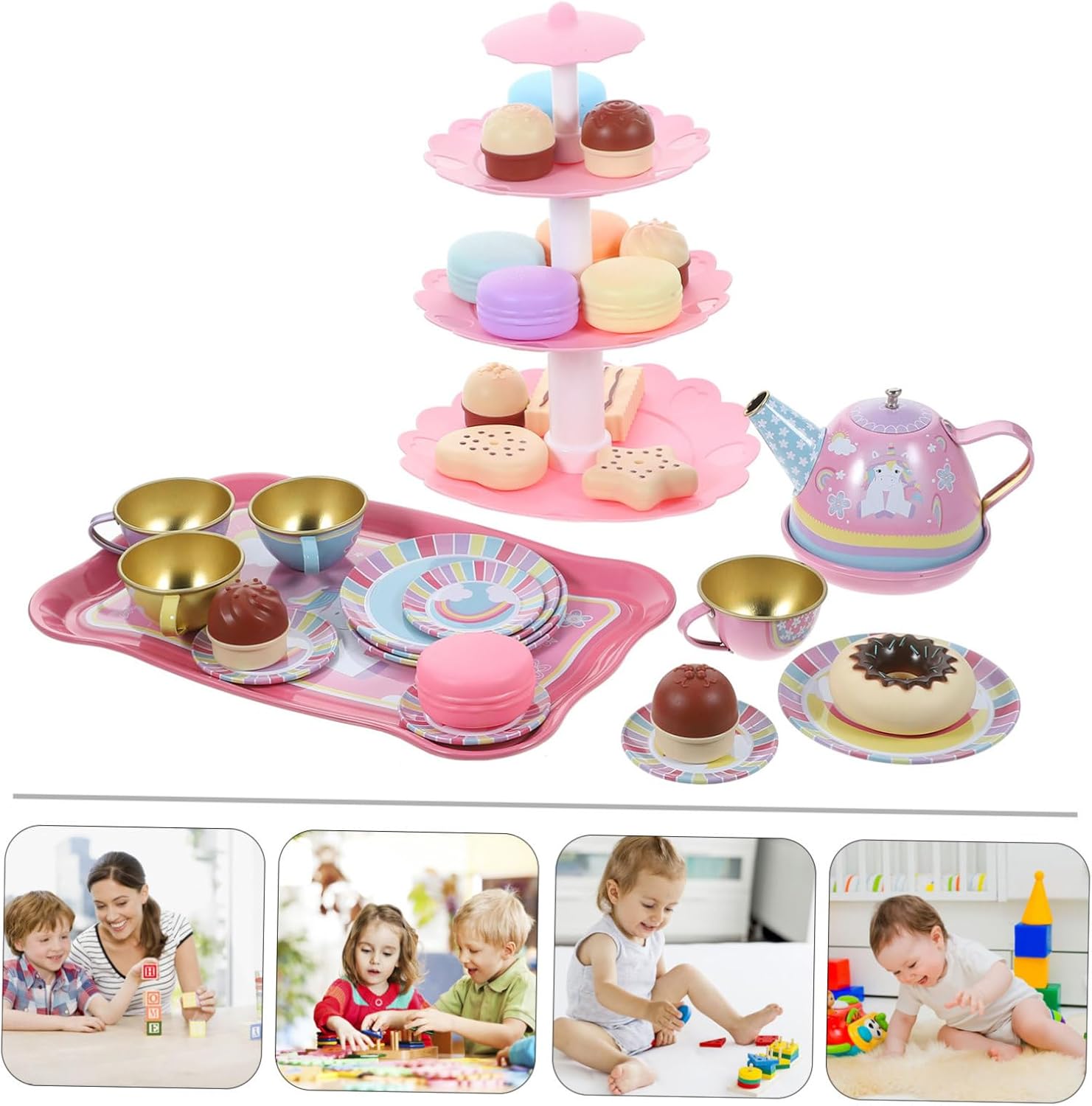 Decorazioni per il tè pomeridiano - sono molto interessati a tutti i comportamenti degli adulti, il set da tè simulato offre una scena di vera esperienza, un giocattolo da dessert per il tea party per il tè pomeridiano - questo set da tè realistico è perfetto perché ti consente di partecipare al tè pomeridiano e sviluppare abilità sociali Per il tè pomeridiano - i materiali sicuri in peltro utilizzati nel set da tè assicurano che tuo figlio lo usi con sicurezza, un giocattolo da dessert per il tè pomeridiano giocattolo per - Questo set da tè è perfetto per e ti offre un giocattolo divertente e interattivo con cui puoi essere fantasioso nella vita di tutti i giorni. Per le decorazioni del tè pomeridiano: è possibile combinare una varietà di combinazioni per abbinarle ai set da tè, divertire i bambini durante il tè pomeridiano