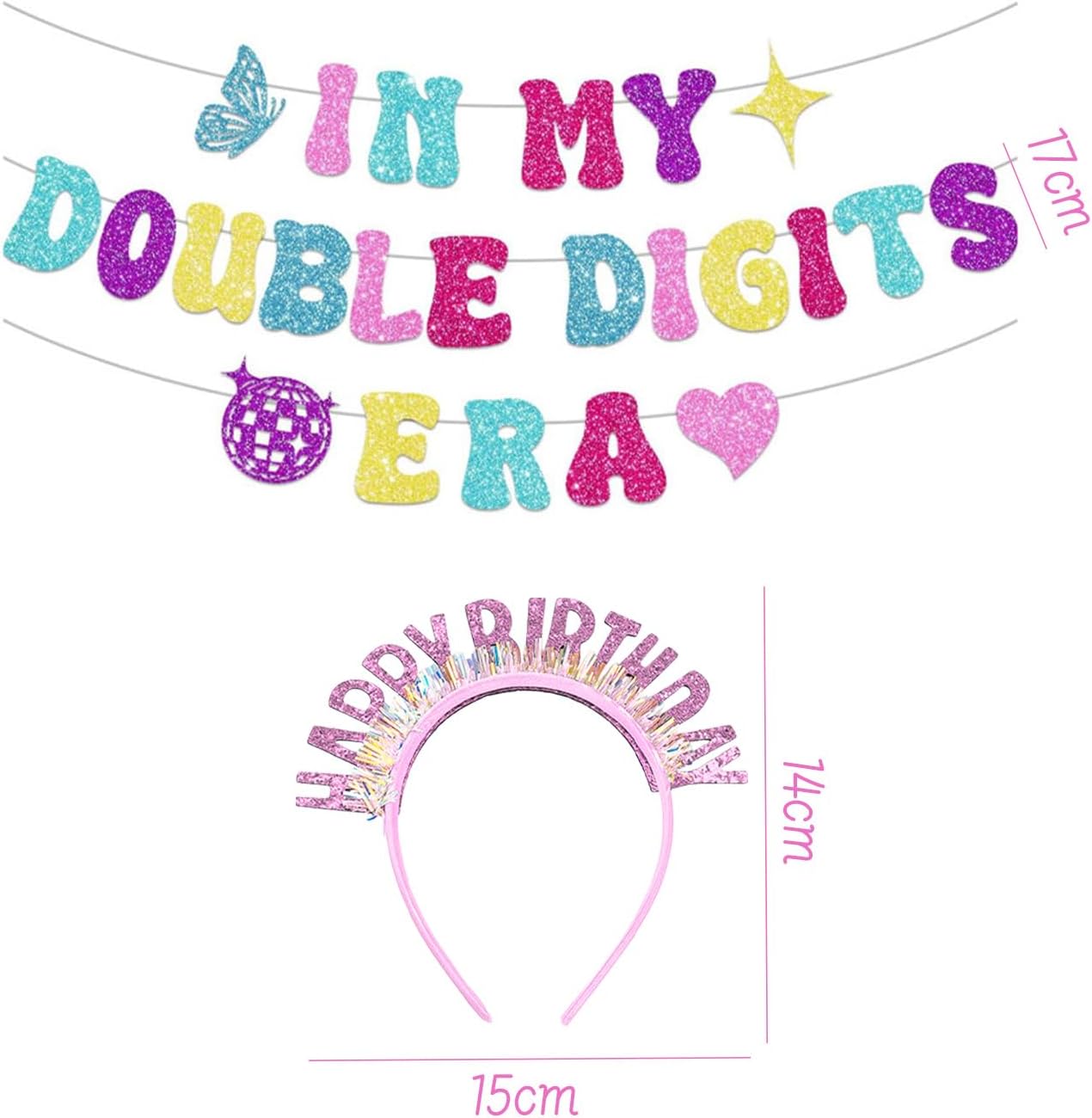 1 set di striscioni di compleanno e 1 fascia per capelli di compleanno, decorazione per il 10° compleanno per ragazze, striscione per il 10° compleanno, decorazione per festa di compleanno.