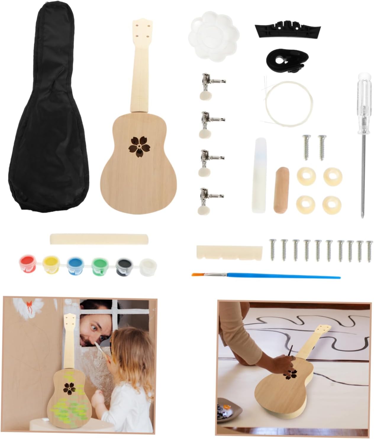 Kit di accessori per ukulele fatto a mano: interessante e utile, può suscitare interesse per il lavoro manuale e migliorare le abilità, Kit di accessori per ukulele Ukulele fatto a mano: facile da suonare e aiuta il bambino a sviluppare il senso del ritmo e della fiducia in se stesso, pregevole fattura e aspetto, Kit fai da te per ukulele Kit per ukulele fatto a mano: fai questo ukulele da solo, non hai bisogno dell'aiuto di altre persone, Accessorio per ukulele Lavora insieme: bambini e genitori lavorano insieme per avvicinare i genitori al mondo interiore dei loro figli, interazione genitore-figlio, kit hardware per ukulele fai da te, kit per ukulele Accessori per ukulele: utilizzo di materiali e pregevole fattura, forte e robusto per un kit per realizzare ukulele