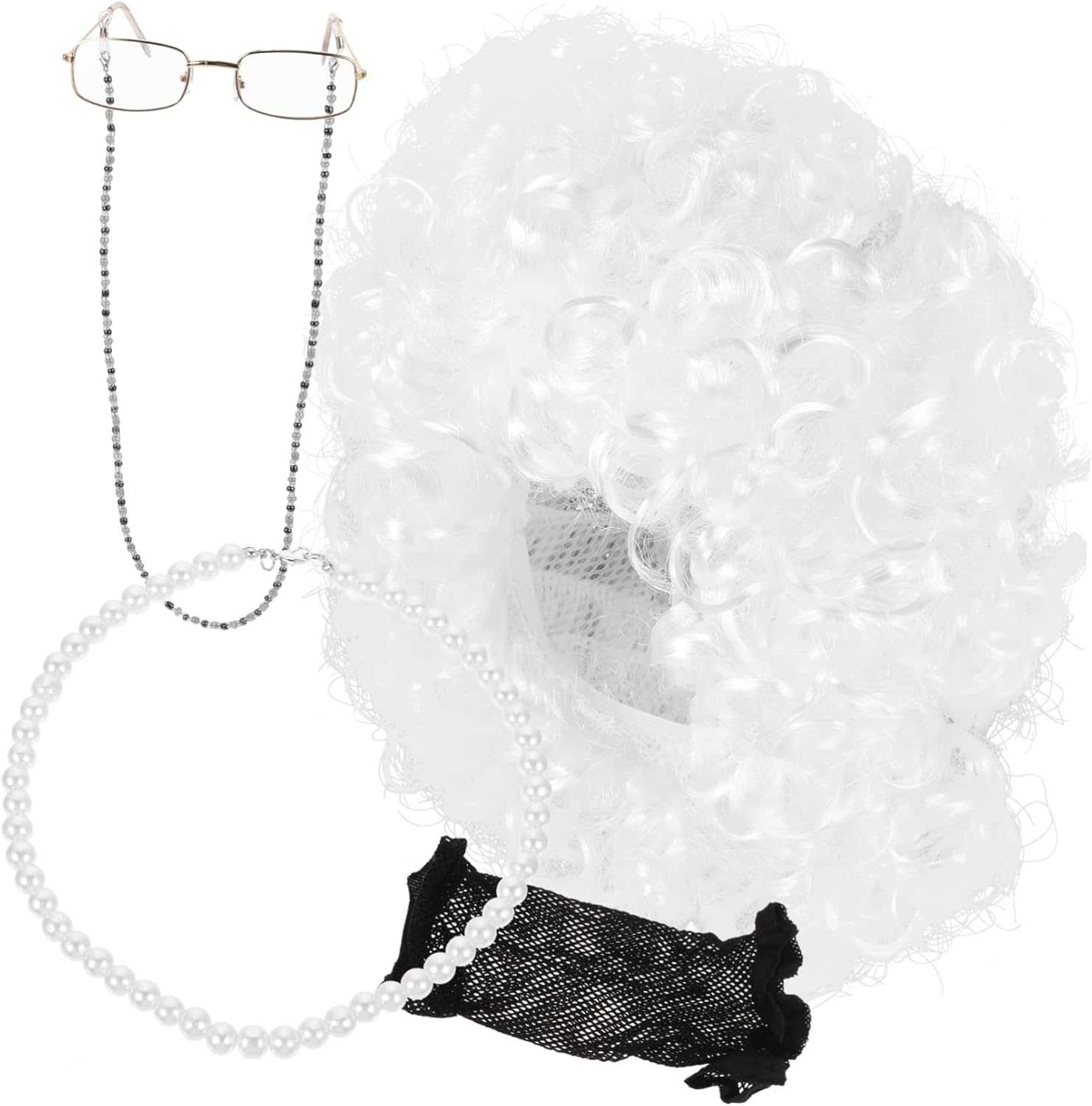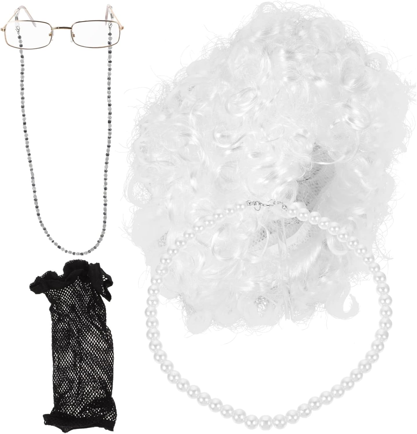 Il pacchetto include 1 x parrucca 1 x rete per parrucca 1 x paio di occhiali 1 x collana 1 x catena per occhiali Caratteristiche - Dimensioni: 23,00X18,00X11,00cm/9,04X7,07X4,32in vecchio costume -Materiale: Filato vecchio kit per costumi Descrizione della merce oggetti di scena per le prestazioni Con il suo aspetto creativo, per portare più divertimento ed eccitazione alla festa. oggetti di scena per photobooth Questo nuovo e divertente set per cosplay è fatto per essere durevole e utilizzare, lavorazione delicata, da indossare. oggetti di scena per cosplay della nonna Adatto a molte occasioni come Halloween, feste di cosplay e così via