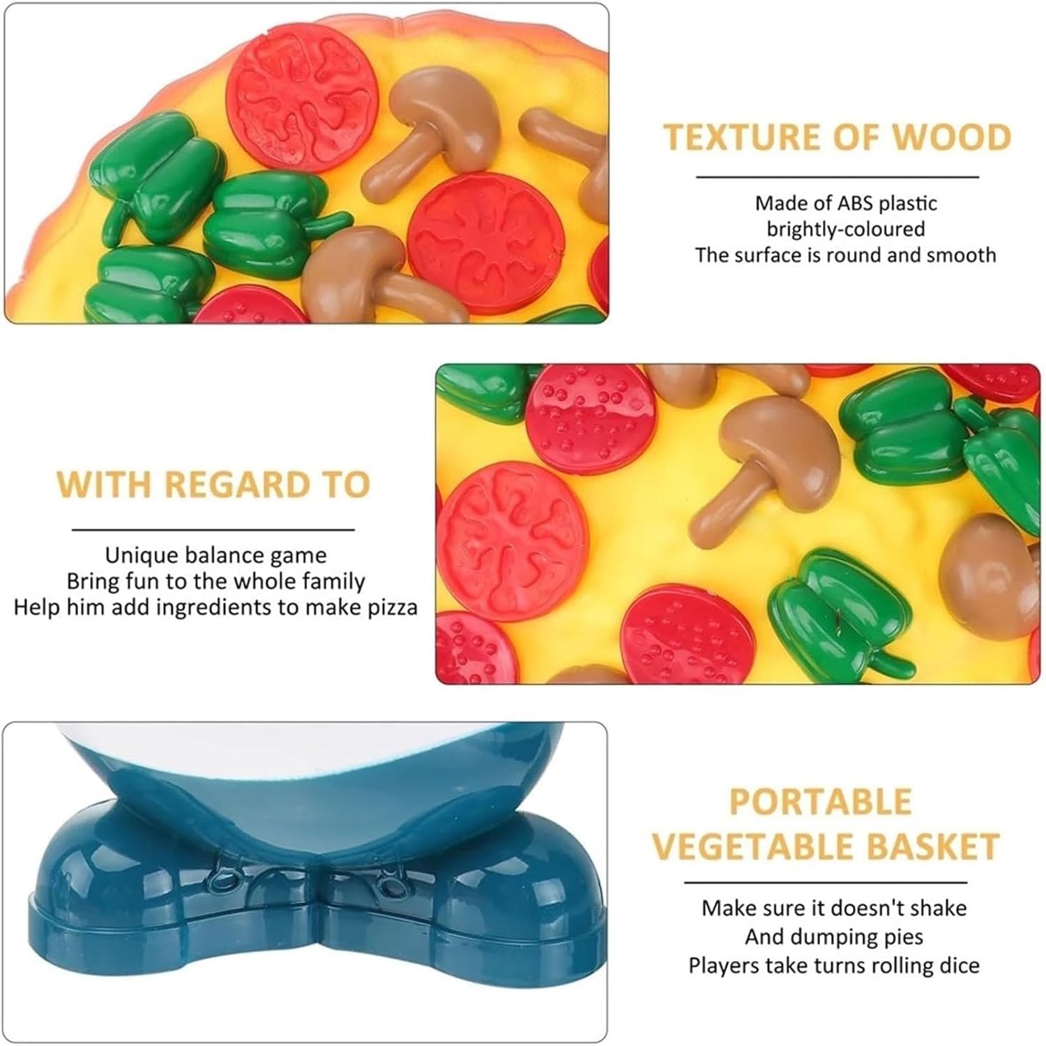 ✈✈✈ 【Exciting Balancing Pizza Game】Vi presentiamo il Pizza Game, un emozionante giocattolo da tavolo che garantisce divertimento infinito per tutta la famiglia! Questo gioco unico sfida i giocatori a impilare con attenzione i condimenti e creare la pizza perfetta senza farla oscillare e spingere oltre. ✈✈✈ 【Migliora la coordinazione e la consapevolezza spaziale 】questo giocattolo di pizza di bilanciamento impilabile non è solo un gioco, ma anche uno strumento educativo. Aiuta a migliorare la coordinazione mano-occhio e la consapevolezza spaziale nei bambini. Bilanciando attentamente i picchi sulla pizza traballante, i giocatori sviluppano le loro abilità motorie e capacità di concentrazione. ✈✈✈ 【Realizzato in plastica ecologica】 il nostro Balancing Pizza Game garantisce un'esperienza di gioco sicura e divertente per i bambini. Con i suoi colori vivaci e la superficie liscia rotonda, potete stare certi che i vostri piccoli saranno intrattenuti mentre sono protetti. ✈✈✈ 【Perfect Party Game】 Alla ricerca di un regalo di compleanno unico e divertente? Non cercare oltre il gioco della pizza party! Non è solo un ottimo modo per intrattenere i bambini durante la celebrazione, ma anche un regalo memorabile che incoraggia capacità di problem solving e competizione amichevole. ✈✈✈ 【Divertimento per tutte le età】 Il nostro gioco di pizza equilibrante non è solo adatto ai bambini di età superiore a 5, ma fornisce anche divertimento per gli adulti. Invita gli amici e gareggia l'uno contro l'altro per vedere chi può superare tutti gli altri avversari. È un regalo perfetto per gli amanti della pizza e gli appassionati di gioco allo stesso modo.