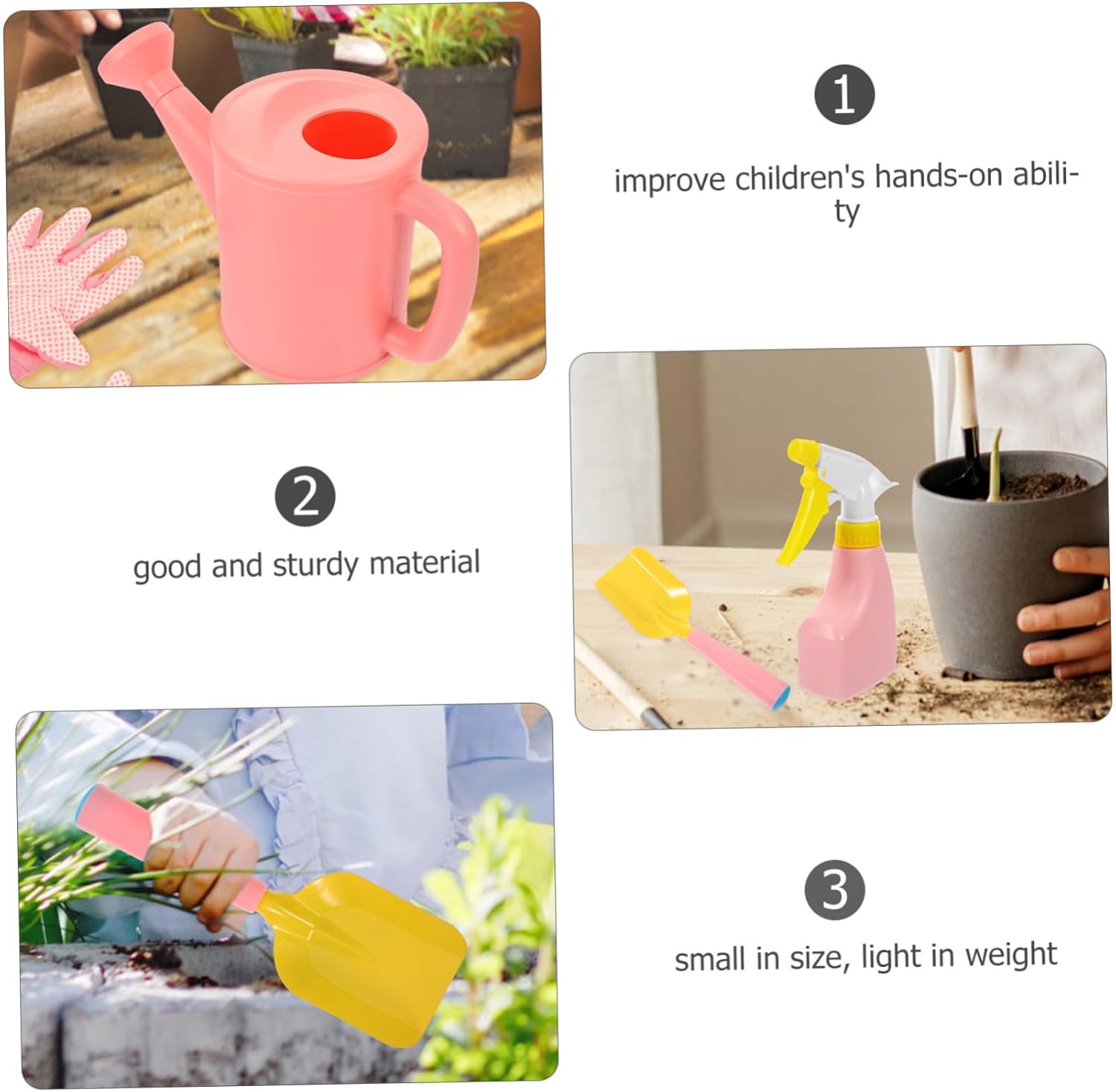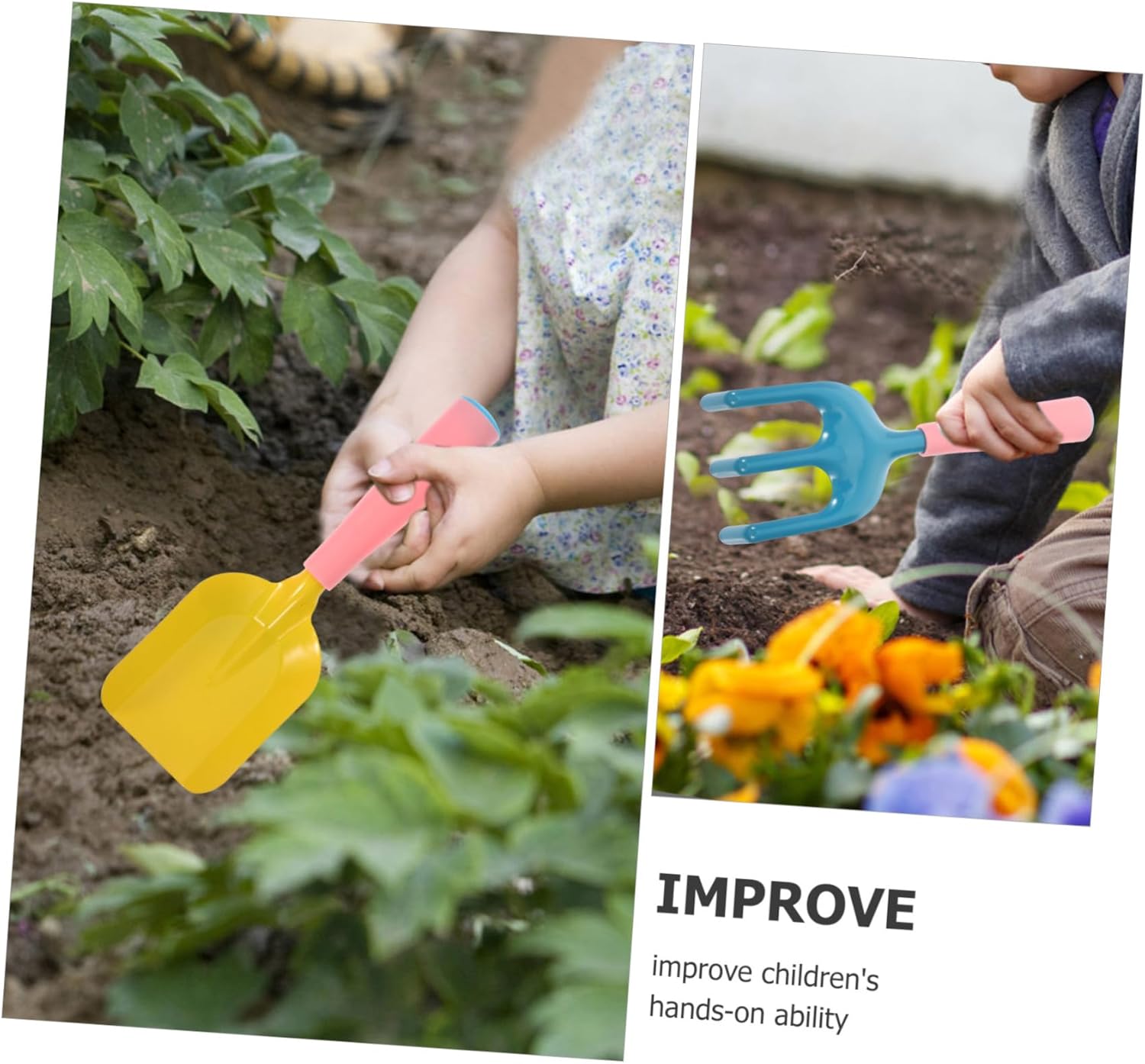 Set di attrezzi da giardino per: con i suoi colori vivaci e la lavorazione raffinata, ti divertirai e ti divertirai, cazzuola da giardino con giocattoli da giardino: sono abbastanza resistenti, non si deformano o si rompono facilmente e possono servirti a lungo, attrezzi da giardino per il giardinaggio: i colori vivaci aggiungono più divertimento alle attività del giardino, sono accattivanti e graziosi e portano più divertimento, rastrello e rastrello per bambini: può essere utilizzato per trapiantare, piantare, allentare il terreno e diserbo di fiori, verdure e attrezzi da giardino può essere utilizzato per Piccola pala da giardino: questi mini attrezzi da giardino aiutano a rendere il giardinaggio o la piantagione un'attività ricreativa e divertente per la famiglia, strumento per scavare il terreno del giardino
