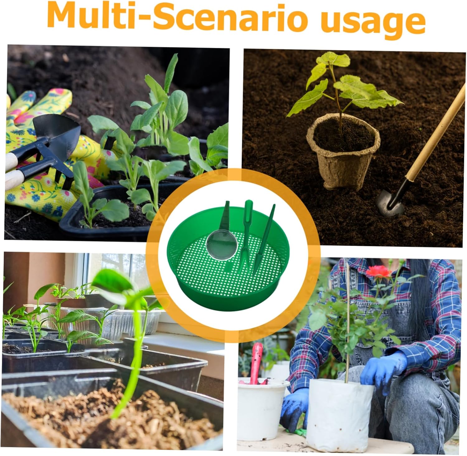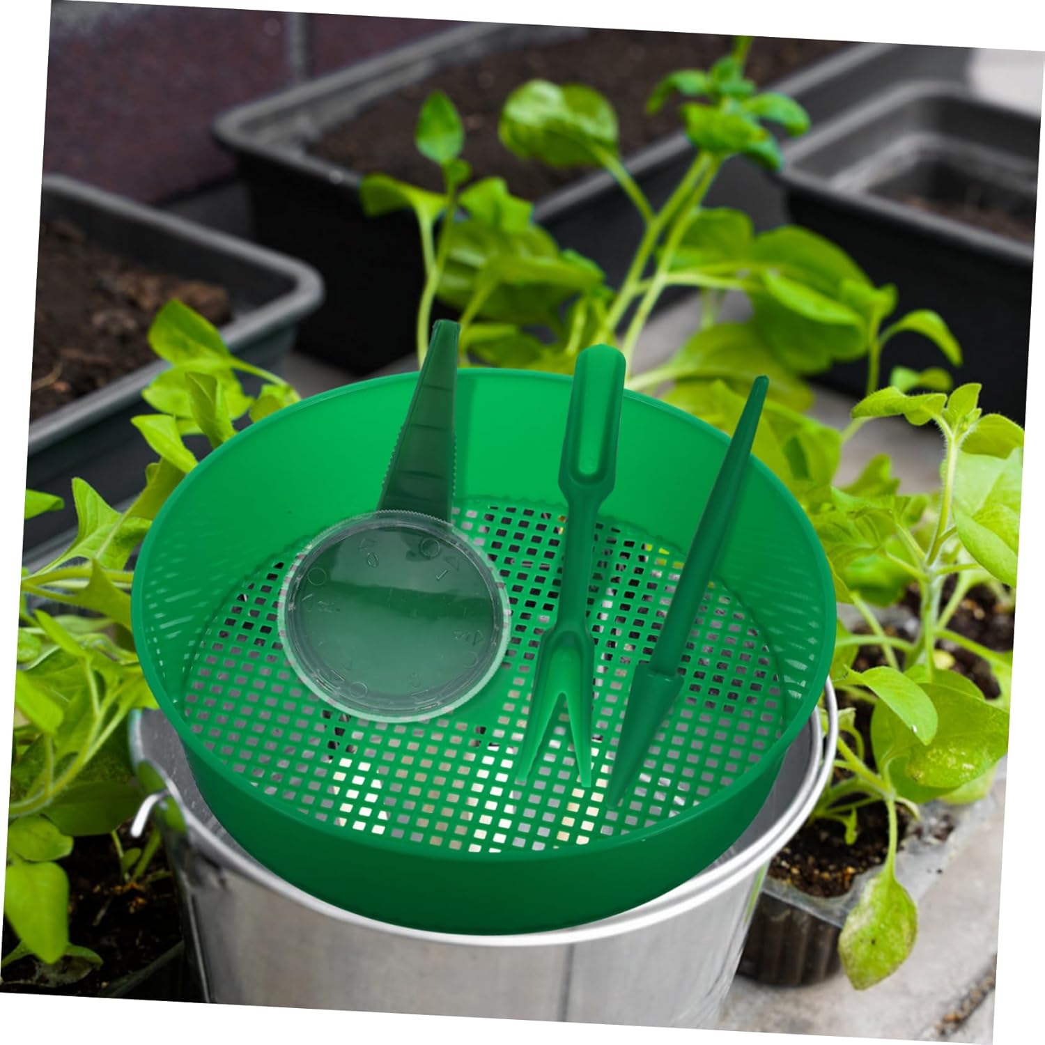 Setacci a maglie: che tu stia lavorando in un piccolo giardino, in un campo agricolo o in un progetto di piantagione, forniture per giardinaggio Padella per setacciatura domestica: uno strumento di giardinaggio essenziale per una migliore esperienza di piantagione e migliora l'efficienza lavorativa, setaccio per terreno da giardino Setaccio per terreno multiuso: resistente e durevole, fresco ed elegante per separare materiali grossolani come pietre, ramoscelli, ecc. dal terreno e dal compost, strumento multiuso per setacciare le rocce Strumento di setacciatura multiuso: può essere utilizzato come strumento da spiaggia per far divertire i più piccoli mentre giocano con la sabbia, piantando un setaccio a maglie Setaccio per terreno: con maglia uniforme, il setaccio per terreno è adatto per setacciare pietre e sabbia, ottimo per piantare in giardino, setaccio multiuso