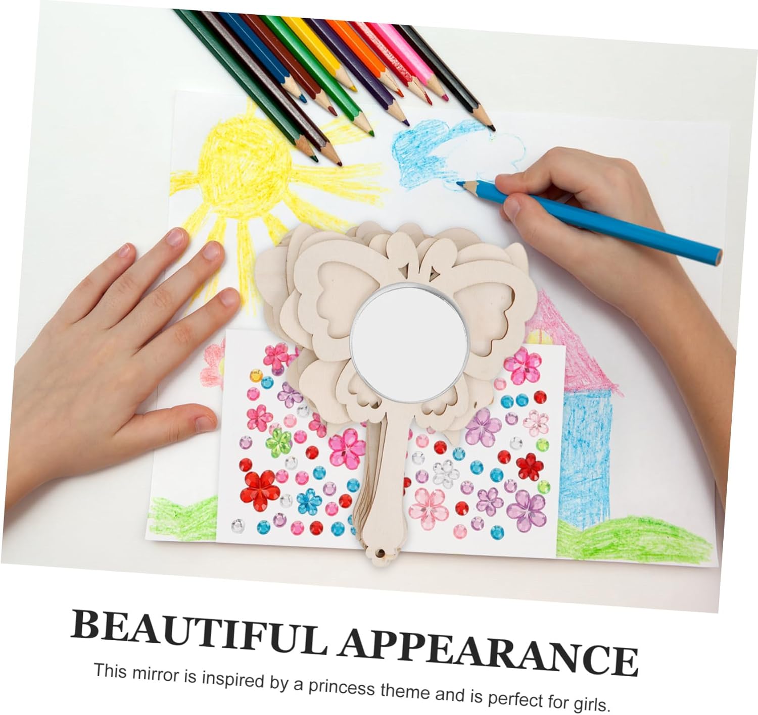 Legno resistente: realizzato in robusto legno naturale, questo specchio a mano è robusto e pratico, garantendo un uso a lungo termine, specchi in legno non finito, specchio a mano Creatività fai da te: offre una tela bianca che i bambini possono dipingere e decorare, incoraggiando la loro creatività e il gioco fantasioso, specchio con maniglia, specchio artigianale Materiale durevole: realizzato in robusto legno naturale, questo specchio a mano è robusto e duraturo, garantendo che resista all'uso quotidiano, specchio decorativo non finito, specchio a farfalla Design principessa: ispirato alle principesse, è adatto a chi vuole un tocco di fascino alla propria routine quotidiana, specchio fatto a mano, specchio portatile per il trucco Fai da te creativo: consente ai bambini di esprimere la propria creatività dipingendo e decorando lo specchio, promuovendo le proprie capacità artistiche, specchi artigianali, specchi in legno non finiti
