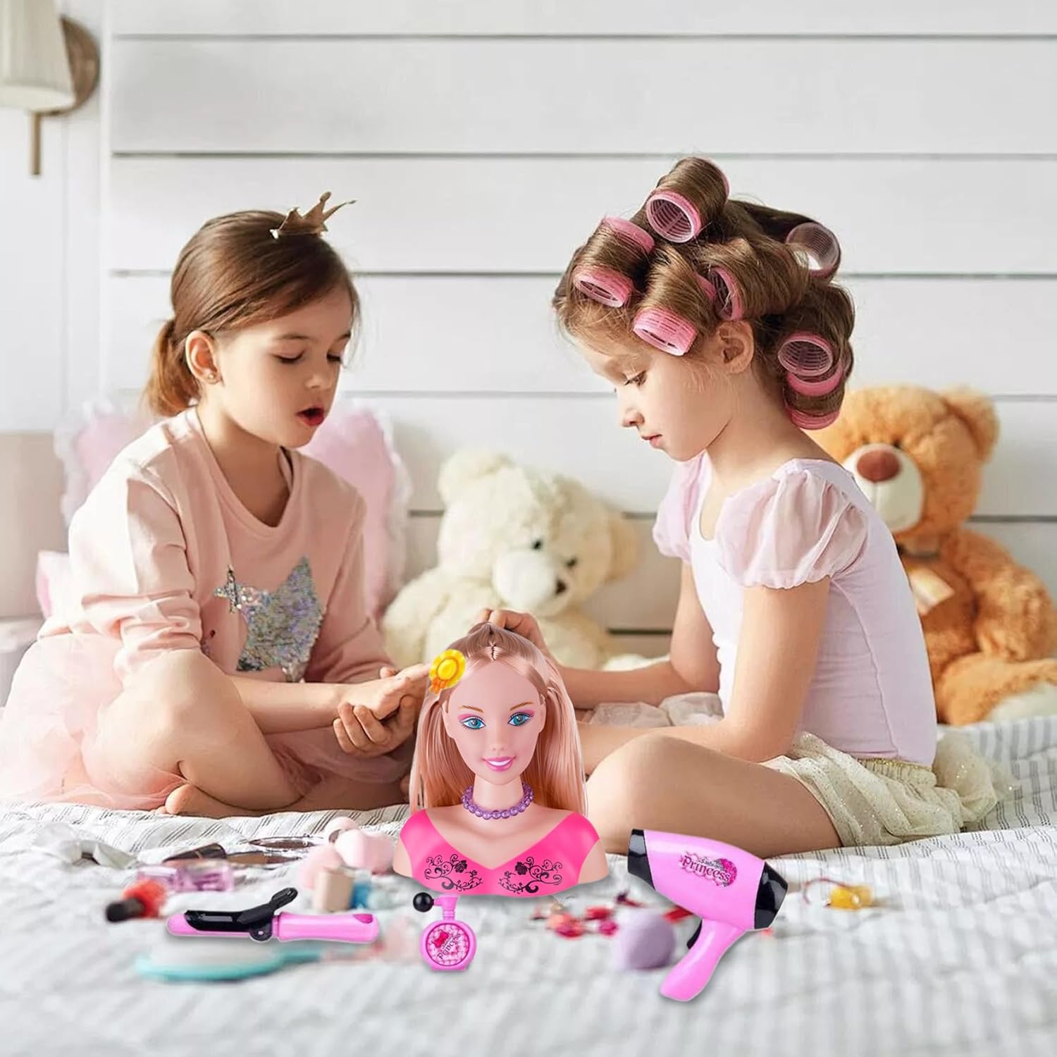 Ottimo per tutte le occasioni: cerchi il perfetto?.Questa testa di bambola per l'acconciatura è un ottimo regalo per compleanni, vacanze o occasioni speciali..Sicuramente delizierà le ragazze e ispirerà innumerevoli ore di gioco creativo. Perfetto per aspiranti parrucchieri: ideale per i giovani appassionati di bellezza, questa bambola con testa per lo styling è un ottimo strumento per le ragazze che sognano di diventare parrucchiere..Possono praticare tecniche e sviluppare le proprie abilità divertendosi! Materiali sicuri e adatti ai bambini: realizzata con materiali affidabili e non tossici, questa testa di bambola è sicura per i bambini..I genitori possono essere certi che i loro figli stanno giocando con un prodotto progettato pensando alla sicurezza, offrendo tranquillità durante il gioco. Accessorio versatile per il gioco: non solo per i capelli!.Questa testa di bambola funge anche da accessorio per il trucco, introducendo i bambini al mondo dei cosmetici..Il set incoraggia il gioco olistico, combinando acconciatura e trucco per un'esperienza di bellezza completa. Esperienza di styling dei capelli: incoraggia la creatività!.Questa testa di bambola è progettata specificamente per l'acconciatura, consentendo ai bambini di sperimentare una varietà di acconciature, trecce e acconciature, favorendo il gioco fantasioso e l'espressione artistica.