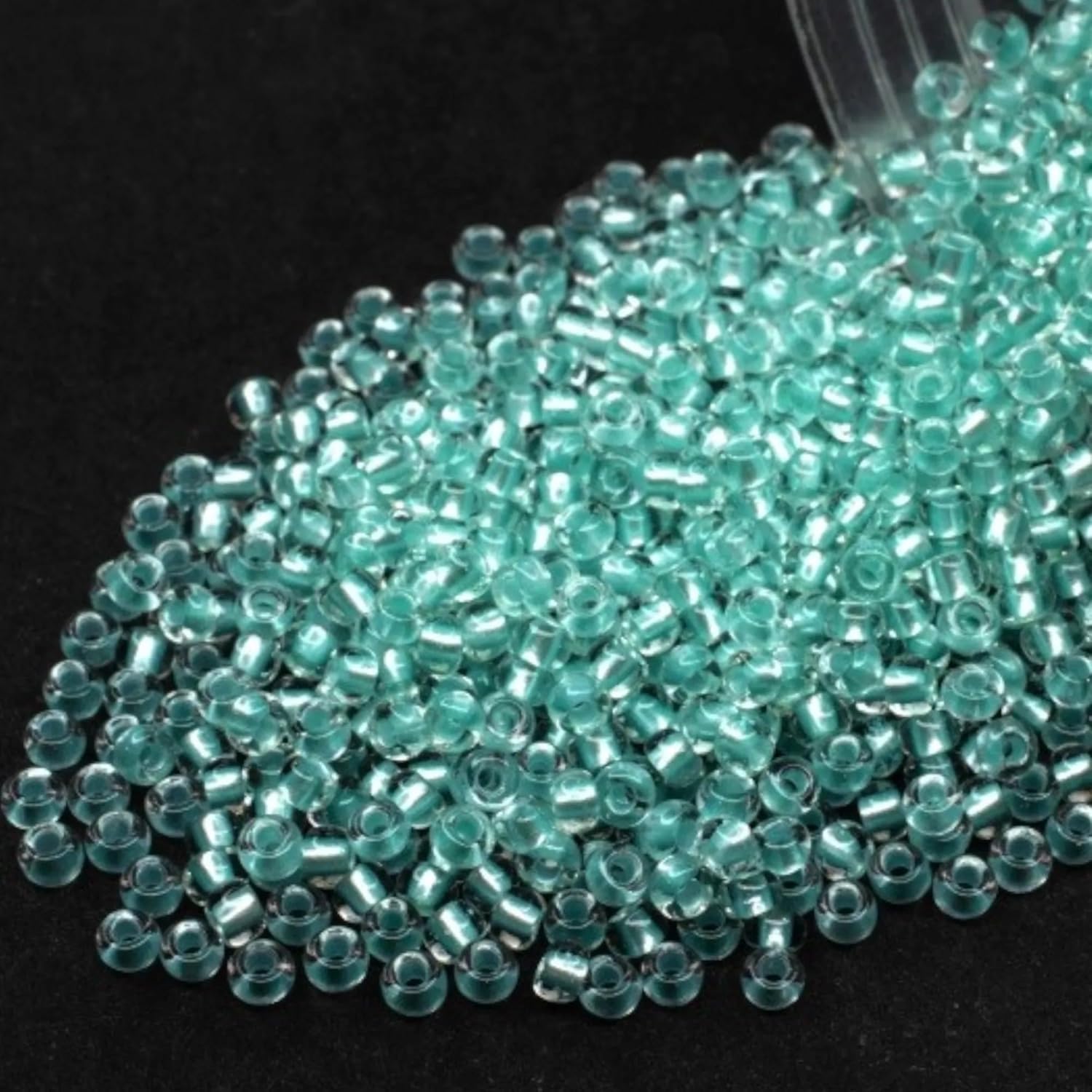 10/0 38258 Perline in vetro ceco Rocailles. Cristallo Verde - Perla foderata. Confezione 4500 pz. Peso 50 grammi. Dimensioni delle perline 2,3 mm. per perline, ricamo e creazione di gioielli.