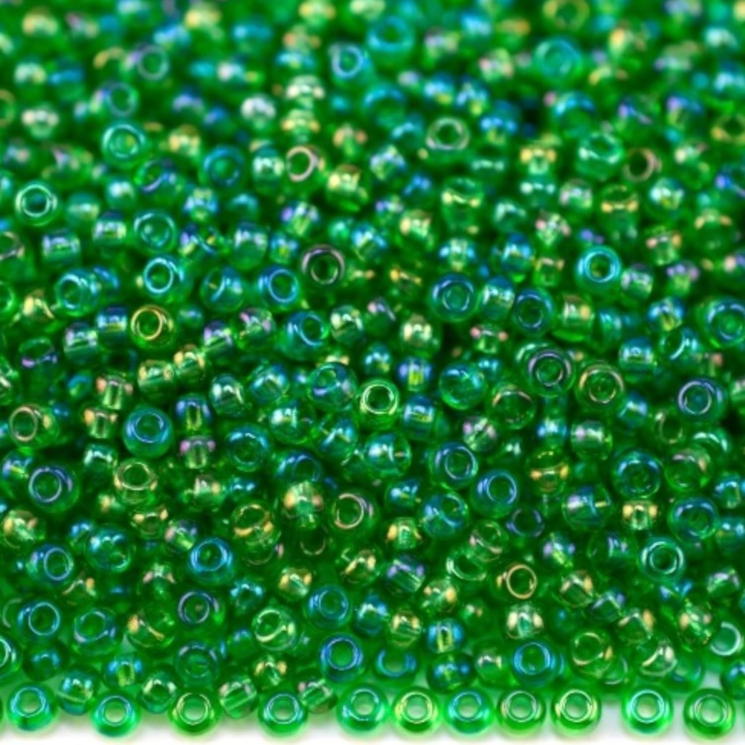 10/0 51100 Perline in vetro ceco Rocailles. Verde - Arcobaleno trasparente. Confezione 2250 pz. Peso 25 grammi. Dimensioni delle perline 2,3 mm. per perline, ricamo e creazione di gioielli.