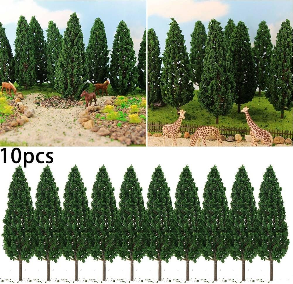 Design realistico: questi alberi di pino modello sono progettati per assomigliare a veri pini, aggiungendo autenticità al layout ferroviario in scala. Il colore verde intenso e i dettagli intricati li rendono realistici. Dimensioni perfette: con un'altezza di circa 15 cm, questi pini sono della dimensione ideale per la disposizione della ferrovia in scala. Non sono né troppo grandi né troppo piccoli, si adattano perfettamente al tuo mini mondo. Materiale: realizzati in plastica di alta qualità, questi alberi sono robusti e di lunga durata. Possono resistere a una manipolazione regolare e non si rompono o deformano facilmente, fornendo affidabile e scenario per la tua ferrovia. Quantità e varietà: questa confezione include 10 alberi completi, che consentono di creare un paesaggio diverso e visivamente interessante. Puoi posizionarli strategicamente lungo il binario ferroviario per aggiungere profondità e dimensione al tuo layout. Facile da usare: questi modelli di pino sono pronti per essere posizionati direttamente nel paesaggio ferroviario. Non è richiesto alcun montaggio o sforzo aggiuntivo. Basta estrarli dalla confezione e disporli come desiderato.