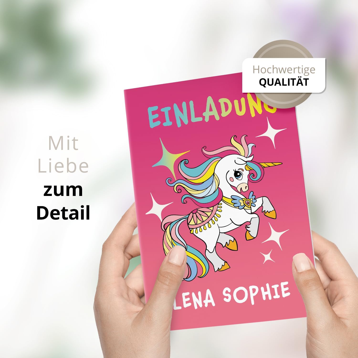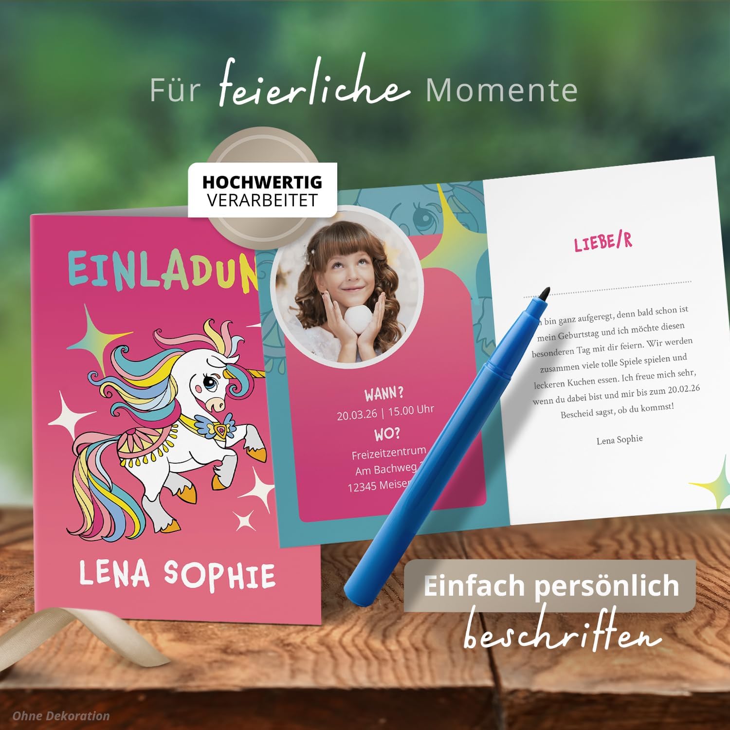 🎉 Biglietti d'invito per i compleanni dei bambini: personalizza facilmente ora con testo e foto: carica subito una foto di tuo figlio e le informazioni più importanti sul compleanno del bambino. 🎈 Design personalizzato e amorevole: i nostri designer progettano i vostri testi e le vostre foto con grande attenzione ai dettagli nel design selezionato. Questo rende i tuoi biglietti di nascita unici e individuali. 🖍️ Personalizza foto e testo: invita gli amici di tuo figlio al compleanno di tuo figlio con un testo individuale. Luogo, ora, particolarità, c'è abbastanza spazio per tutte le informazioni. 🎊 Compleanno dei bambini = invito alla festa: Sia che vostro figlio festeggi il suo compleanno a tema o senza: con i biglietti d'invito personalizzati, l'attesa per la festa di compleanno dei bambini è grande! ⭐ Soddisfazione del cliente e massima qualità: la vostra soddisfazione è la nostra massima priorità. Ogni biglietto d'invito viene attentamente controllato per eventuali errori tipografici ed errori di plausibilità prima di essere inviato.