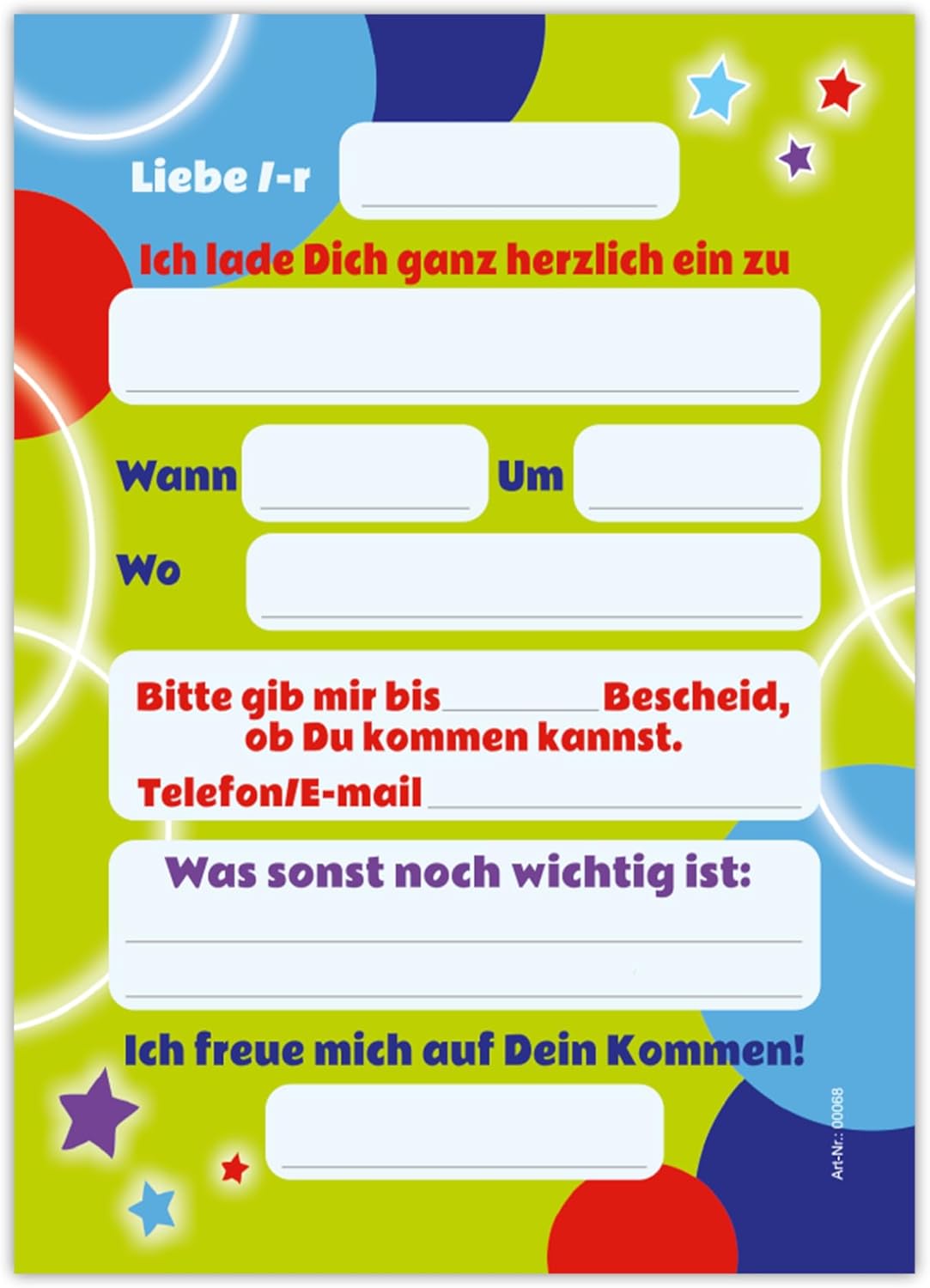 CONTENUTO POPOLARE: 10 biglietti d'invito, 10 buste, 10 segnalibri, 10 sacchetti con 10 adesivi in un set. FORMATO IDEALE: Il biglietto d'invito è 10,5 x 14,8 cm / DIN A6, la busta è 11,4 x 16,2 cm / DIN C6 (adesiva con striscia staccabile), la busta è 14 x 22 cm, l'adesivo e il segnalibro sono 5,2 x 14,8 cm. QUALITÀ SUPERIORE: il biglietto d'invito: stampa di immagini di alta qualità da 300 g/m², rifinita con vernice UV. La busta: stampa di immagini di alta qualità da 80 g/m² ed è autoadesiva (con strisce staccabili). La borsa: carta kraft naturale di alta qualità. L'adesivo: stampa di immagini di alta qualità, autoadesiva, scrivibile. Il segnalibro: stampa di immagini di alta qualità da 300 g/m², rivestita su entrambi i lati con vernice UV. Prodotto in Germania. DESIGN E INDIVIDUALIZZAZIONE: I biglietti d'invito hanno sul retro campi prestampati da compilare e personalizzare. Disponibile anche come set da 6 in altri popolari motivi per bambini personalizzati.