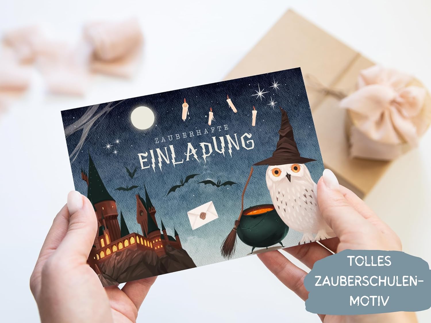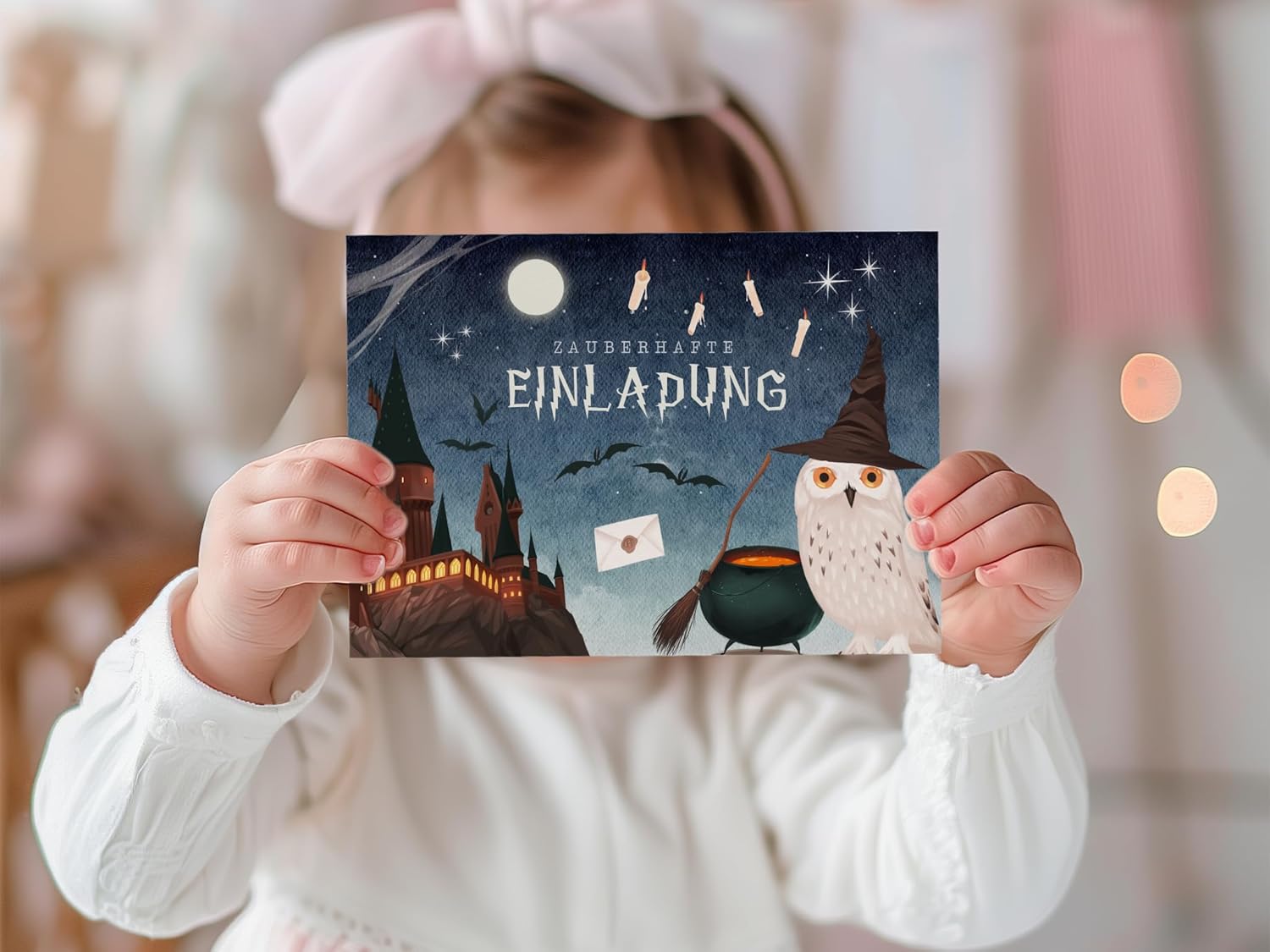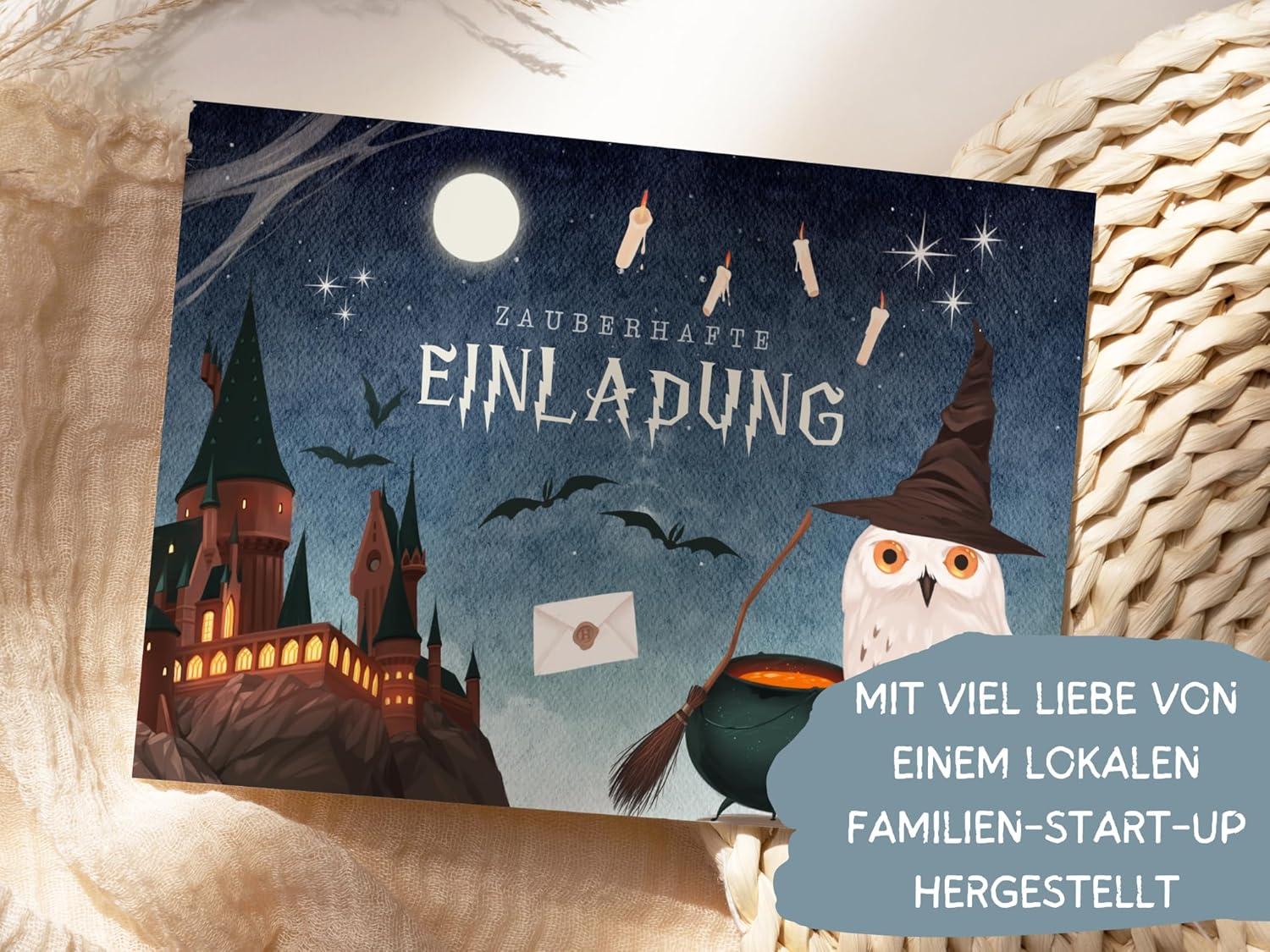 Invito compleanno per bambini scuola magica: lasciate che il prossimo compleanno del vostro bambino diventi magico con i nostri biglietti di invito per il compleanno dei bambini con motivo studente magico! Il set contiene 10 biglietti di invito di alta qualità in formato cartolina DIN A6 (14,8 x 10,5 cm). Sulla parte anteriore si trova un'impressionante scuola di magia e un gufo disegnato in stile acquerello ricco di dettagli, perfetto per un compleanno indimenticabile apprendista magica. Che si tratti di bambini o ragazze, questi biglietti di invito sono ideali per tutti i piccoli maghi e streghe che vogliono festeggiare il loro 8°, 9° o 10° compleanno. Facile e veloce: sul retro trovi spazio sufficiente per tutte le informazioni importanti sulla festa di compleanno: luogo, data, ora e altre informazioni come auguri regalo o possibilità di contatto. Questi biglietti di invito per il compleanno dei bambini sono compilati e distribuiti in un batter d'occhio: non dovrai fare lunghe creazioni fai da te. Perfetto per una festa al cinema, una festa a tema o un compleanno a scuola magica. Alta qualità: realizzati in robusto cartone cromato (260 g/m²), i biglietti di invito offrono una superficie ideale per scrivere, indipendentemente dalla penna. Le buste in carta kraft riciclata ecologiche completano il set e garantiscono una soluzione sostenibile. Ideale per i genitori che prestano attenzione sia allo stile che alla qualità. Prodotto in Germania: i nostri inviti di compleanno sono progettati e realizzati in Germania con la massima cura e grande attenzione ai dettagli. Come piccola start-up per famiglie, diamo particolare importanza ai prodotti di alta qualità e sostenibili. Affidati alla qualità e rendi il compleanno del tuo bambino un'esperienza indimenticabile con i nostri biglietti di invito.