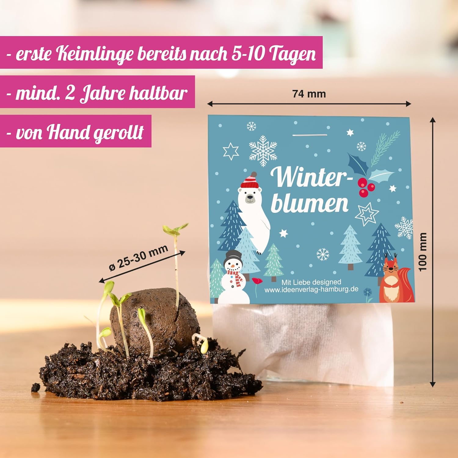 🌱 Fornitura: 10 bombe di semi invernali a tema "Fiori invernali" (germogliare in condizioni fredde / 5-10°C; tempo di lancio ideale: settembre-aprile), confezionate singolarmente e al 100% prive di plastica. 🖤❤️💛 Realizzato con amore a mano - realizzato in modo responsabile in laboratori locali per disabili. Carta – design – packaging: tutto made in Germany. ❄️Il potere dei fiori anche a basse temperature! Come regalo sostenibile per le tue persone preferite e per tutti gli amanti dei fiori invernali! ♻️ Stampa sostenibile e a impatto climatico zero su carta riciclata FSC - progettata con amore dall'editore di idee AMBURGO. 🎁 Originali, sostenibili e utili: i nostri utili regali per regali per feste invernali - come regali per compleanni invernali per bambini / per feste invernali per compleanni per bambini / regali per gli ospiti dei bambini / sacchetti per bombe di semi / sacchetti per compleanno per bambini / souvenir di compleanno per bambini / bombe di semi / riempimento calendario dell'avvento per bambini / sacchetti per compleanno invernale per bambini / sacchetti per bombe di semi / bombe di semi ⛄️ Ideale come sacchetto per feste invernali Compleanno bambini 10 anni, inverno regalini compleanno bambini 8 anni, festa invernale compleanno bambini bomboniere compleanno bambini, souvenir compleanno bambini regali invernali festa bambini festa per bambini, regali invernali compleanno bambini ragazzi, regali invernali compleanno bambini ragazze, decorazioni per feste invernali regali compleanno bambini sacchetti, regali invernali compleanno bambini, feste compleanno bambini ragazzi