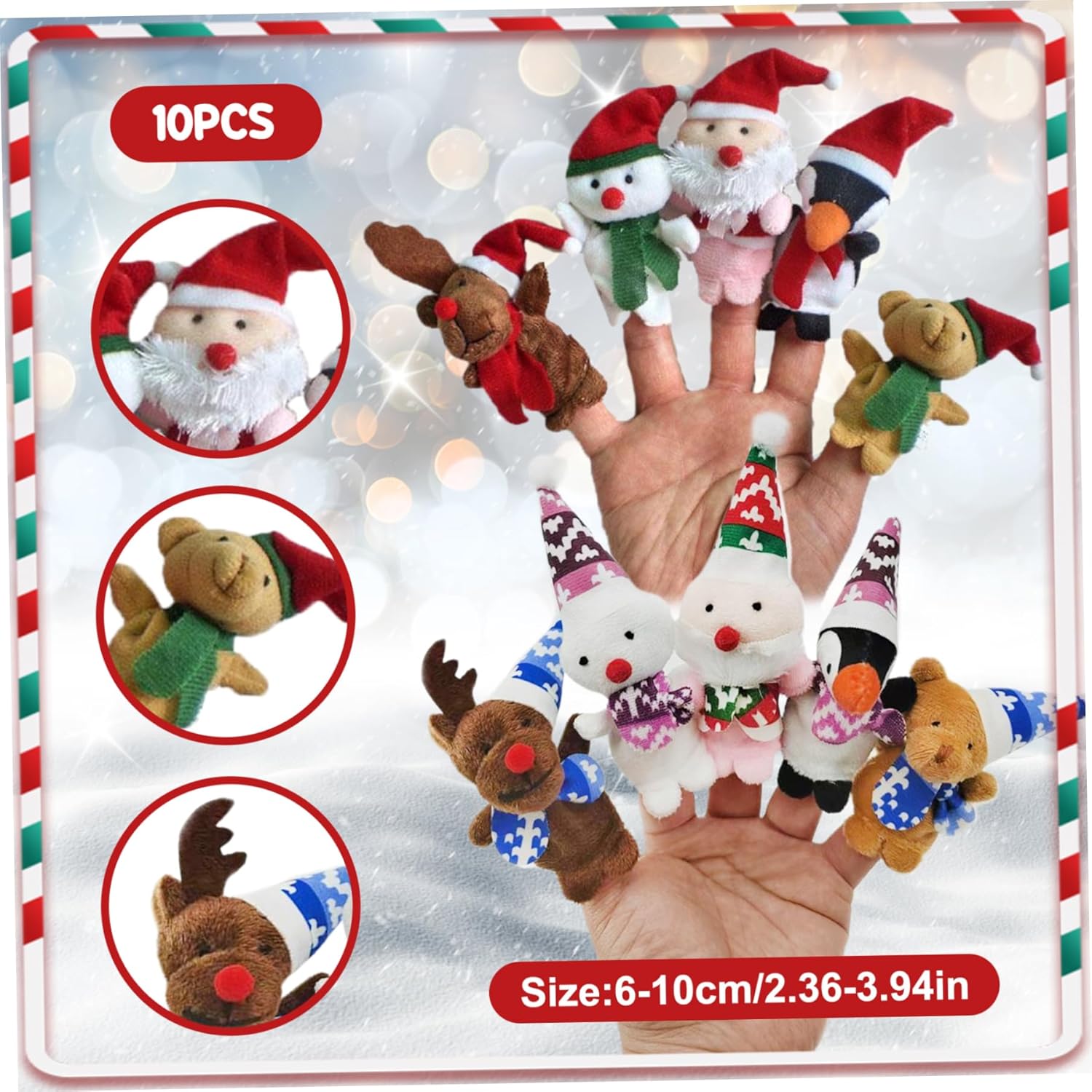 Gioco coinvolgente ed educativo: i nostri burattini per bambini dai 4 agli 8 anni trasformano il tempo di gioco in un'esperienza interattiva ed educativa..Attraverso il gioco di ruolo, i bambini apprendono abilità e valori sociali come l'amicizia e il lavoro di squadra. Morbidi e sicuri: realizzati in morbido peluche, questi pupazzi da dito sono sicuri per le mani dei più piccoli..Il materiale morbido è delicato sulla pelle, rendendolo perfetto per i più piccoli..Il loro design leggero li rende facili da impugnare e manipolare, migliorando l'esperienza di gioco complessiva. Stili diversi per giochi fantasiosi: le nostre marionette da dito per bambini da 1 a 3 anni sono disponibili in due stili deliziosi: un set presenta classici cappelli rossi, mentre l'altro presenta cappelli vivaci e colorati..Questa varietà non solo aggiunge fascino visivo, ma incoraggia anche i bambini a impegnarsi nella narrazione creativa. Facile da usare: le nostre marionette da dito per bambini dai 3 ai 5 anni sono progettate per i bambini, caratterizzate da un design flessibile per spettacoli dinamici..Le aperture per le dita adattano a varie dimensioni, garantendo una vestibilità comoda..I bambini più piccoli possono facilmente infilare due dita nel foro per un migliore controllo, rendendo semplice dare vita ai personaggi. Versatile: ideali per compleanni, Natale o qualsiasi occasione, questi giocattoli natalizi sono un pensiero che intratterrà ed istruirà..I genitori apprezzeranno il valore che apportano al momento del gioco, poiché incoraggiano il gioco interattivo fornendo allo stesso tempo l'opportunità ai bambini di sviluppare le proprie capacità comunicative.