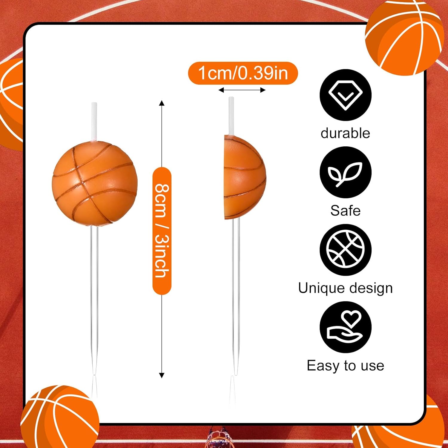 Soddisfa le tue esigenze di decorazione: riceverai 10 pezzi di candeline a forma di pallacanestro per torta di compleanno, sufficienti e sufficienti in quantità, per soddisfare le tue esigenze quotidiane di utilizzo e le esigenze di decorazione della torta di compleanno Candele a forma di pallacanestro distintive: le decorazioni per torte da pallacanestro adottano una bella forma da pallacanestro, con il classico colore bianco e nero, realistico e vivace, carino e bello, adatto a ragazzi, ragazze, uomini, donne e tifosi di pallacanestro Dimensioni adatte e adeguate: le nostre candeline a forma di pallacanestro misurano ca. 8 cm/ 3 pollici di altezza, premuroso e premuroso, facile da inserire nelle tue torte, adatto per decorare torte di compleanno, cupcakes, cheesecake e altre torte Materiale affidabile e di qualità: le candele a forma di pallone per torta sono realizzate principalmente in materiale cerato, robusto e affidabile, il bastoncino nella parte inferiore può essere inserito direttamente sulla torta, dopo aver espresso un desiderio, basta toglierlo, puoi usarli con sicurezza Ampia gamma di applicazioni: le candele a forma di pallone da pallacanestro sono adatte a varie occasioni, come compleanni, feste a tema pallacanestro, cene di anniversario, baby shower, riunioni di famiglia, feste a tema sportivo e celebrazioni di eventi pallacanestro, aggiungendo più colore alla tua festa