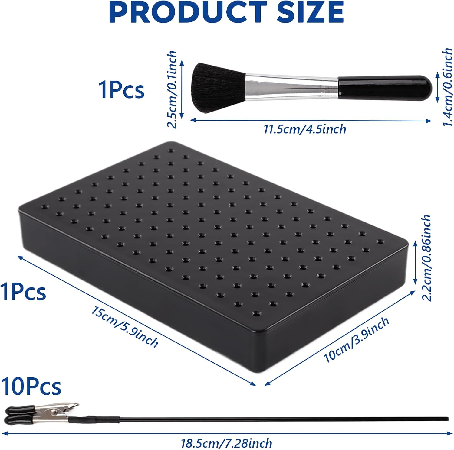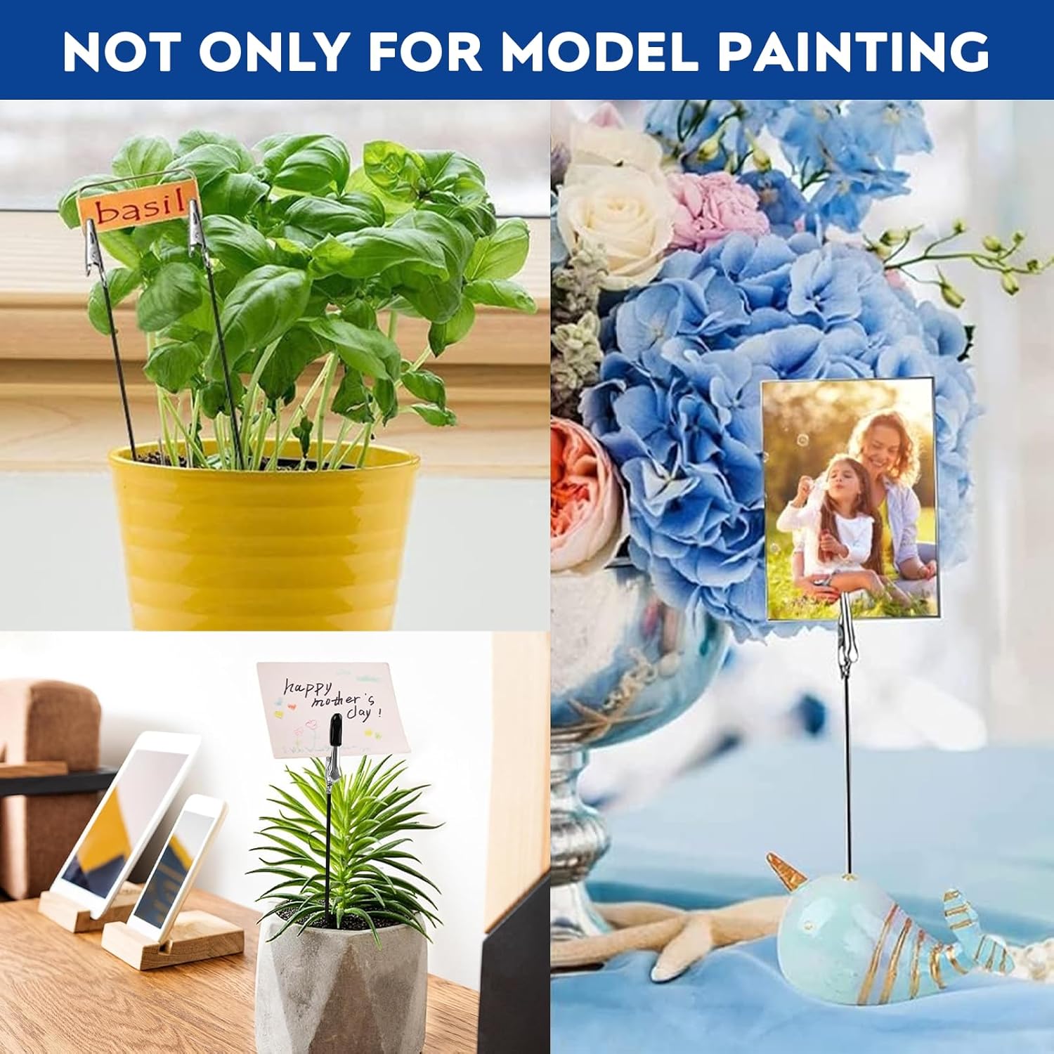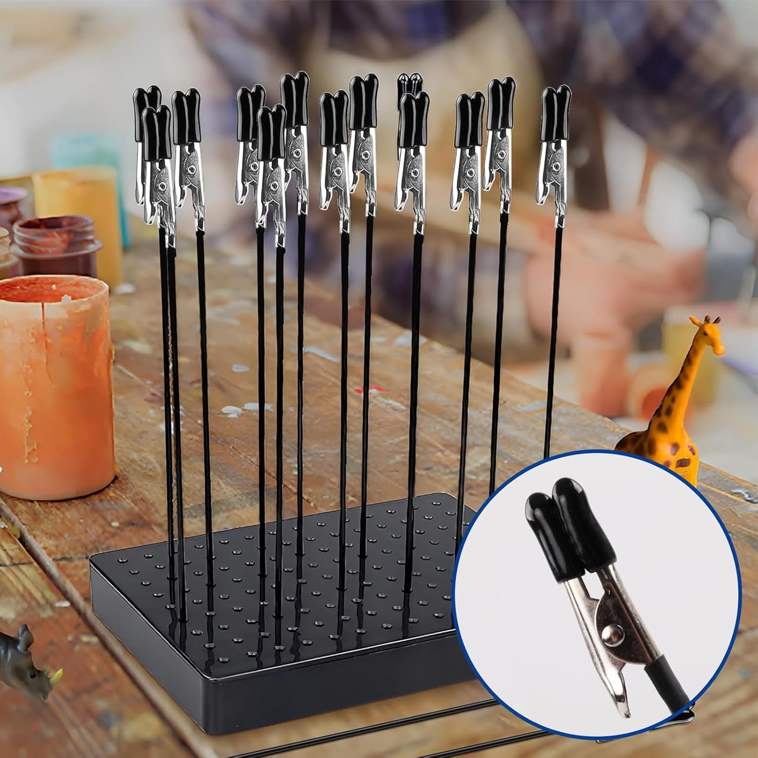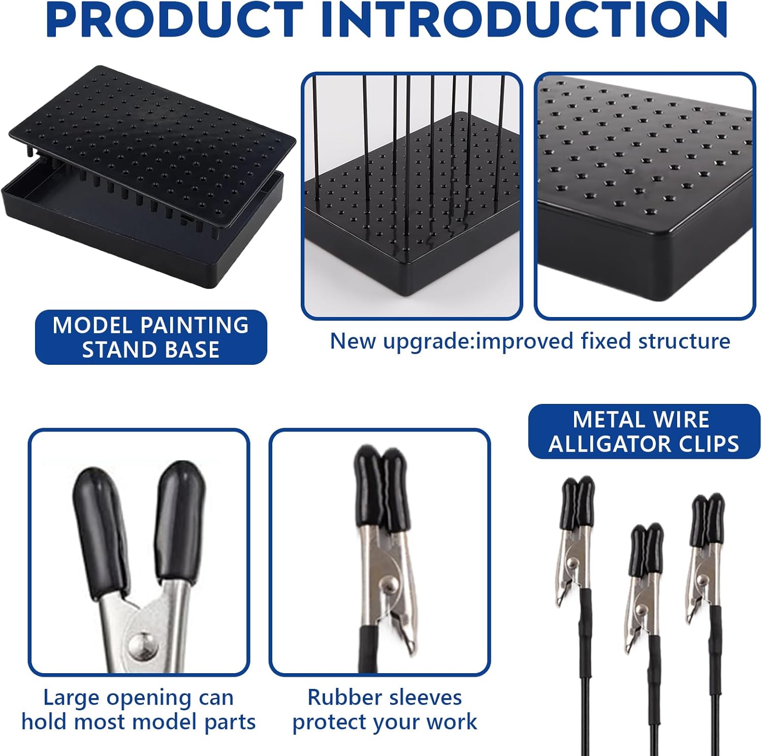 Kit di supporto per vernice per modello: il kit contiene una base di supporto per vernice nera, 10 clip a coccodrillo e 1 pennello. Questo kit di strumenti di base è adatto agli appassionati di modellismo e ai principianti e agli avanzati. Progettato con cura: ciascuna punta della clip a coccodrillo è ricoperta da un processo di incapsulamento morbido per evitare che i denti della clip a coccodrillo causino danni a piccole parti. Il foro di inserimento della base è stato migliorato per rendere il foro di inserimento più profondo e il dispositivo più stabile Materiali degli accessori di modellazione: La base del kit di strumenti per modello è realizzata in plastica di alta qualità e la clip per verniciatura è in acciaio, il che garantisce che il prodotto sia durevole, resistente alla corrosione e stabile per un uso a lungo termine Dimensioni dello strumento di modellazione: Lunghezza della clip a coccodrillo in metallo: 18,5 cm; Dimensioni base cavalletto: 15 x 10 x 2,2 cm, numero di fori: 14 x 9 fori, diametro del foro: 2,2 mm Ampia applicazione: il supporto per vernice per modelli è un valido aiuto per la realizzazione di modelli, il supporto per aerografo è ideale anche per modellismo amatoriale, promemoria, foto, saldatura elettronica e artigianato
