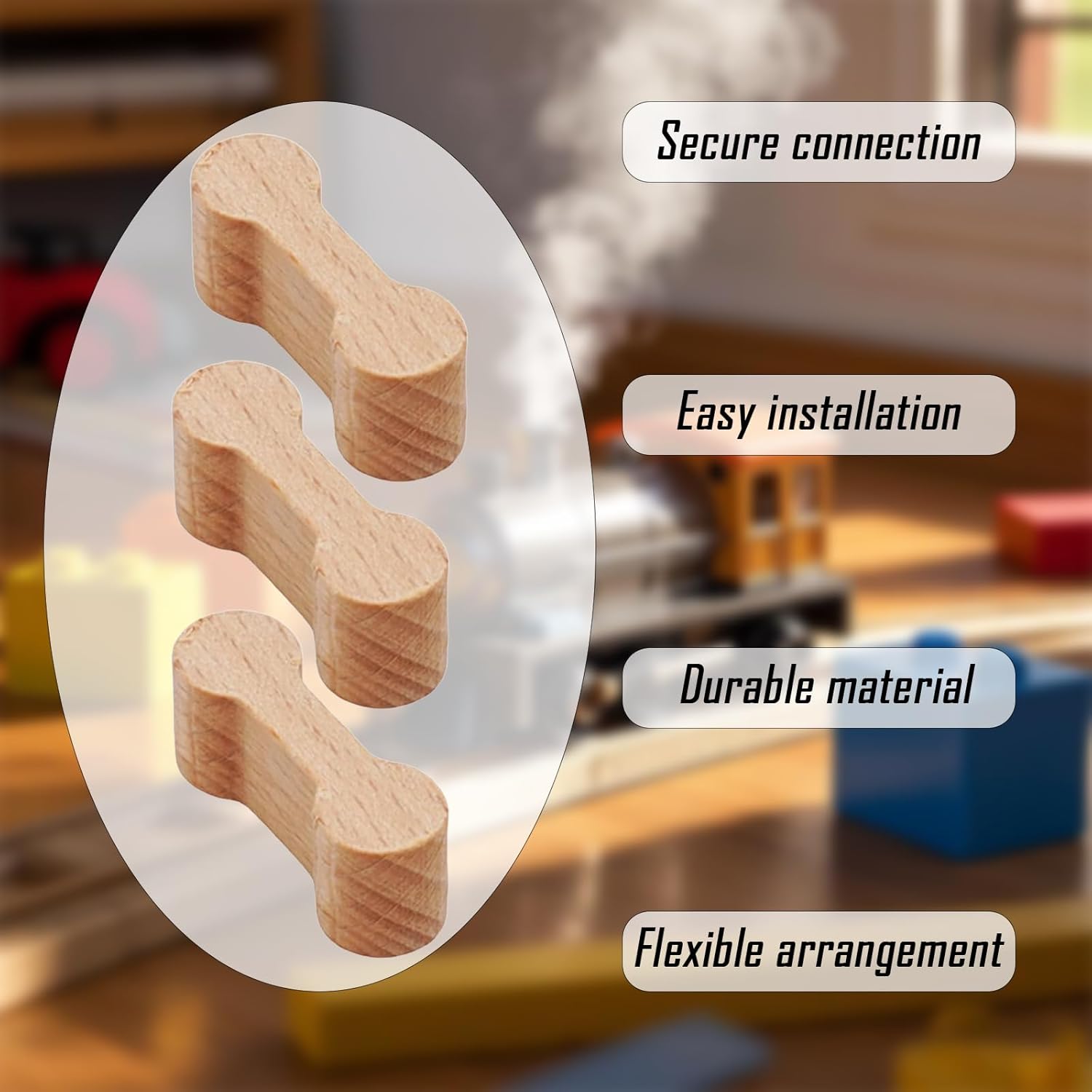 Materiale in legno di alta qualità: i connettori per binari sono realizzati in legno robusto di alta qualità, che garantisce una lunga durata e un look autentico Montaggio semplice: senza attrezzi speciali o conoscenze professionali, questi connettori per binari possono essere installati rapidamente e senza problemi Elevata compatibilità: adatto come adattatore per essere compatibile con la maggior parte dei sistemi ferroviari in legno e collegare i componenti esistenti Funzione ed estetica: non solo collegano le guide in legno, ma migliorano anche l'attrattiva ottica del modello ferroviario con un'atmosfera nostalgica Ideale per hobby e regali: perfetto per modellisti, hobbisti e come idea regalo per gli appassionati di ferrovia, per espandere il mondo ferroviario e sviluppare la creatività.