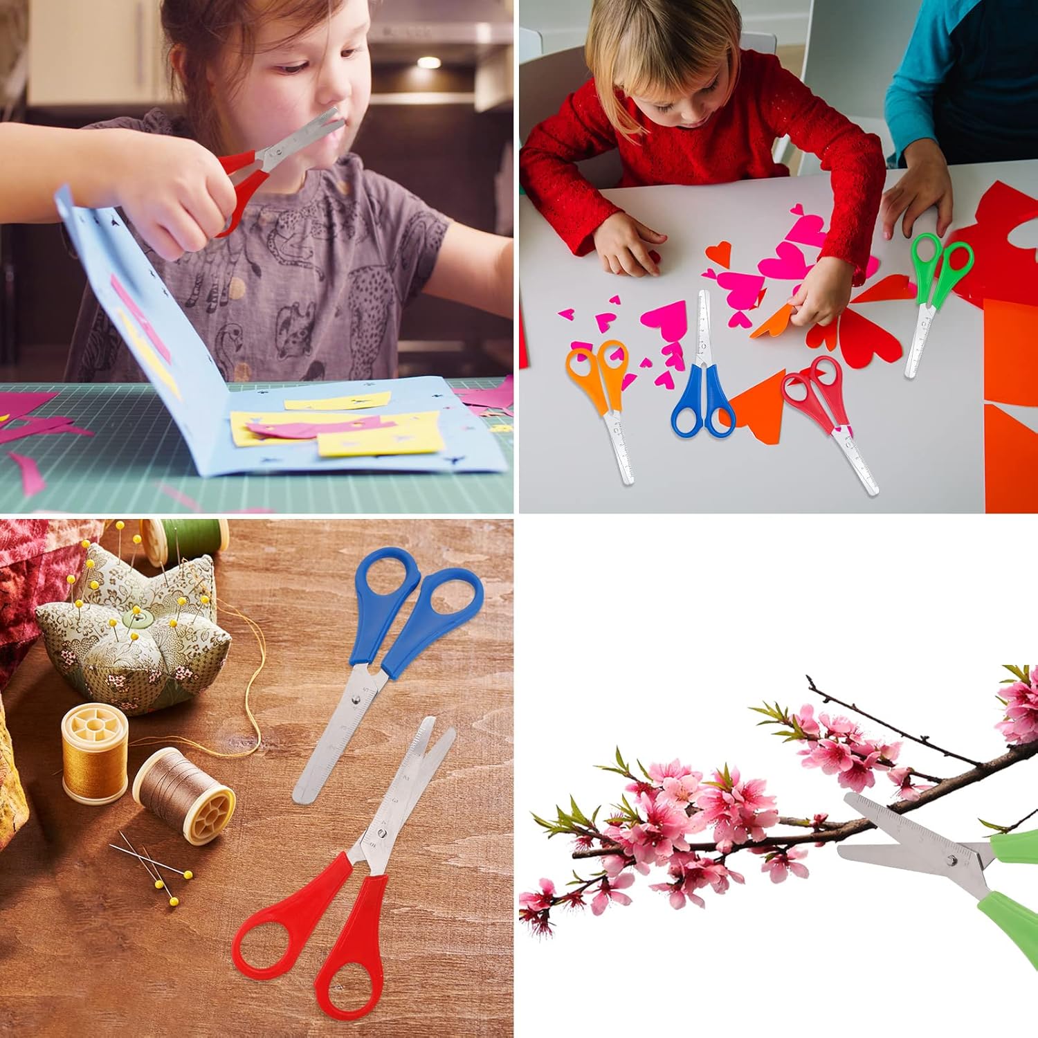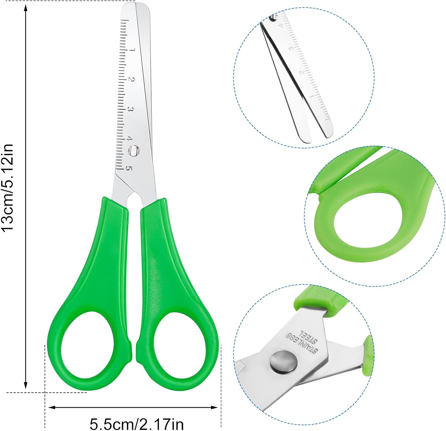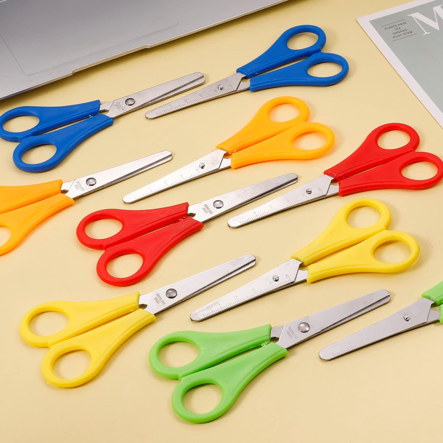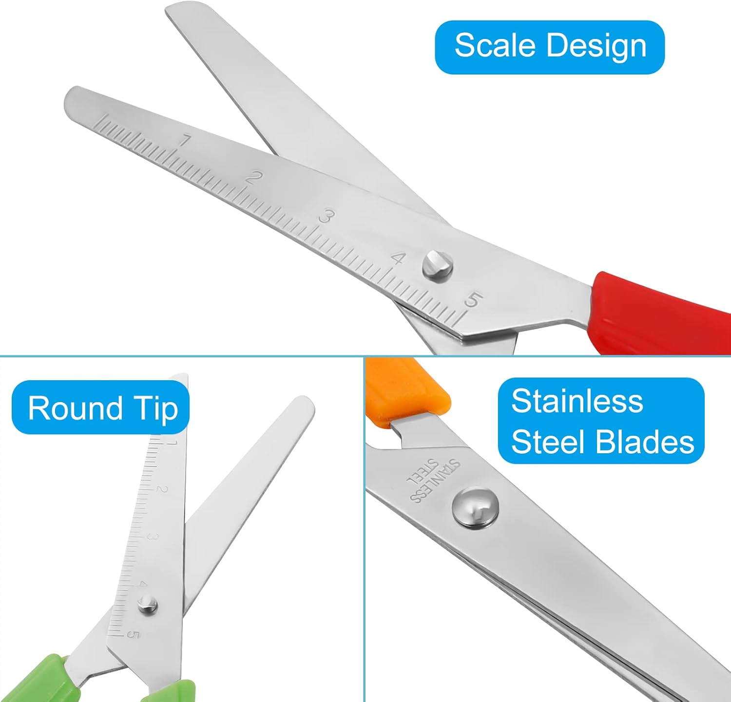 Contenuto della confezione: 10 forbici per bambini in 5 colori, rosso, giallo, blu, verde e arancione, 2 pezzi di ogni colore, sufficienti per l'uso quotidiano dei bambini. Materiale di qualità: il manico delle forbici di sicurezza per bambini è realizzato in plastica PP, leggera e confortevole, e le lame sono realizzate in acciaio inossidabile, resistente e resistente alla corrosione e non danneggia le mani del bambino. Punte arrotondate: queste forbici per bambini sono caratterizzate da un design rotondo con punta smussata che impedisce alle mani dei bambini di farsi male e consente ai bambini di divertirsi lavorando. Inoltre, le forbici sono adatte per l'uso con mano sinistra e destra e sono facili da controllare. Design in scala di cm: ogni paio di forbici di sicurezza per bambini ha un design in scala di 5 cm, che può aiutare i bambini a tagliare la carta con precisione, il che è comodo e pratico. Ampia applicazione: queste forbici artigianali sicure possono essere utilizzate per il taglio della carta, album fai da te, album fotografici, decorazioni fotografiche, libri di memoria, etichette regalo, biglietti di auguri, ecc. Sono adatti ai bambini e possono anche essere regalati come regali o ricompense per i bambini.